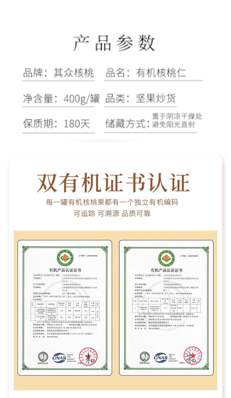 其众核桃有机核桃果400g/罐