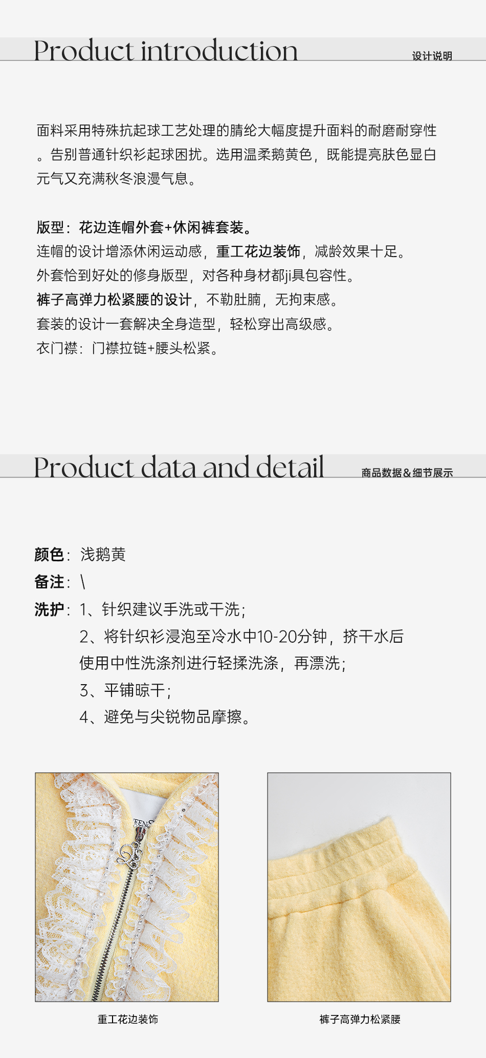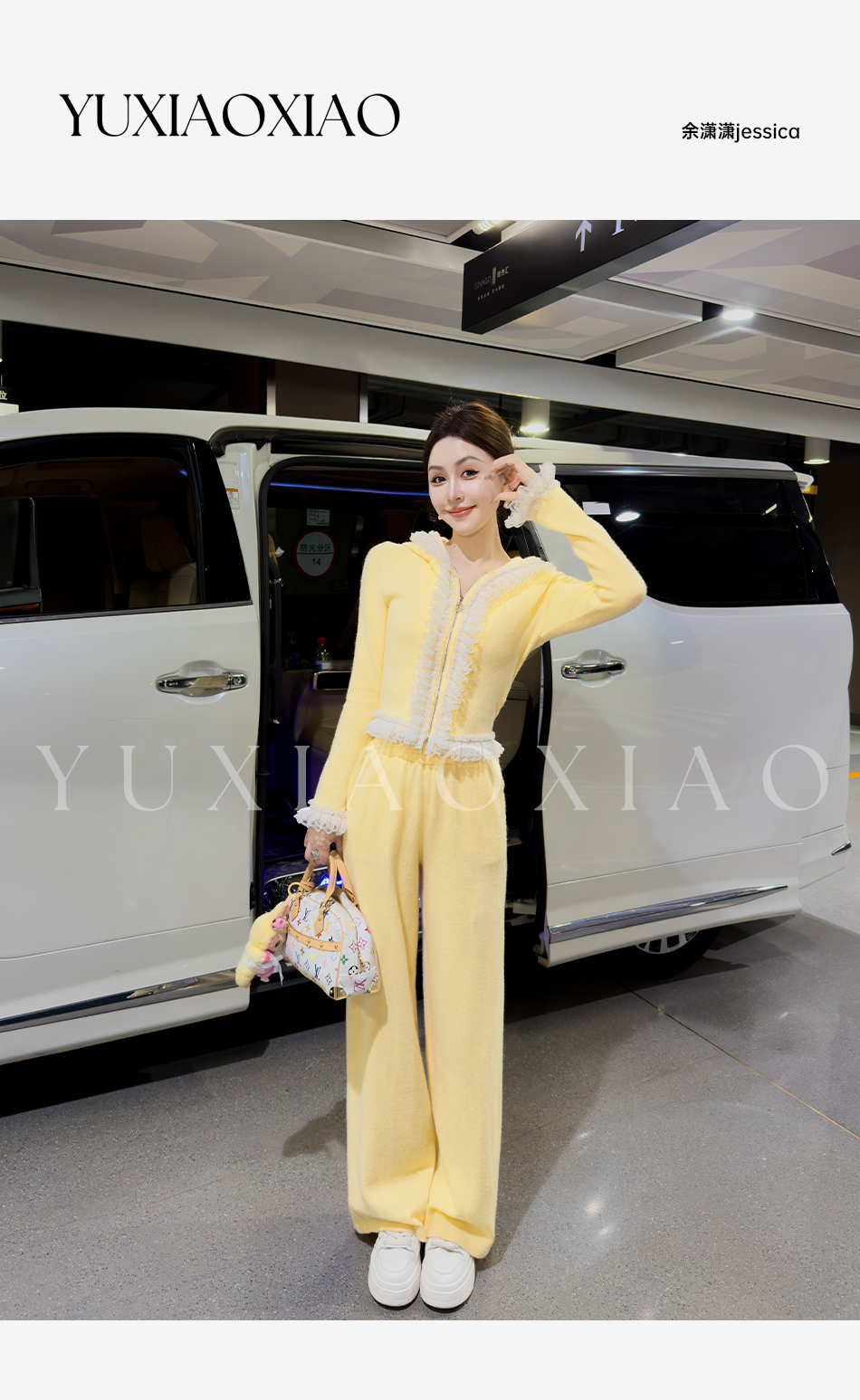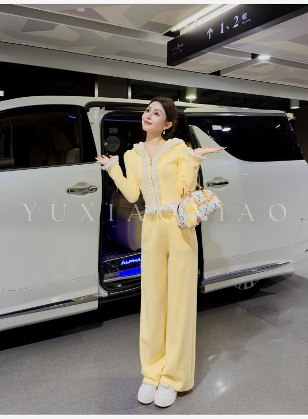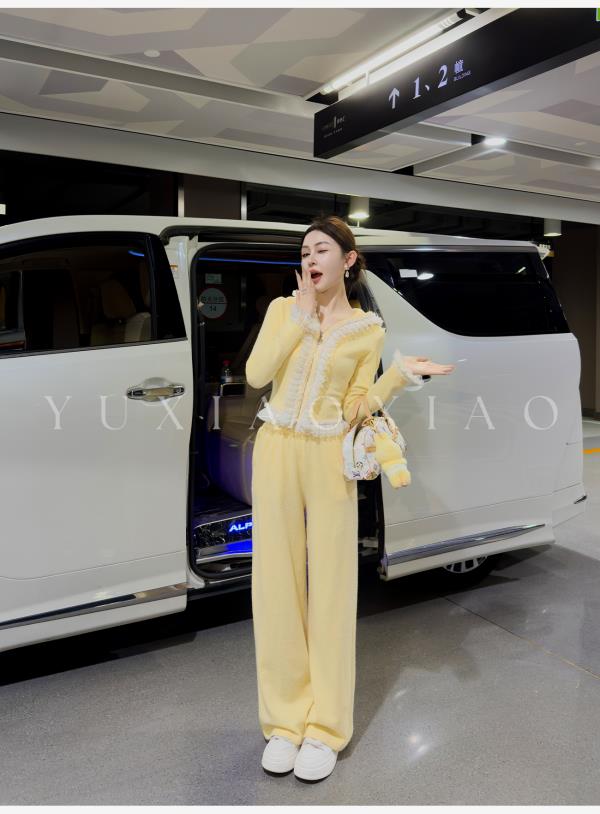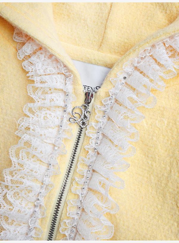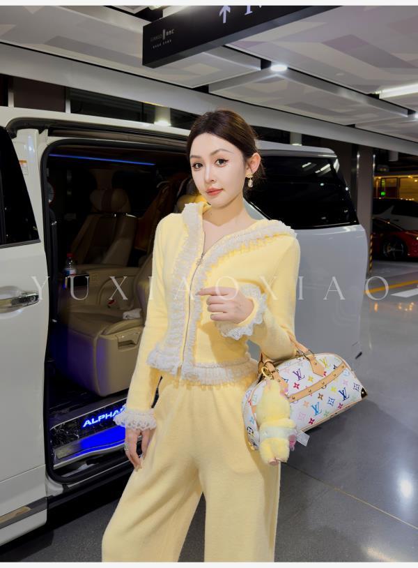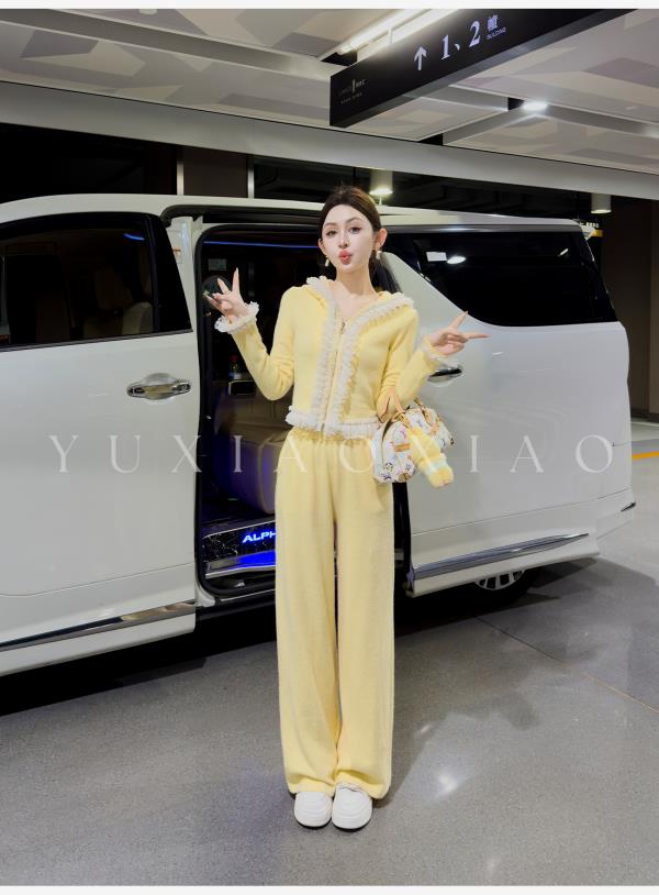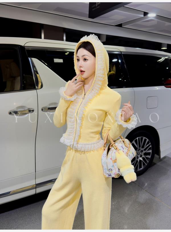 余潇潇【日光童话】抗起球时髦减龄重工花边连帽外套&休闲裤套装