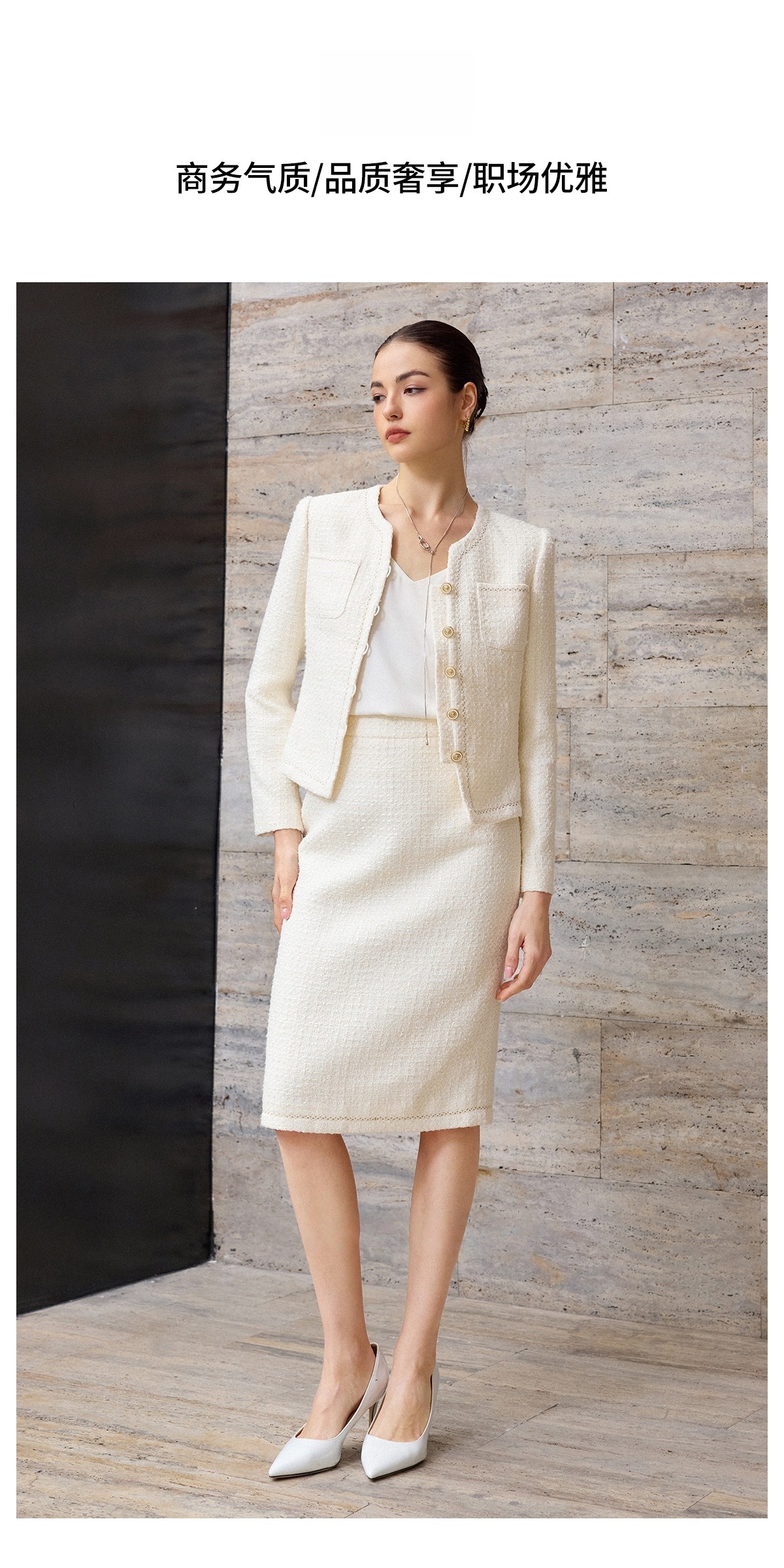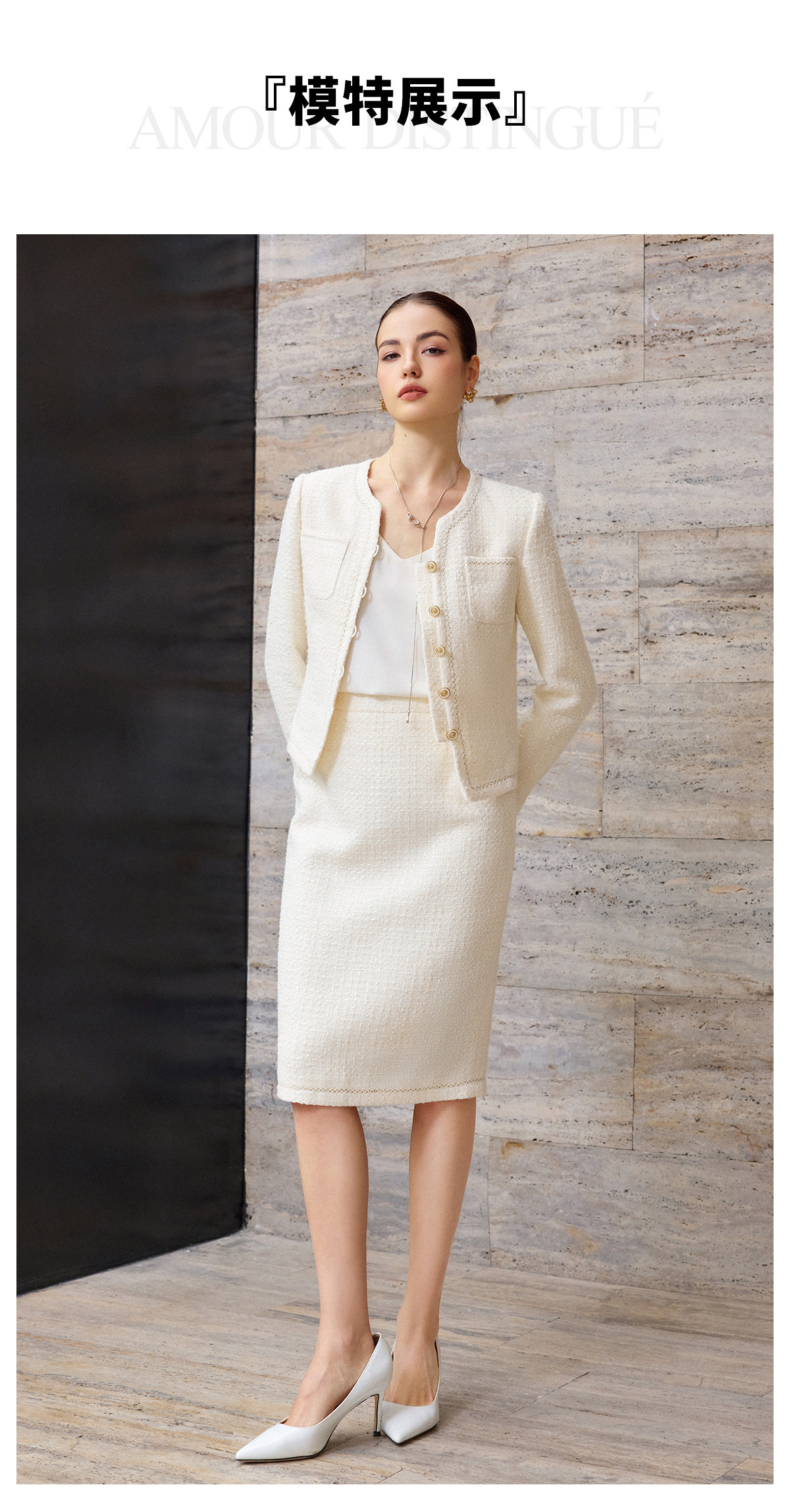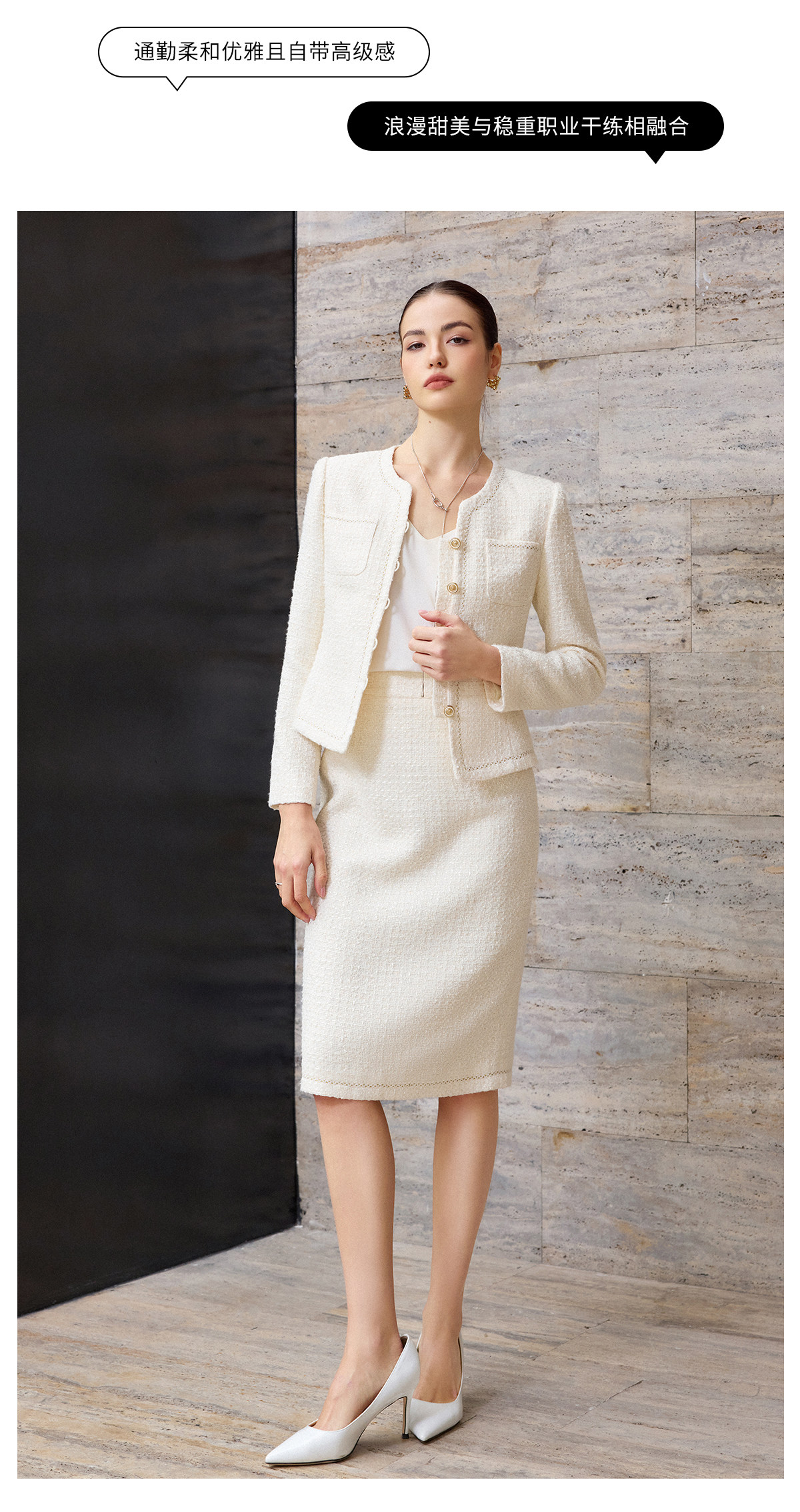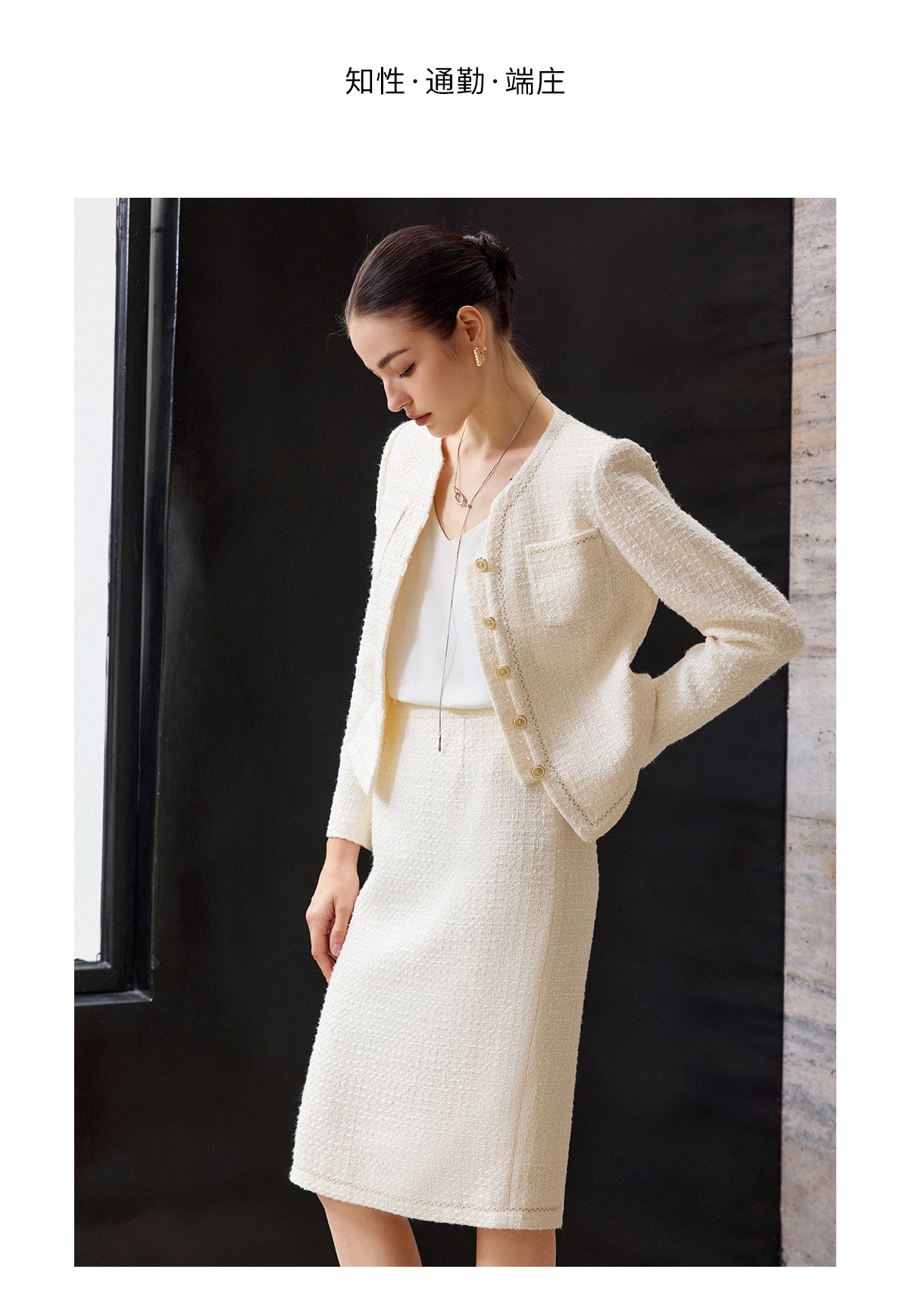 IWY/小香风米白色西装套裙女秋冬气质羊毛通勤职业装时尚工作服CS2592
