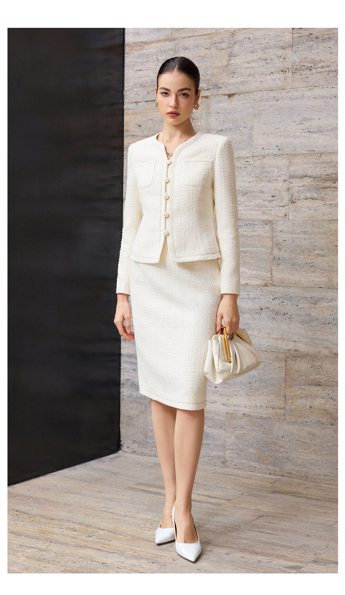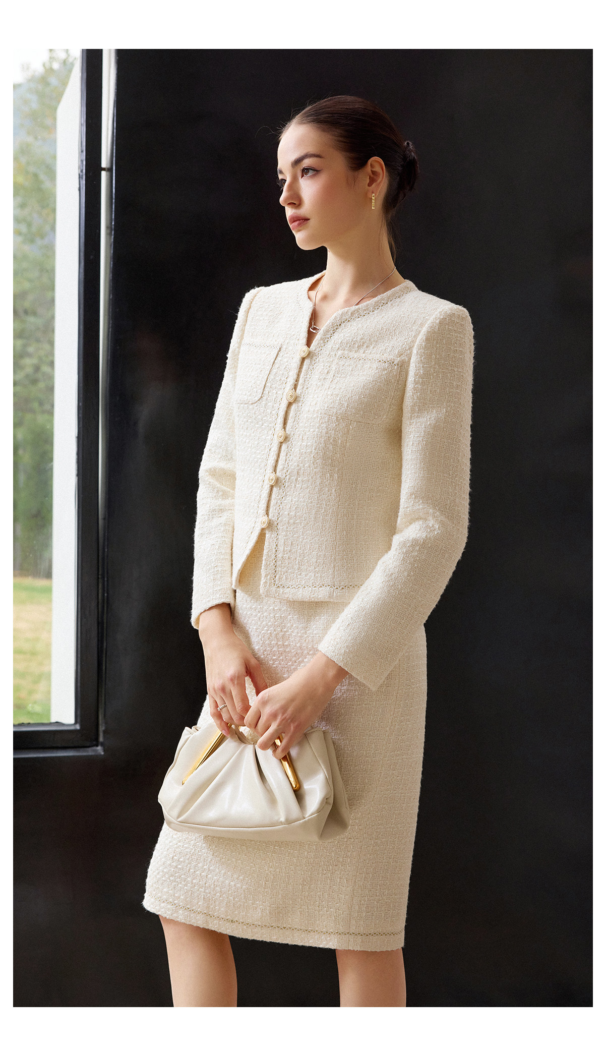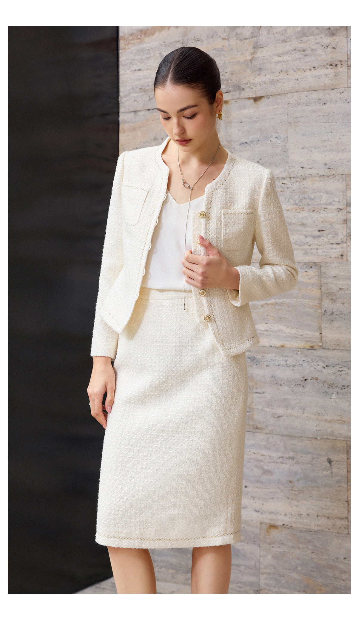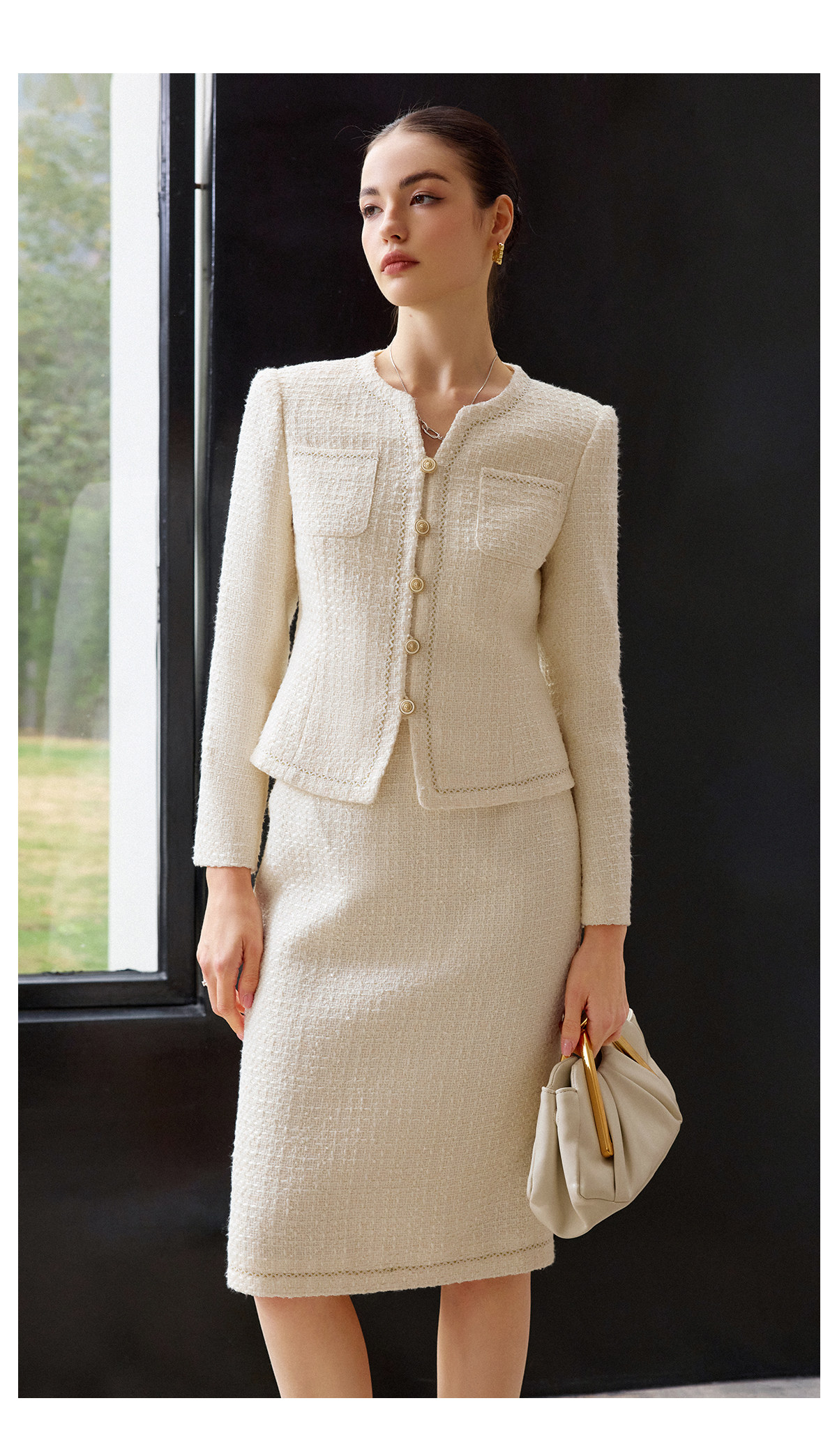 IWY/小香风米白色西装套裙女秋冬气质羊毛通勤职业装时尚工作服CS2592
