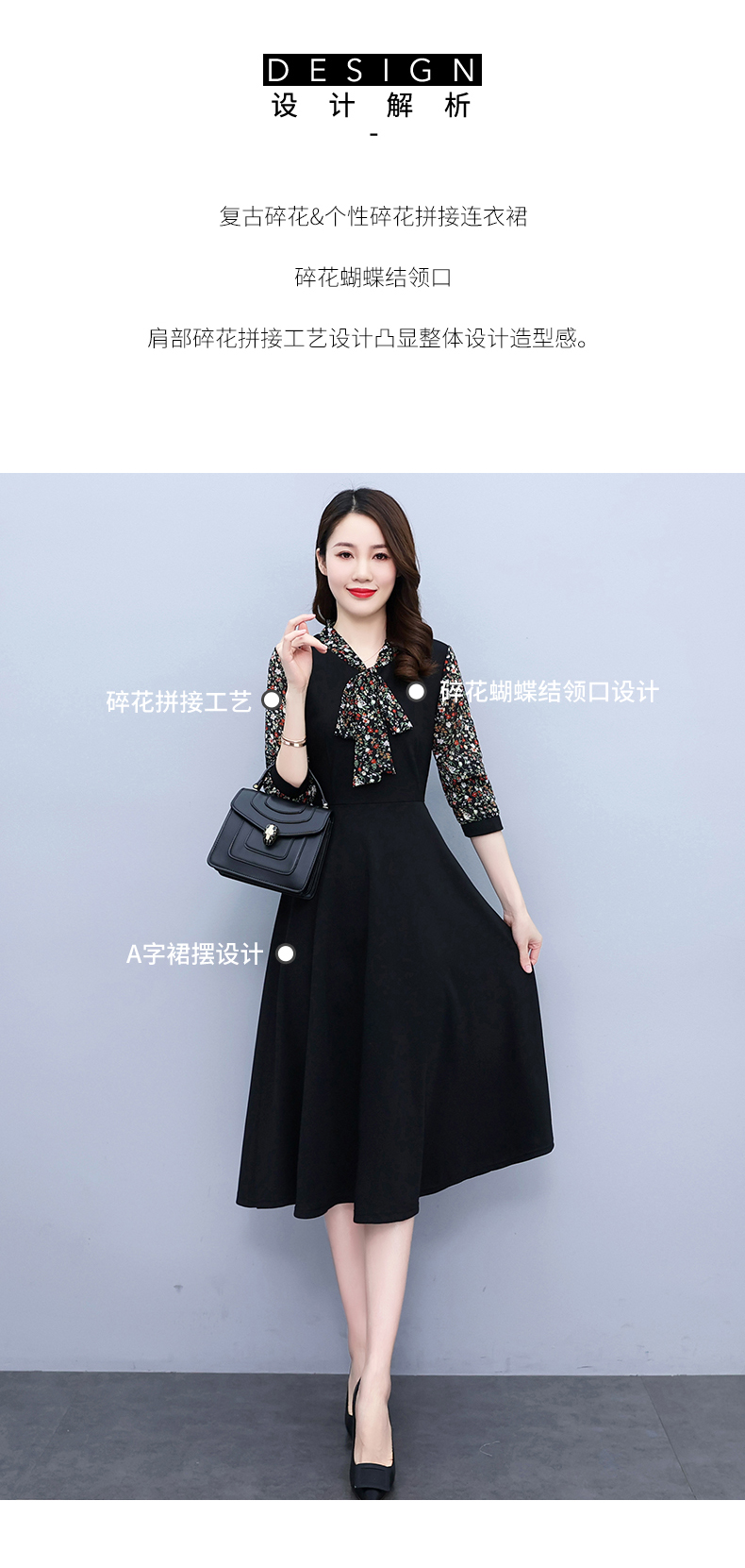 中年妈妈内搭配大衣打底连衣裙女春款贵夫人阔太太高端洋气质妈妈 HR-HRYZ7707