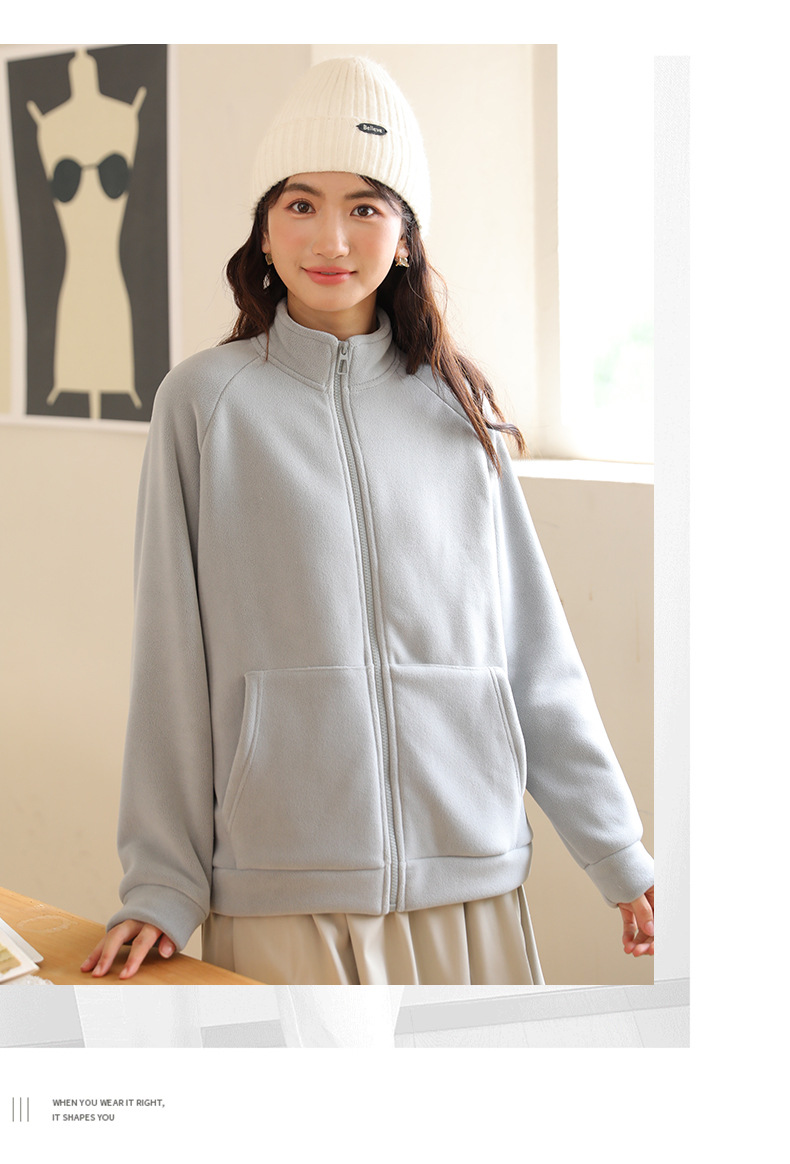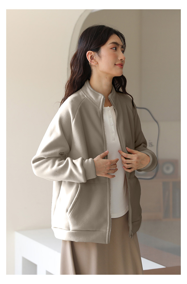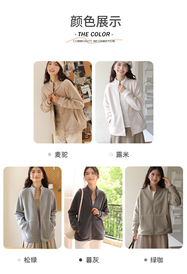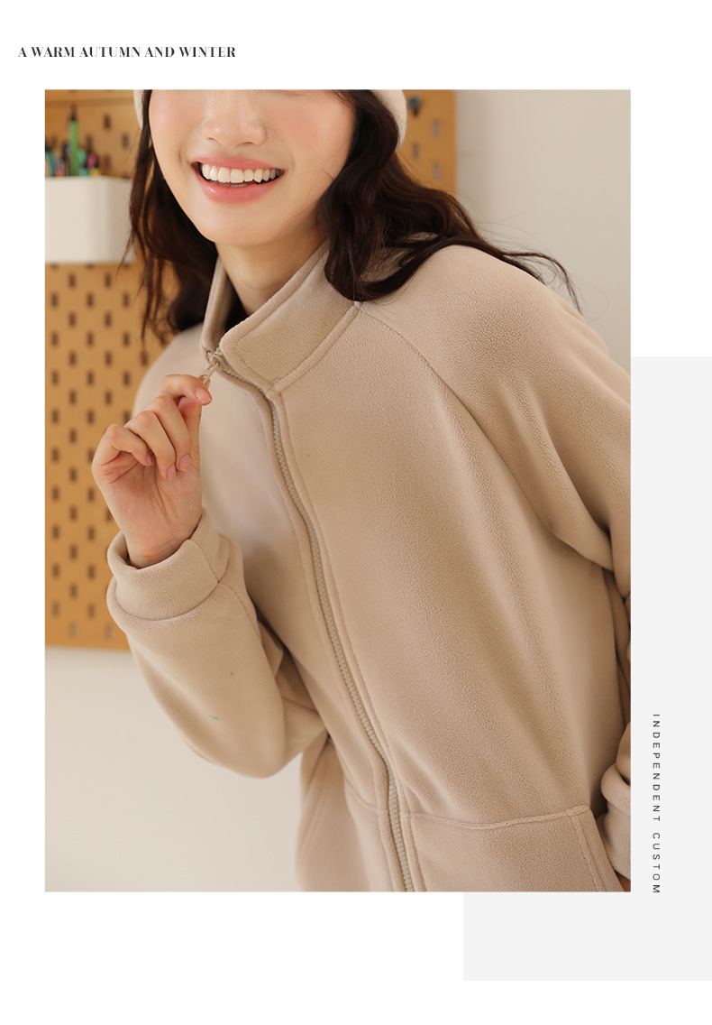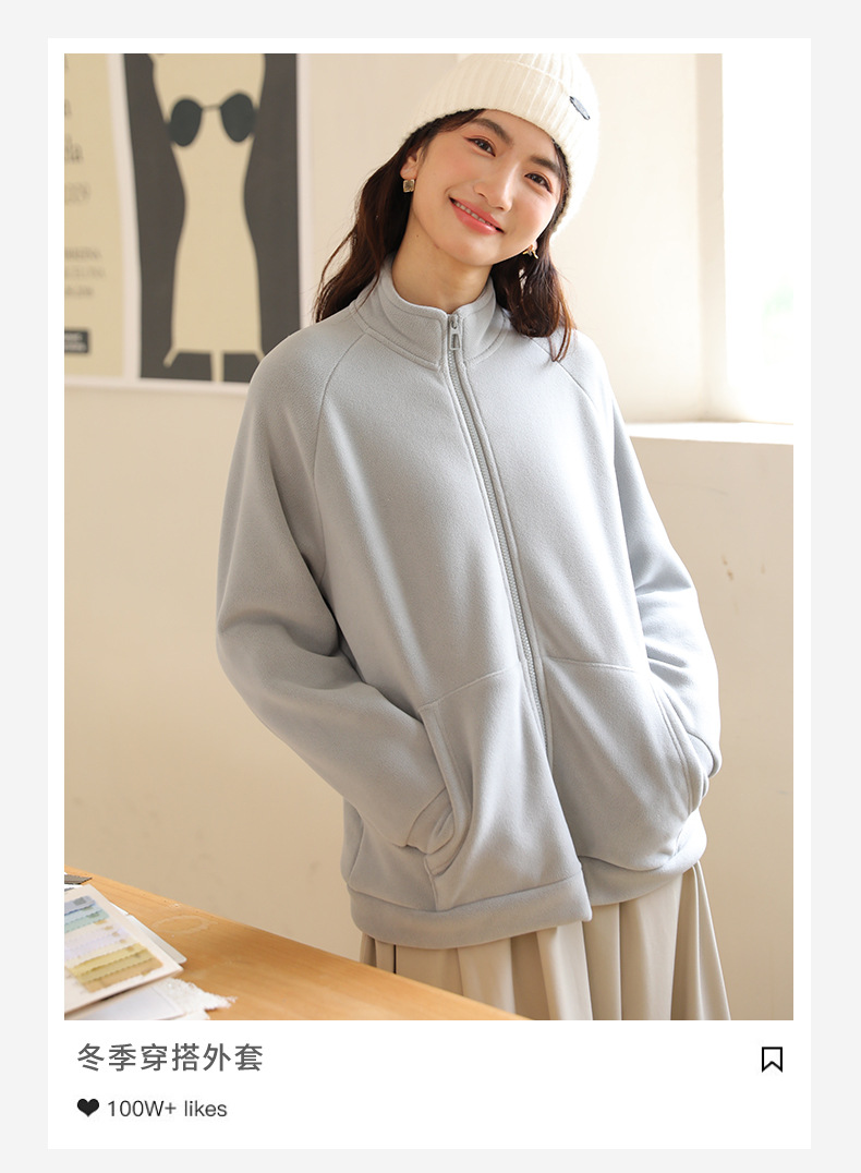 摇粒绒外套羊羔绒女秋冬加绒加厚开衫宽松拉链立领绒衫上衣卫衣