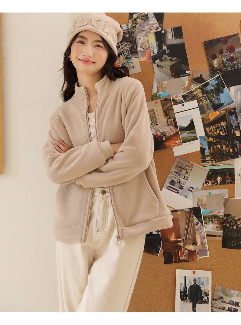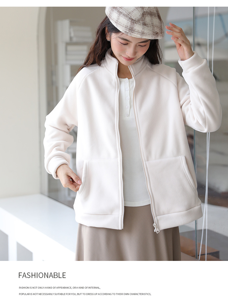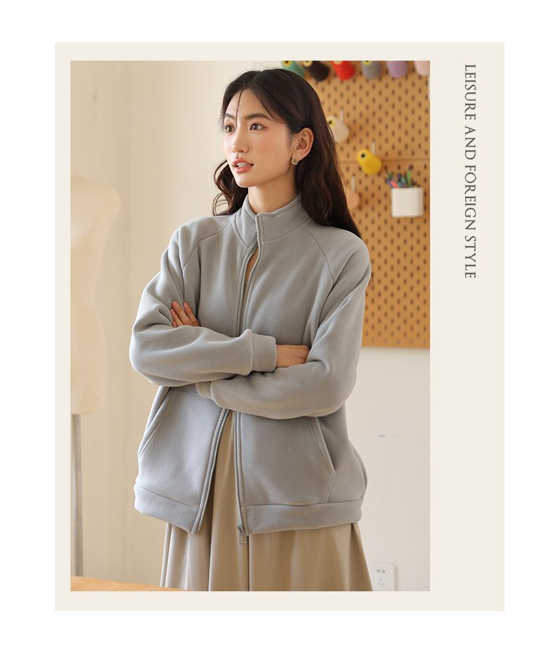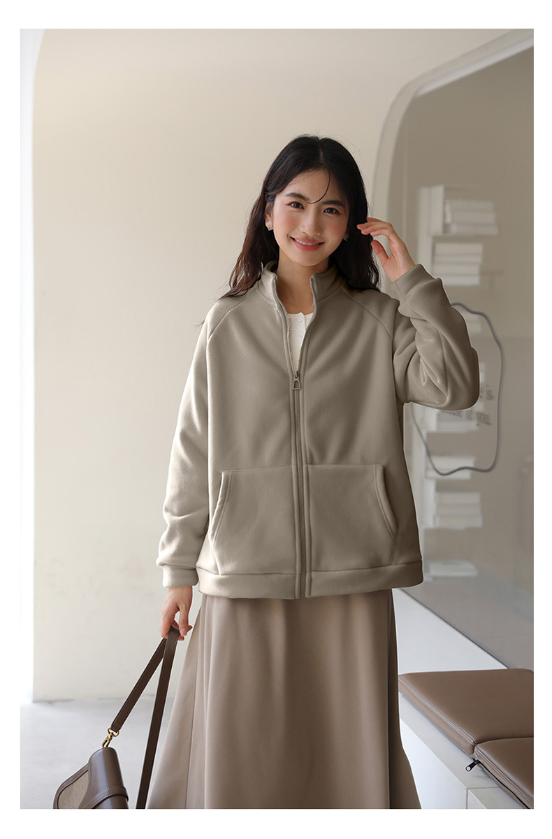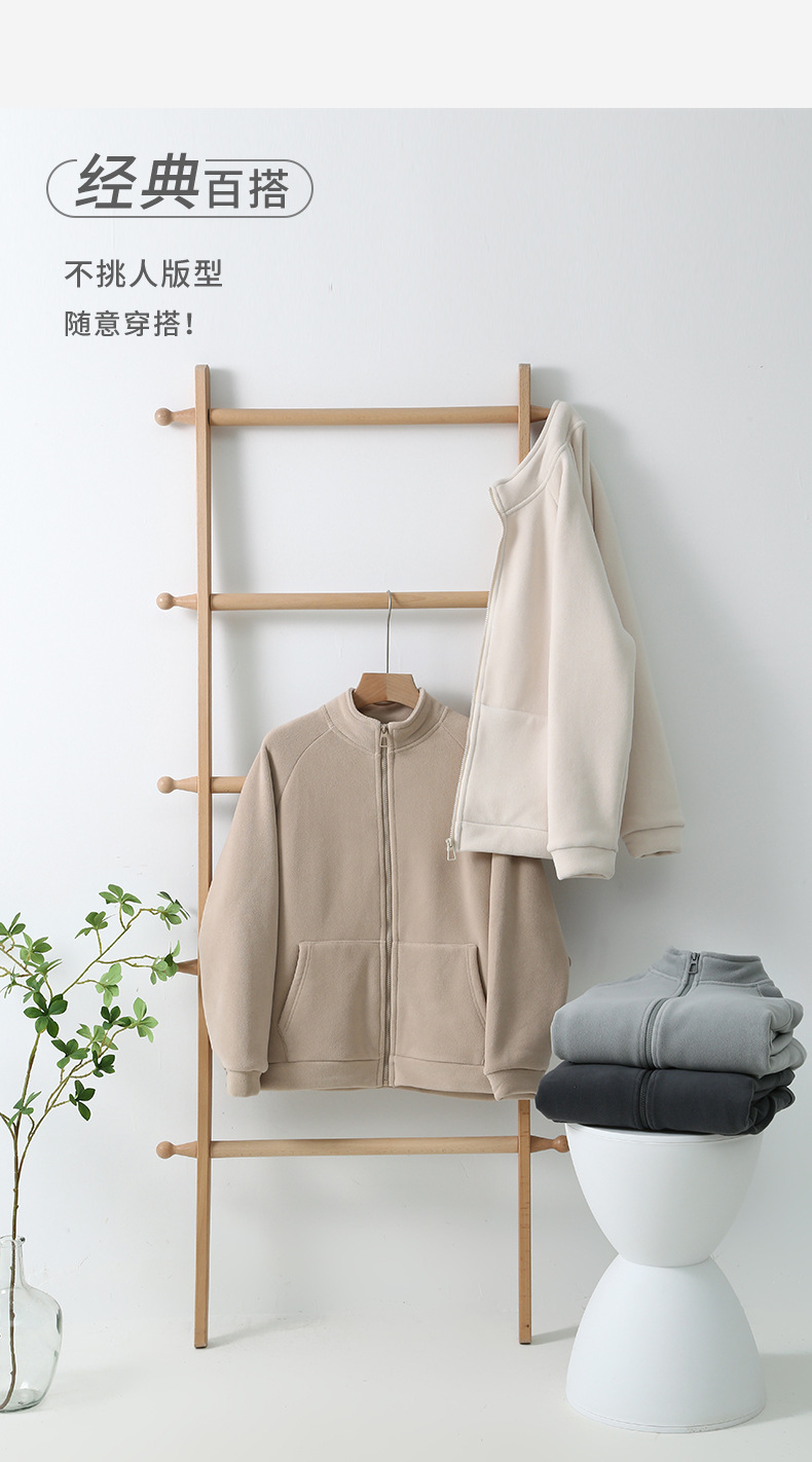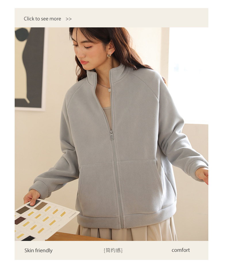 摇粒绒外套羊羔绒女秋冬加绒加厚开衫宽松拉链立领绒衫上衣卫衣