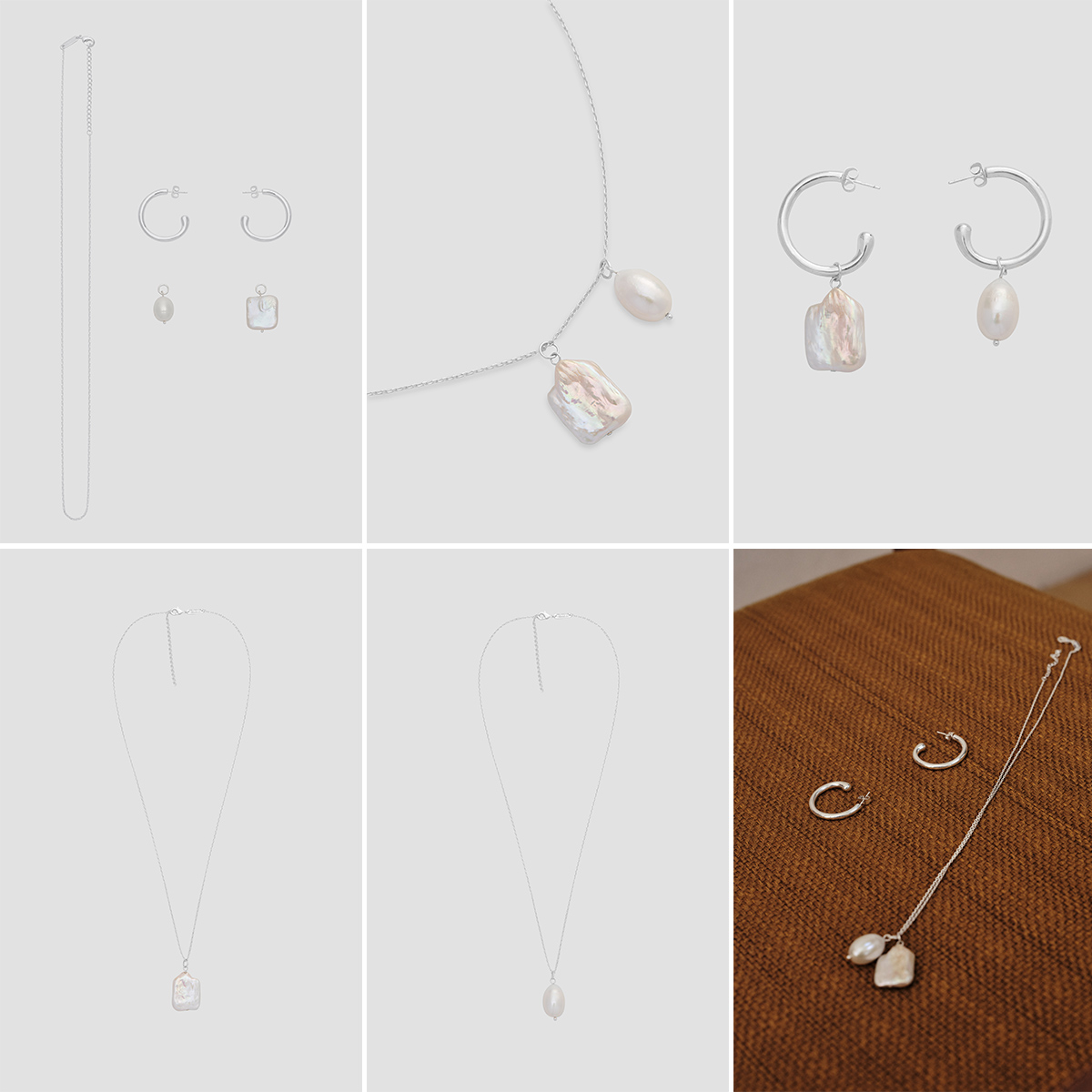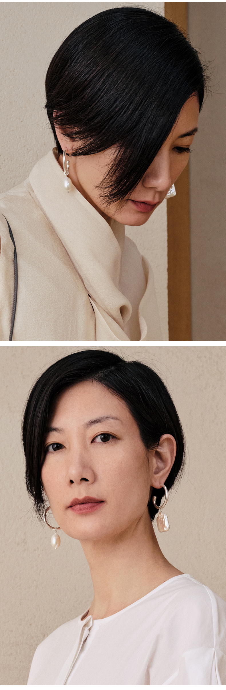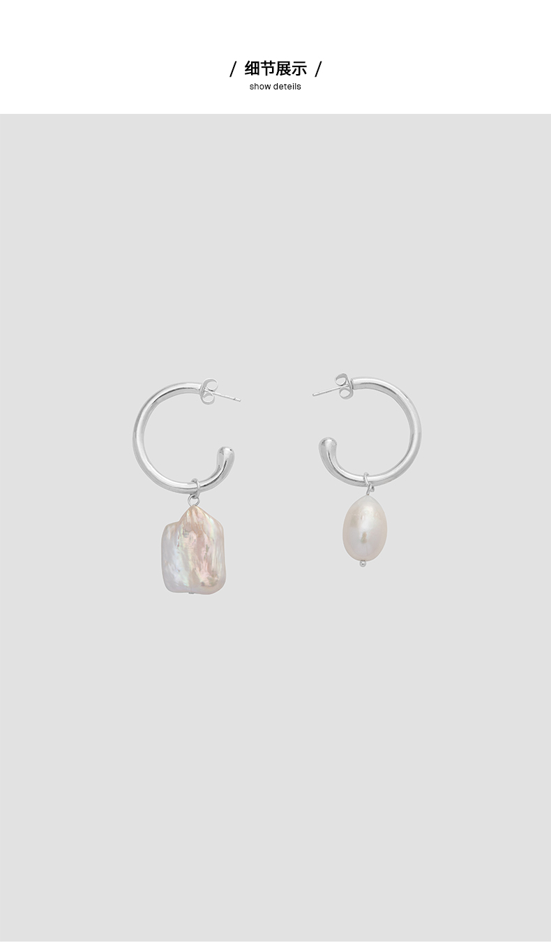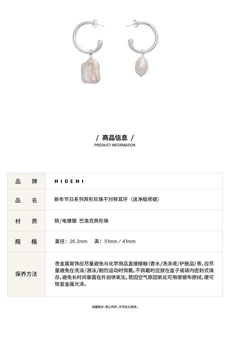 HIDEMI 异形珍珠不对称耳环(送净版项链)