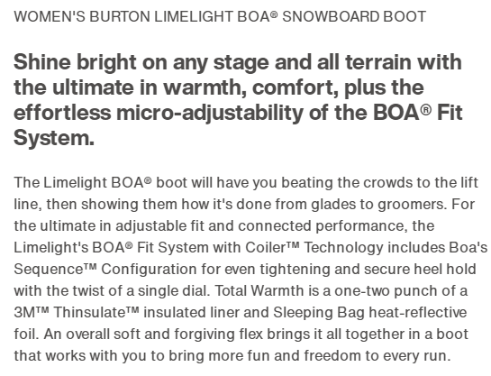 Burton 20-21款 LIMELIGHT BOA女款单板滑雪靴 银色反光