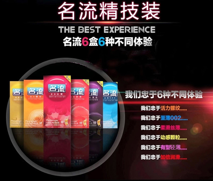 名流 超薄避孕套 60只组合情趣套套 安全套男用中号均码 超柔润滑大颗粒螺纹套子 成人计生用品 名流6款精品组合60只(10只/款6款6盒)