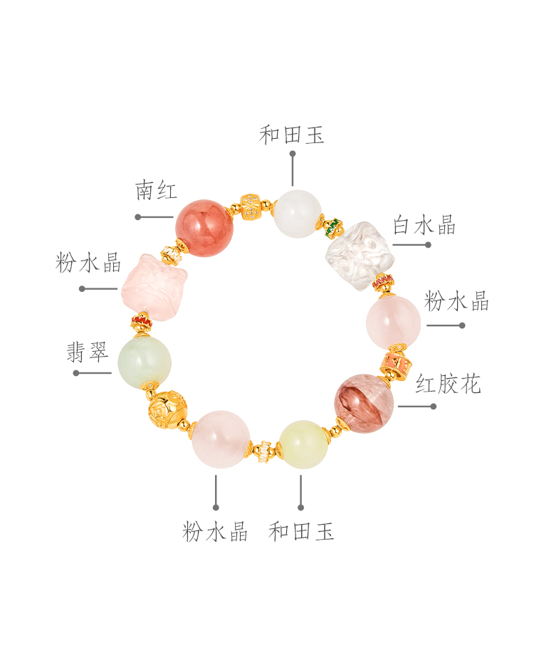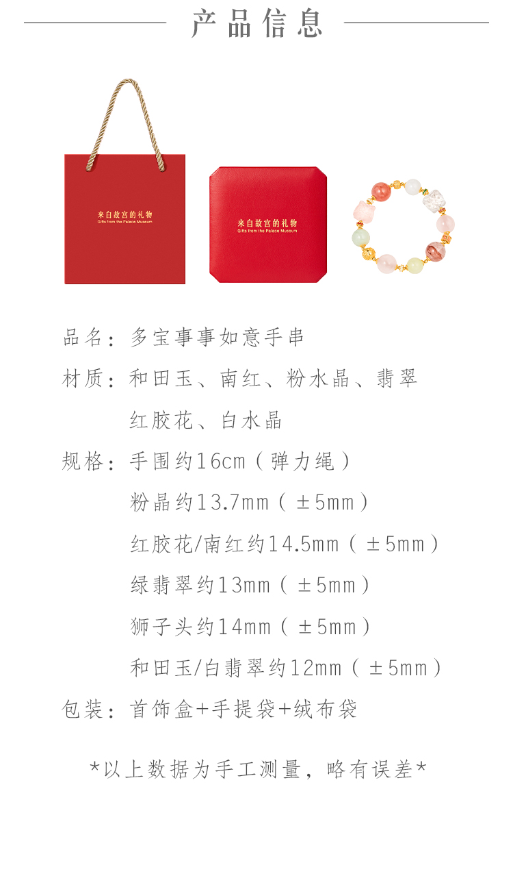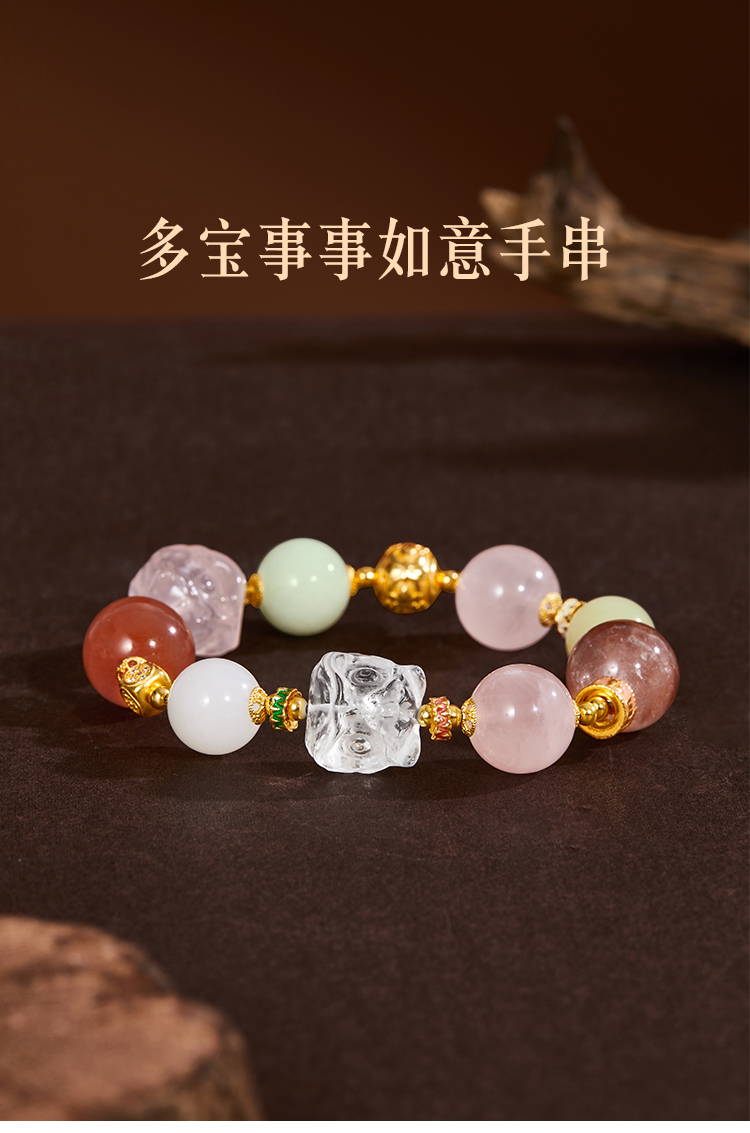 【故宫饰品】多宝事事如意手串和田玉水晶南红翡翠手链生日礼物女生