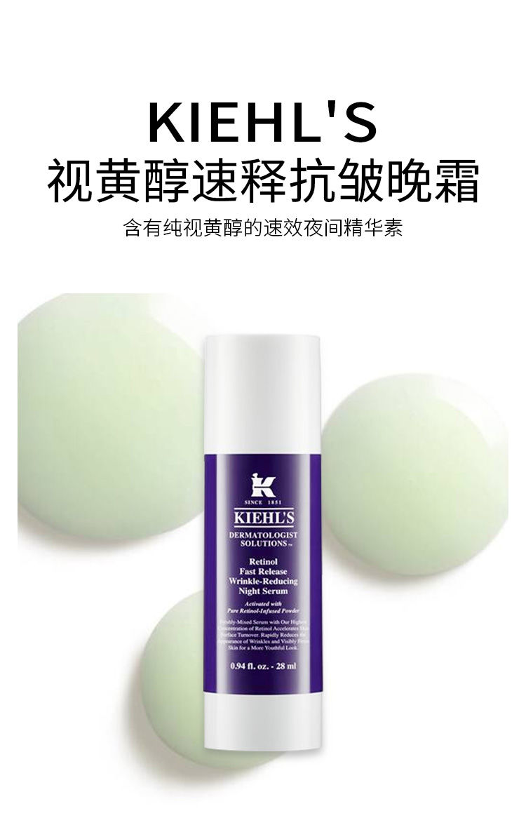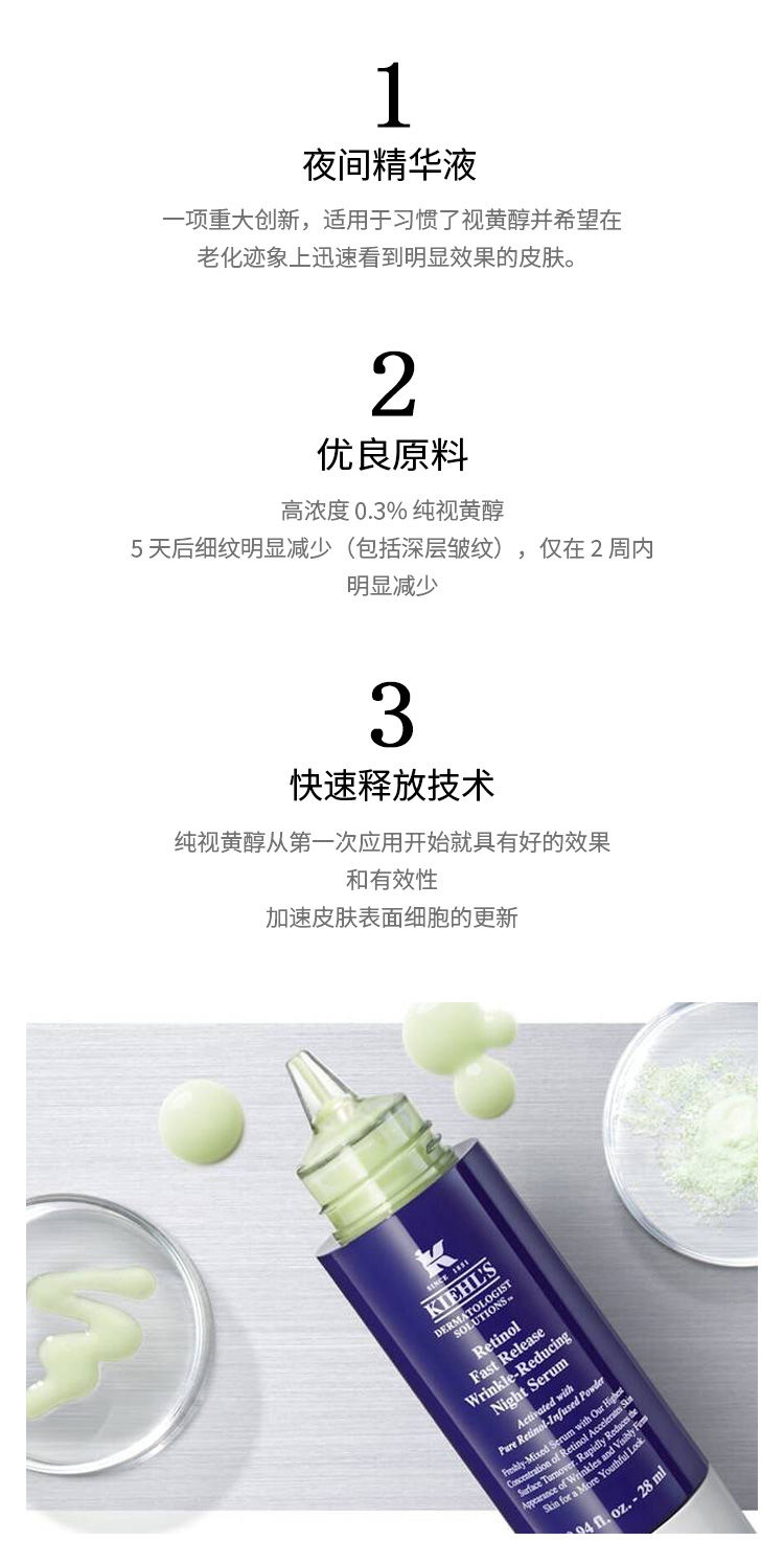 【预售 急单慎拍】Kiehl's 科颜氏0.3%A醇视黄醇夜间精华28ml