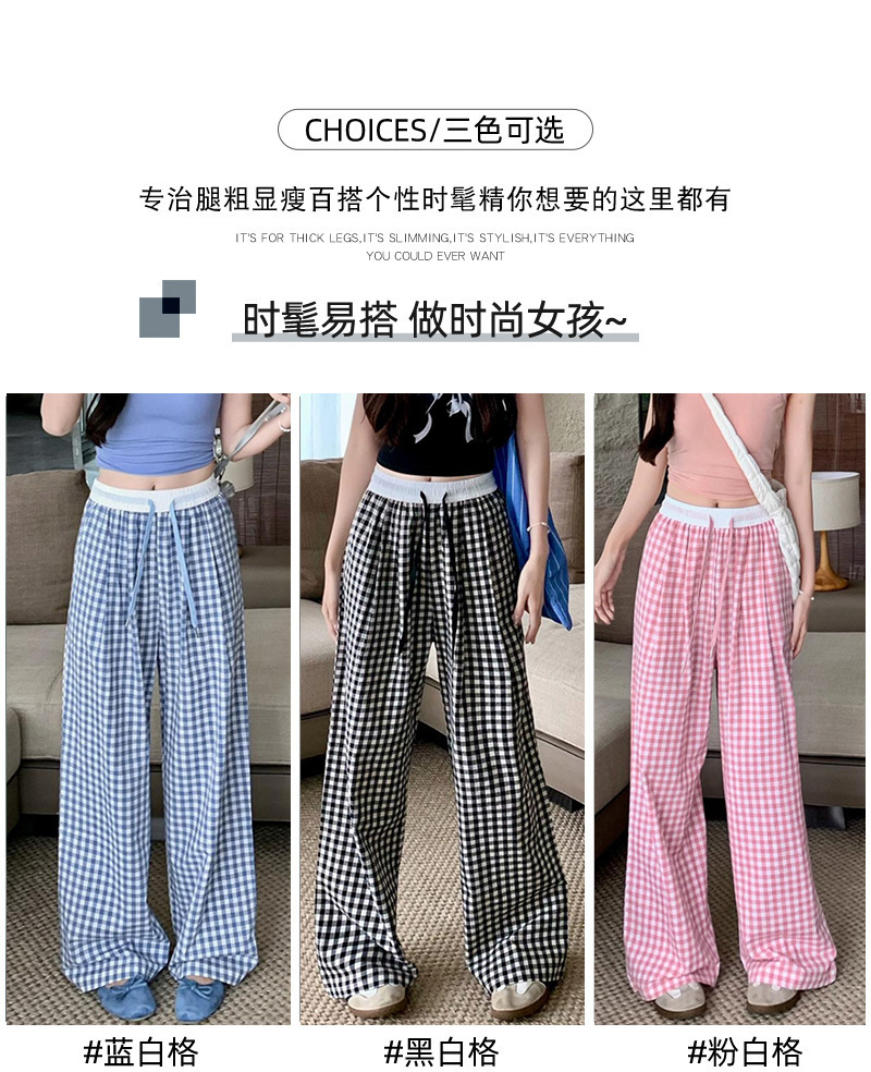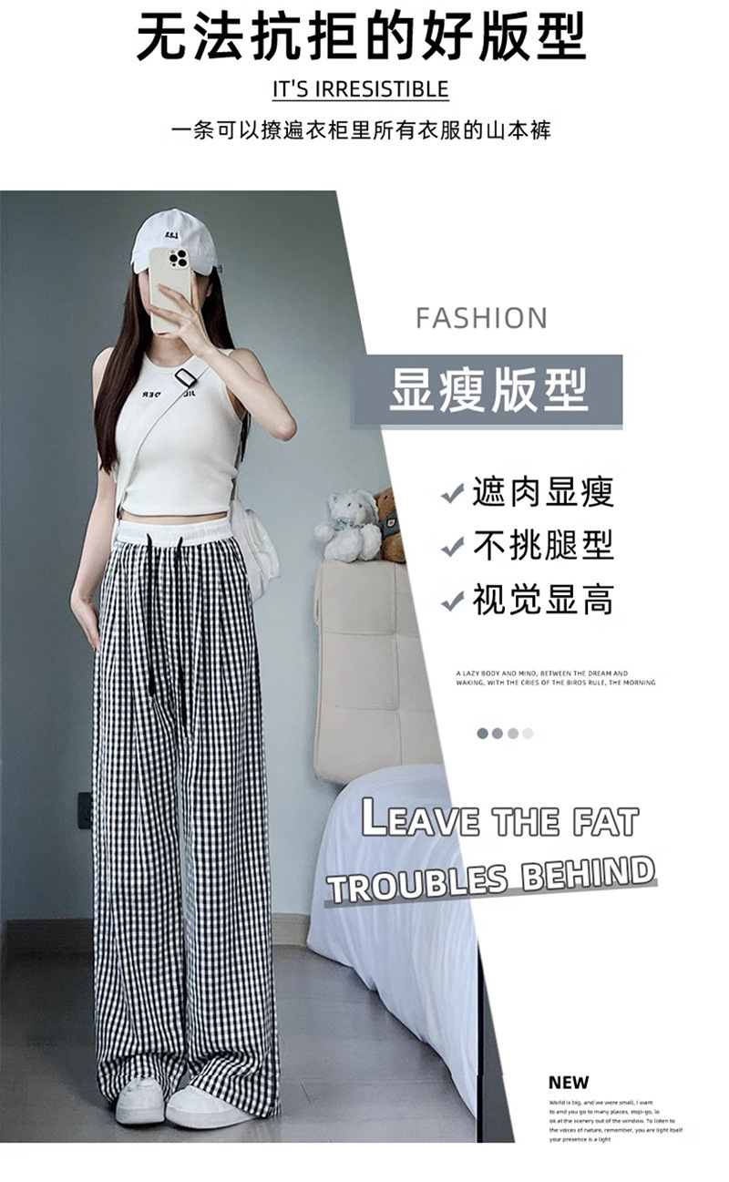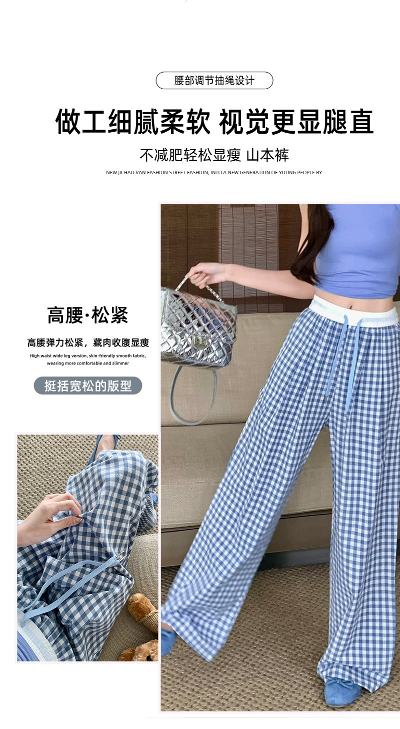 【一条可以撩遍衣柜里所有衣服的山本裤】蓝色格子阔腿裤春夏薄款女小个子休闲裤宽松慵懒风高腰冰丝山本裤。ry