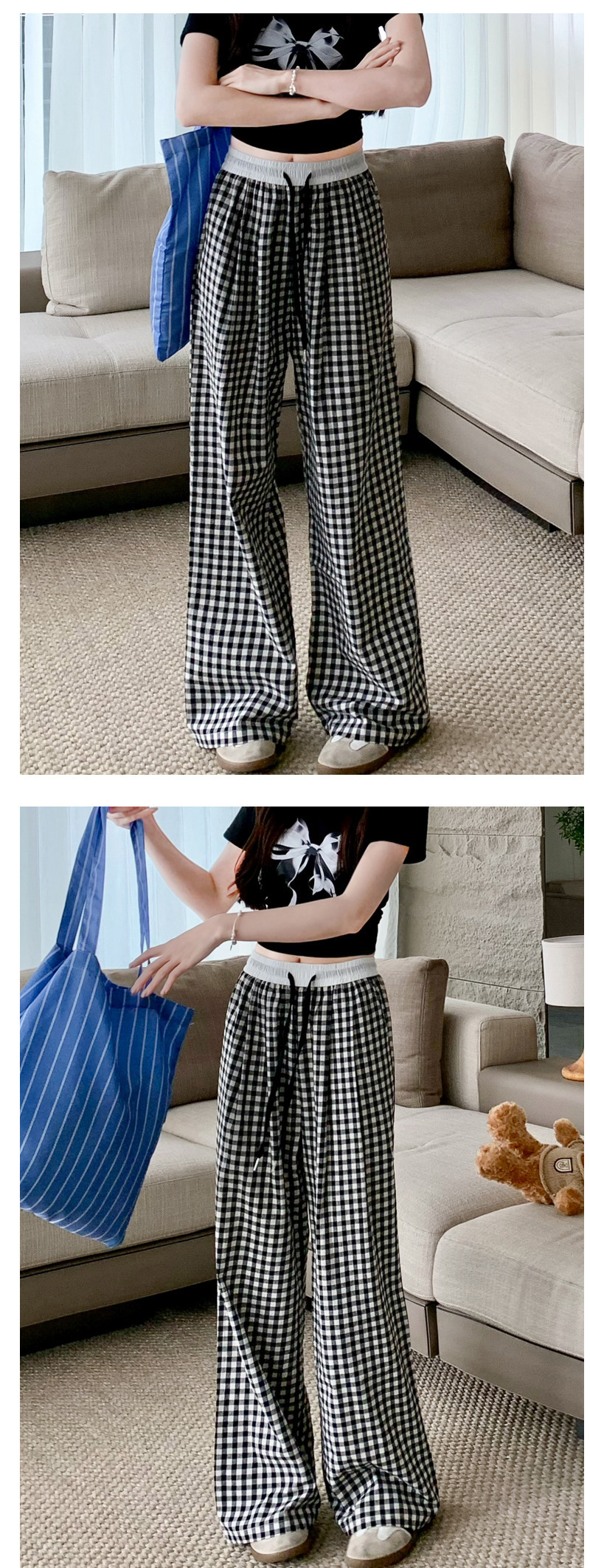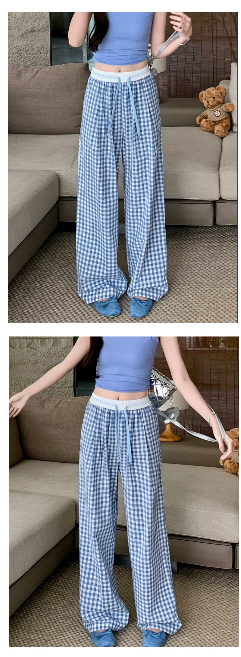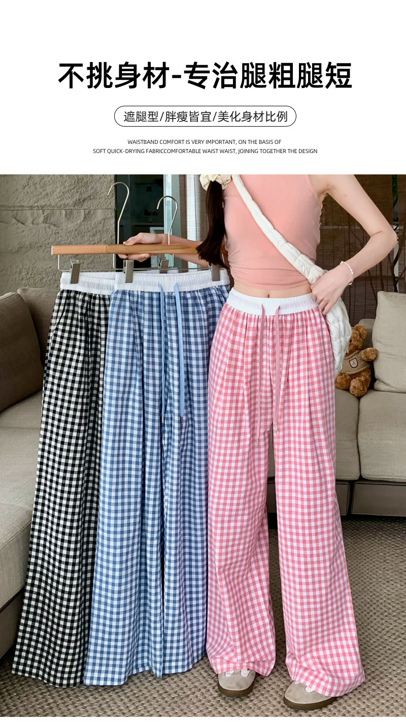 【一条可以撩遍衣柜里所有衣服的山本裤】蓝色格子阔腿裤春夏薄款女小个子休闲裤宽松慵懒风高腰冰丝山本裤。ry