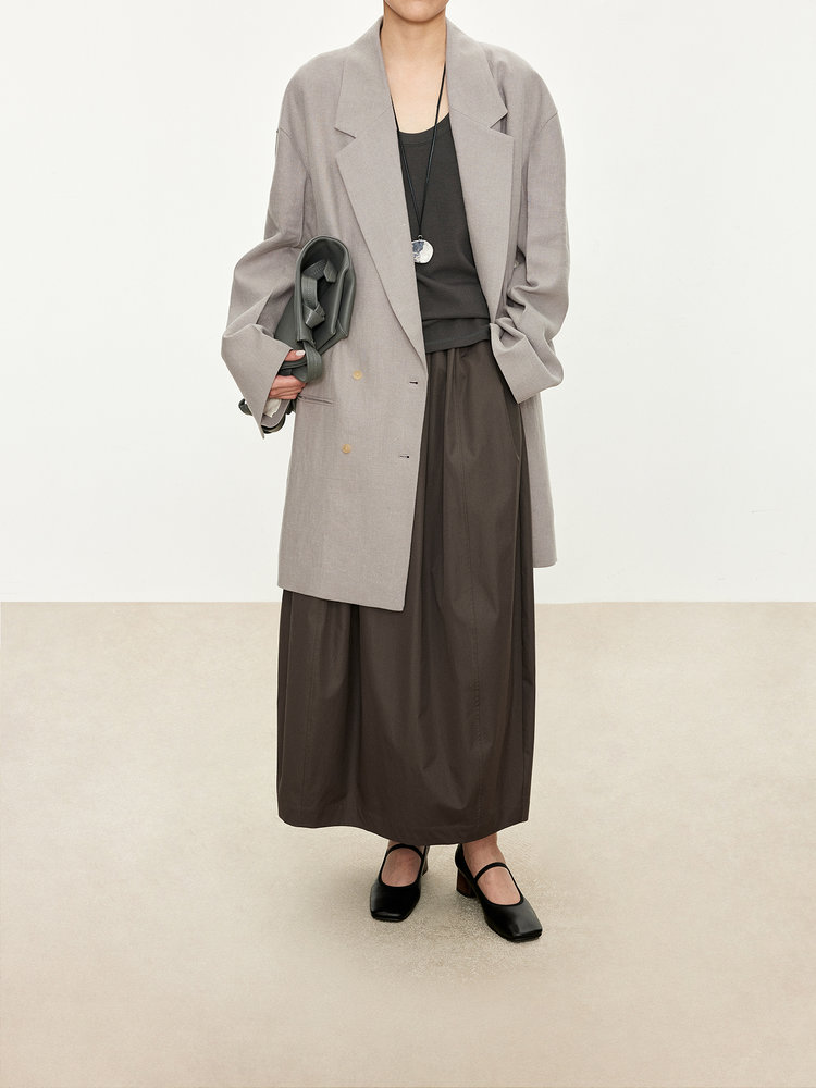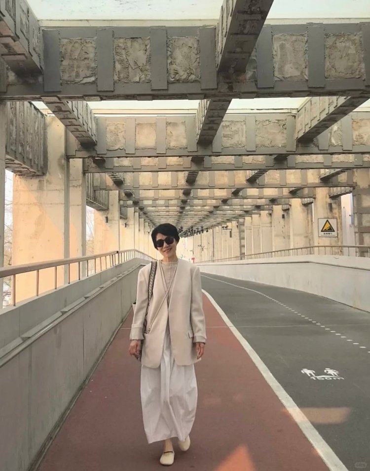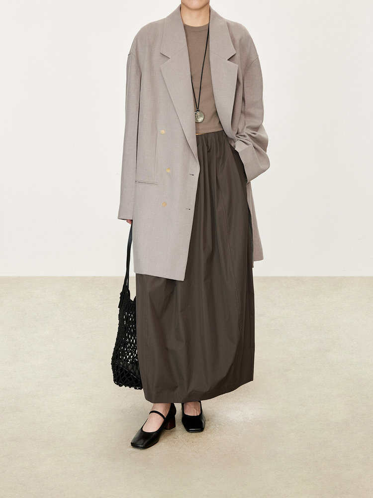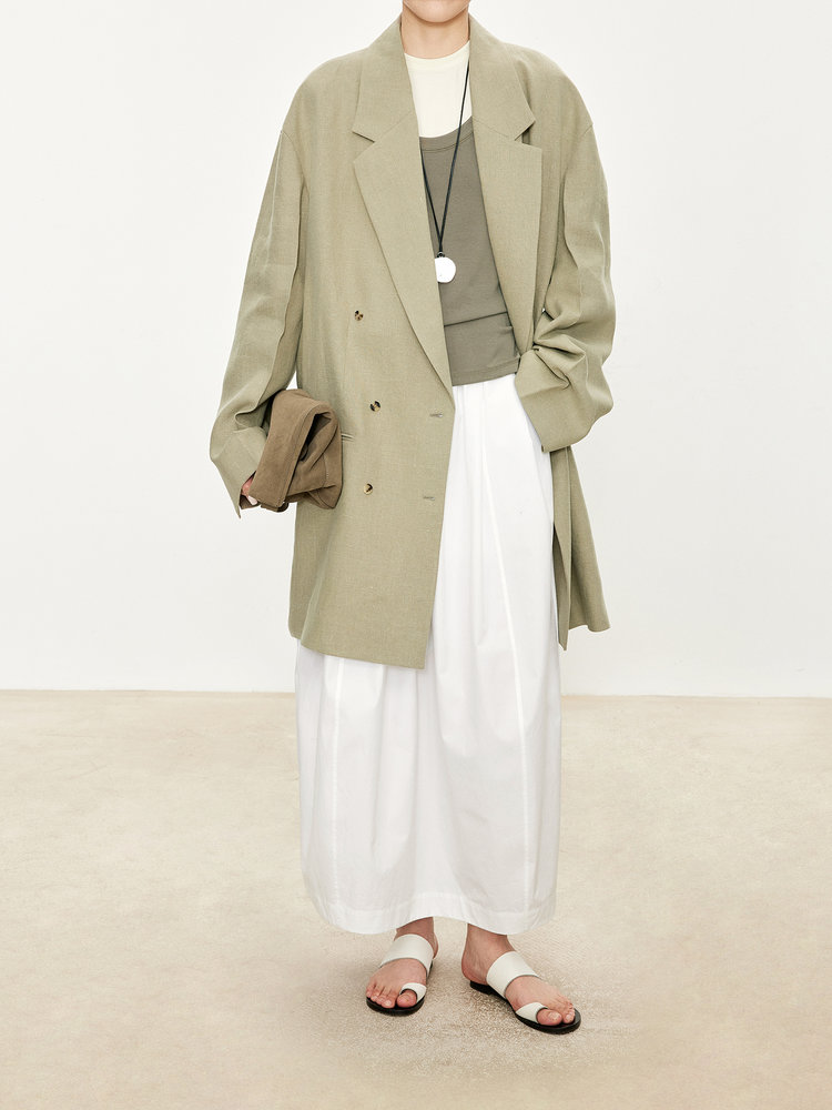 整块面料有型骨感与垂感兼备,上身灵动潇洒。