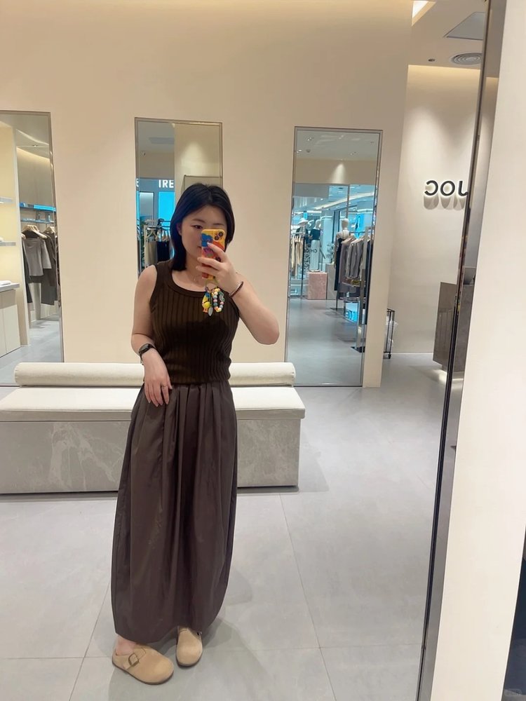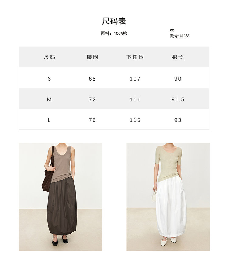 橡筋腰头贴合多种身形,松紧适度紧致裙身腰线。