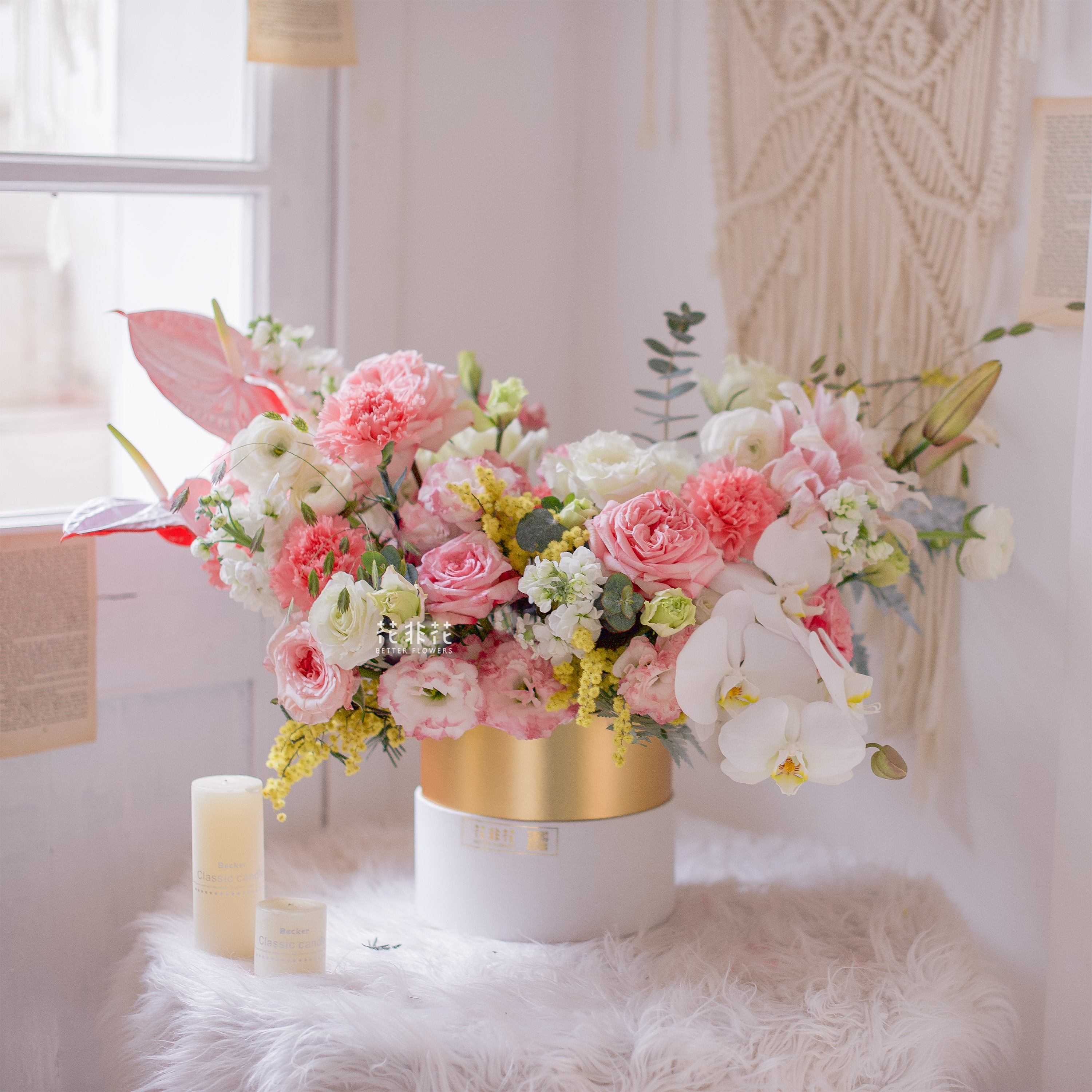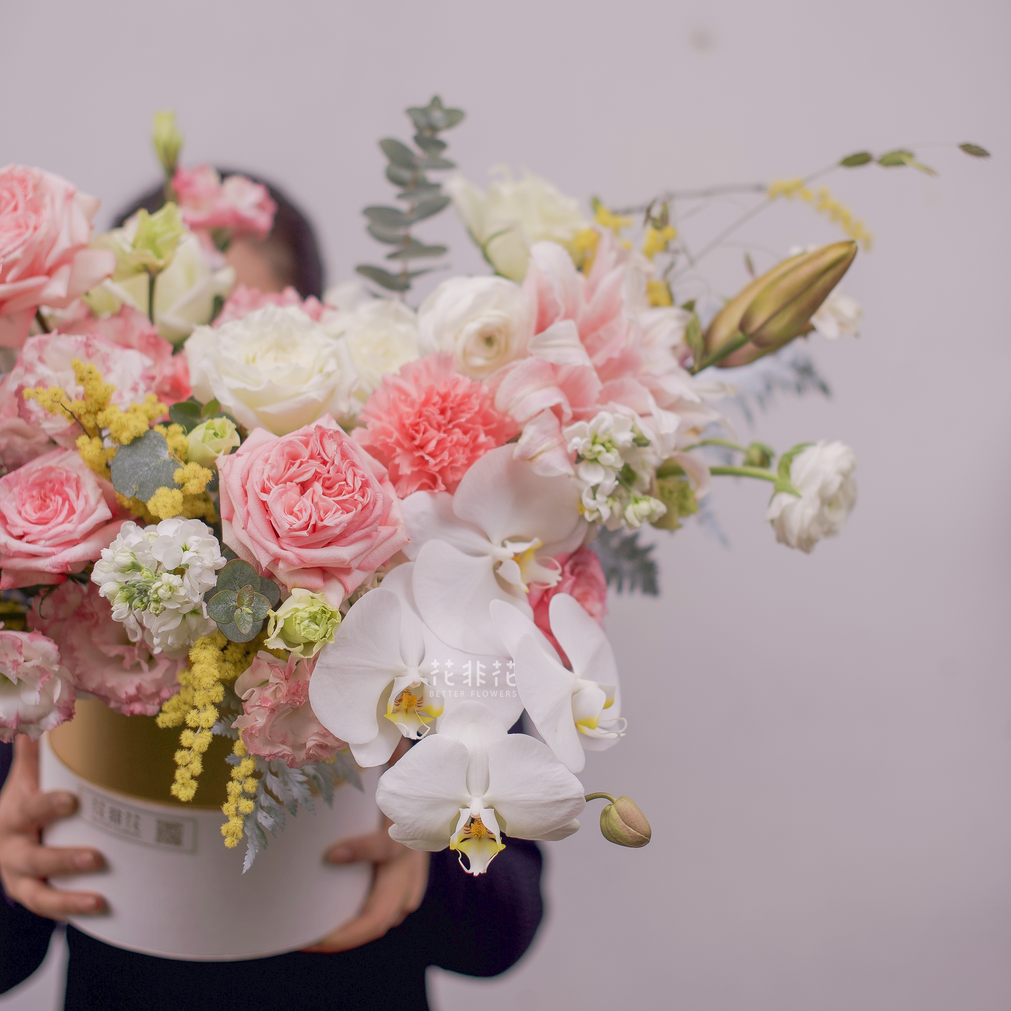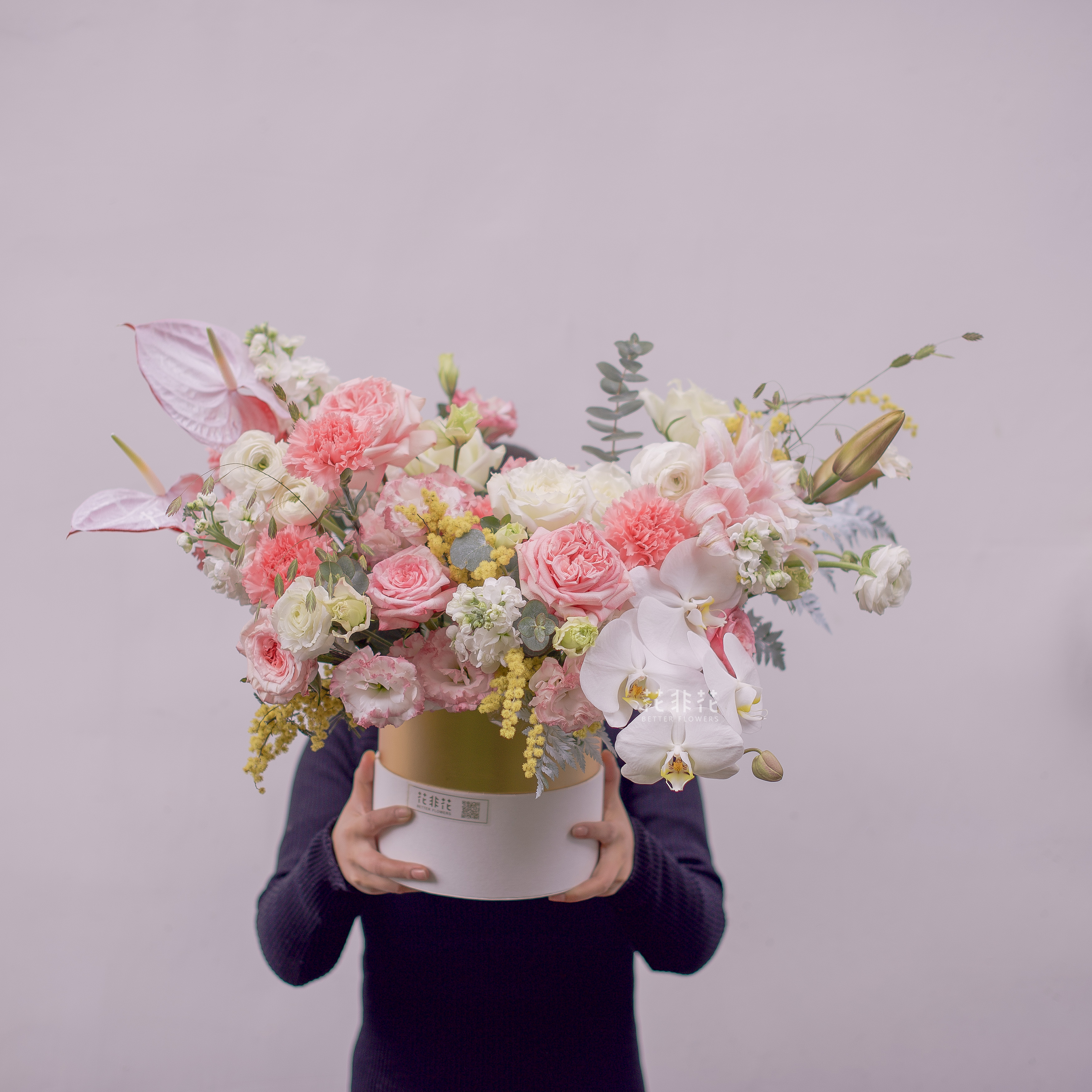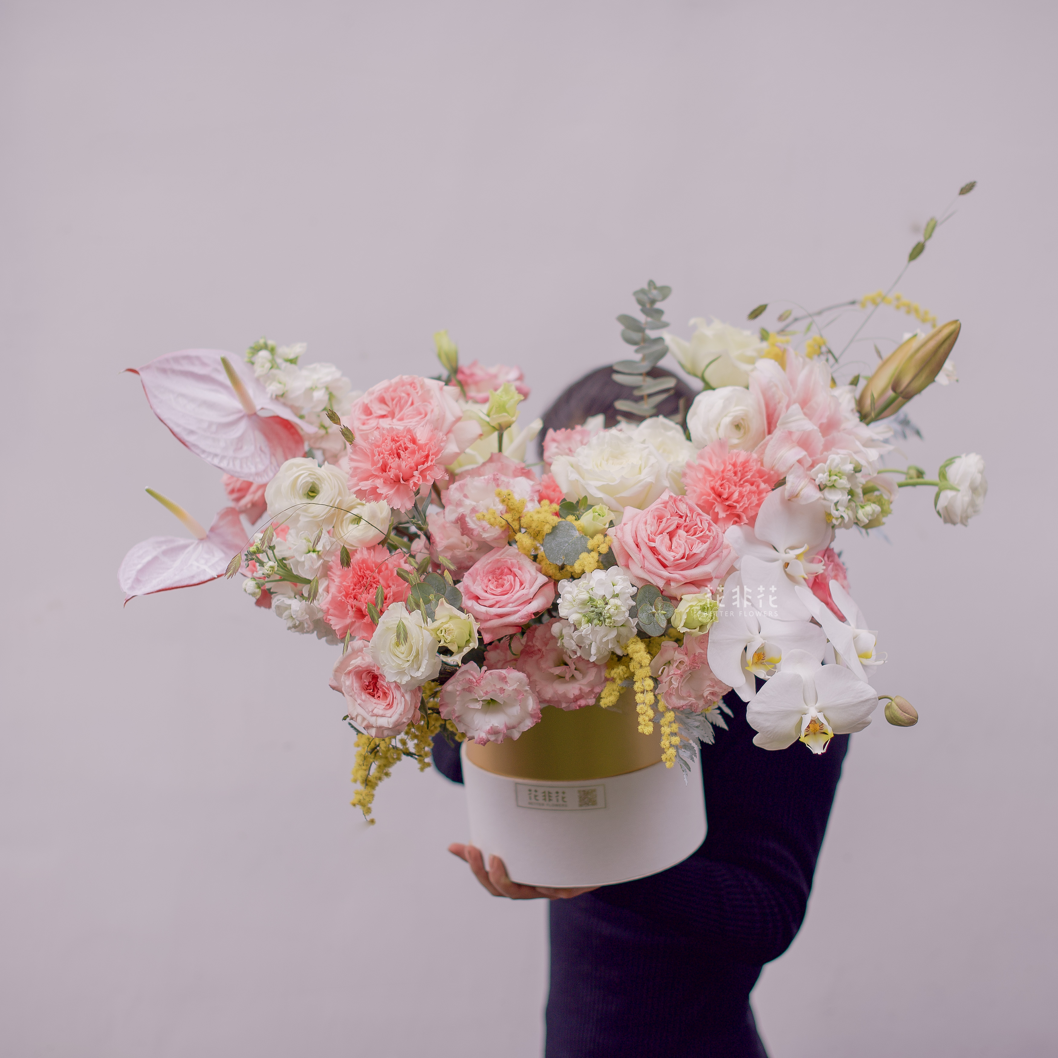 《她的花园》多头紫罗兰玫瑰朱小姐玫瑰蝴蝶兰马蹄莲抱抱桶