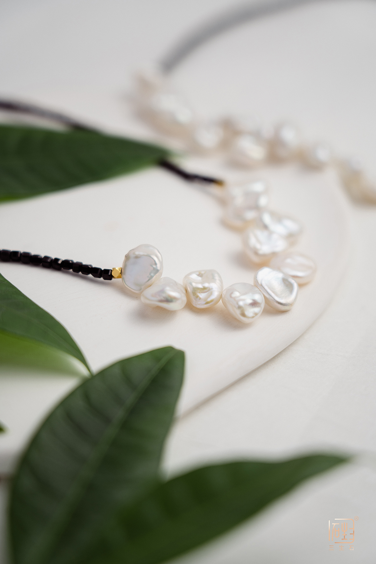 巴洛克花瓣珍珠黑尖晶设计项链