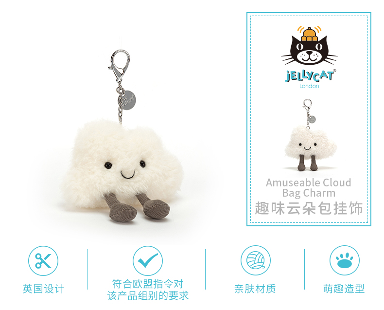 Jellycat Amuseable系列 小白云钥匙扣 白色