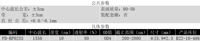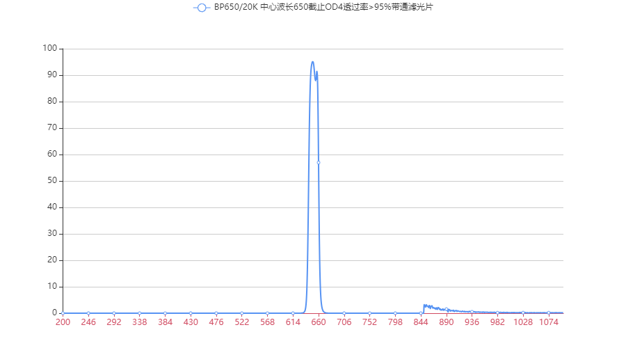 BP650/20K OD4@200-1100 T>95% Φ23.5*1.5 带通滤光片