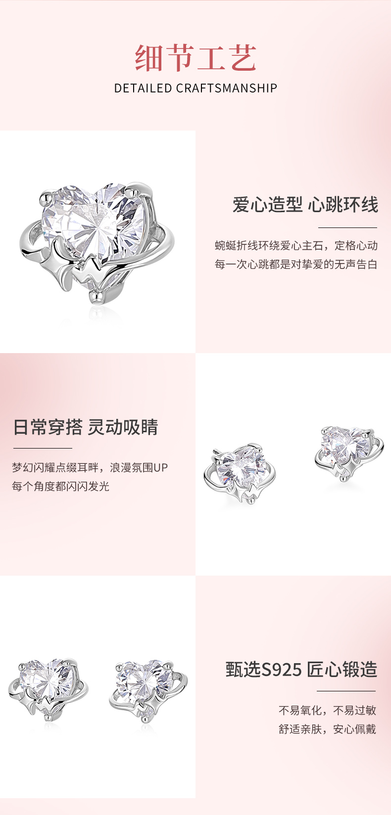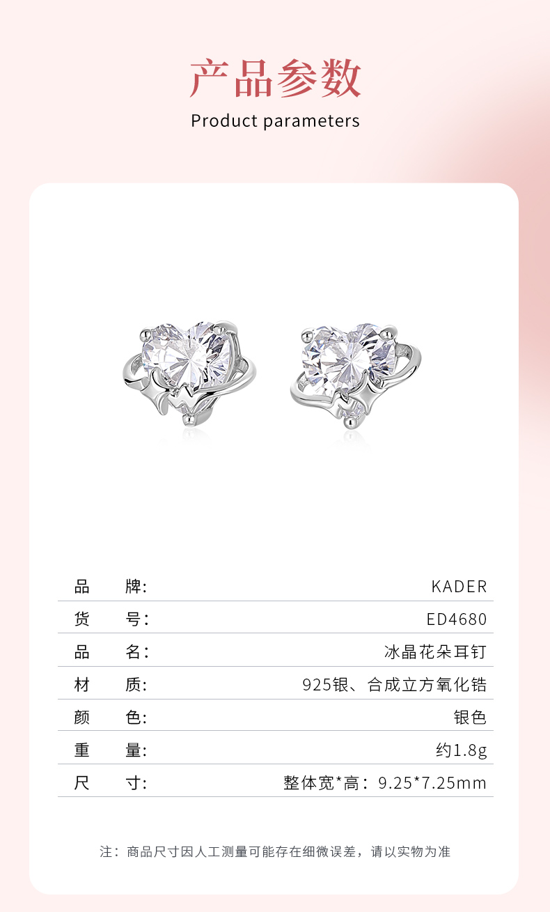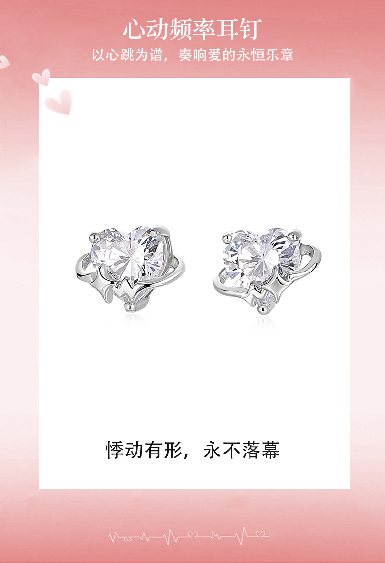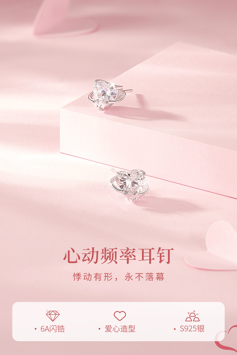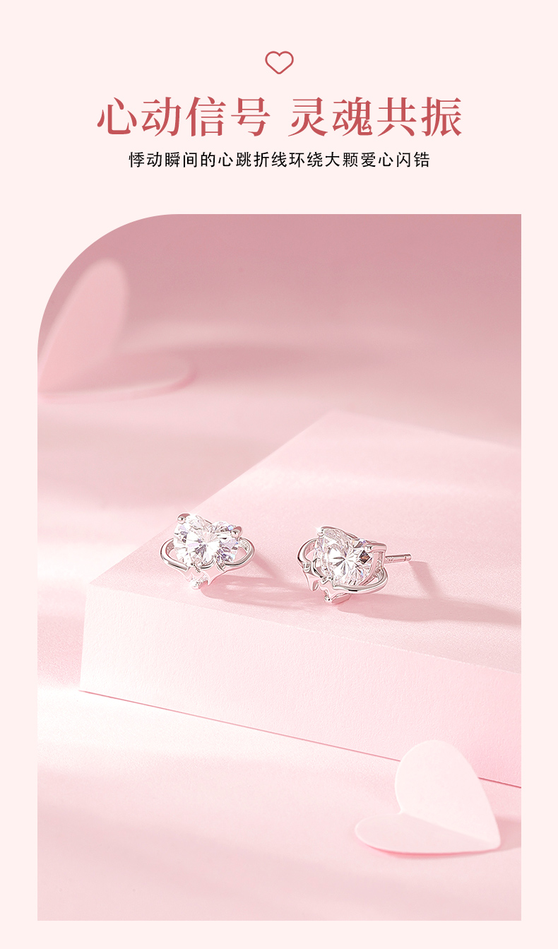 卡蒂罗KADER 心动频率耳钉 925银梦幻爱心大颗闪锆氛围感设计耳饰 精致俏皮甜美可爱配饰闪耀吸睛