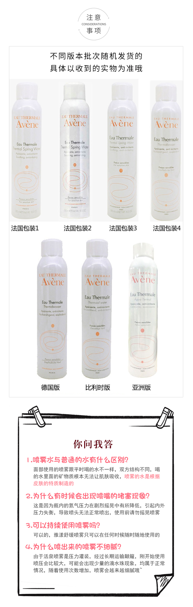 AVENE/avene 雅漾舒护活泉水喷雾 补水保湿舒缓敏感肌定妆化妆水 300ml