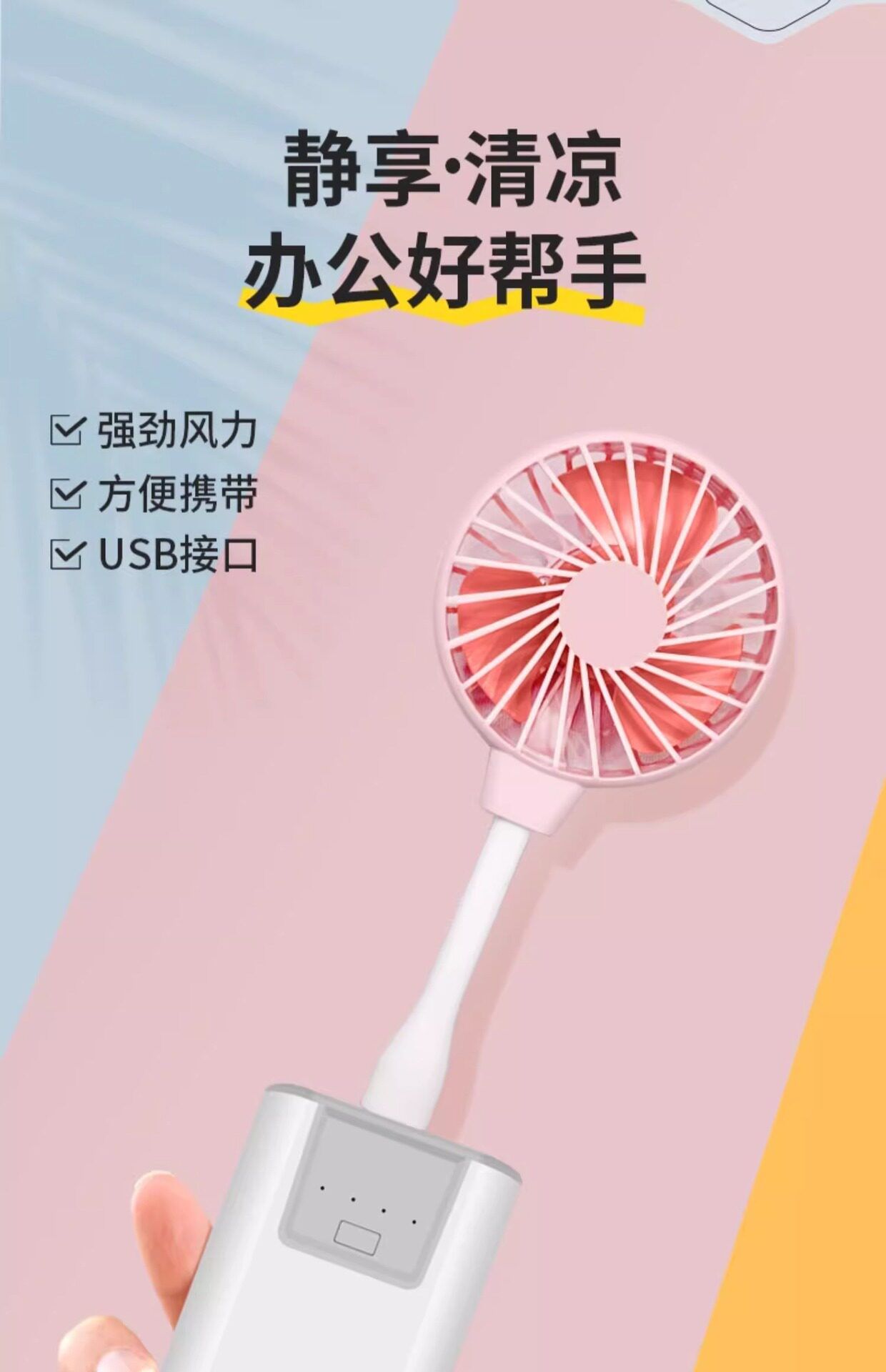 直手持便携静音随身办公室插户外风扇USB小风扇夏季插充电宝迷你