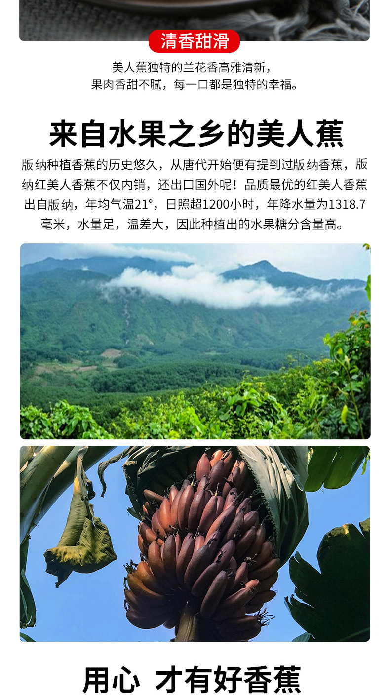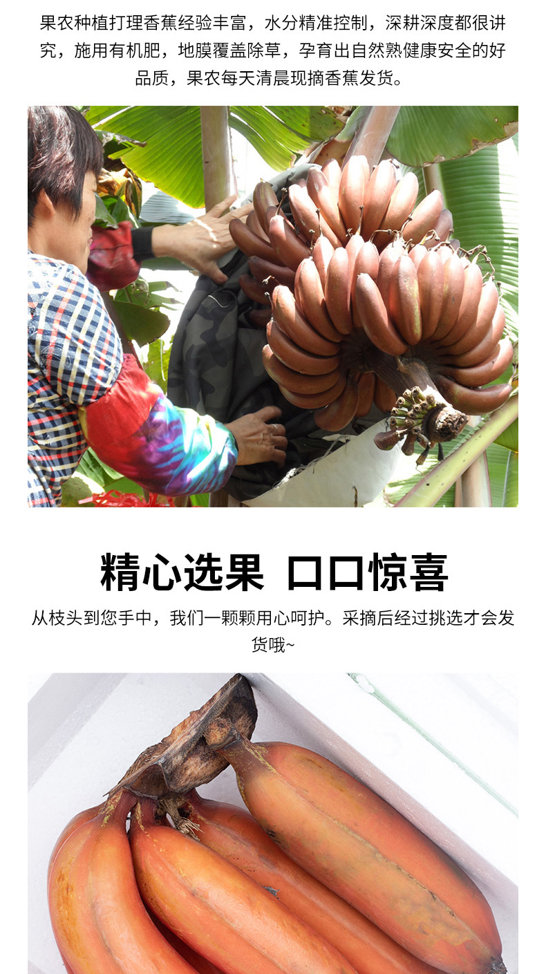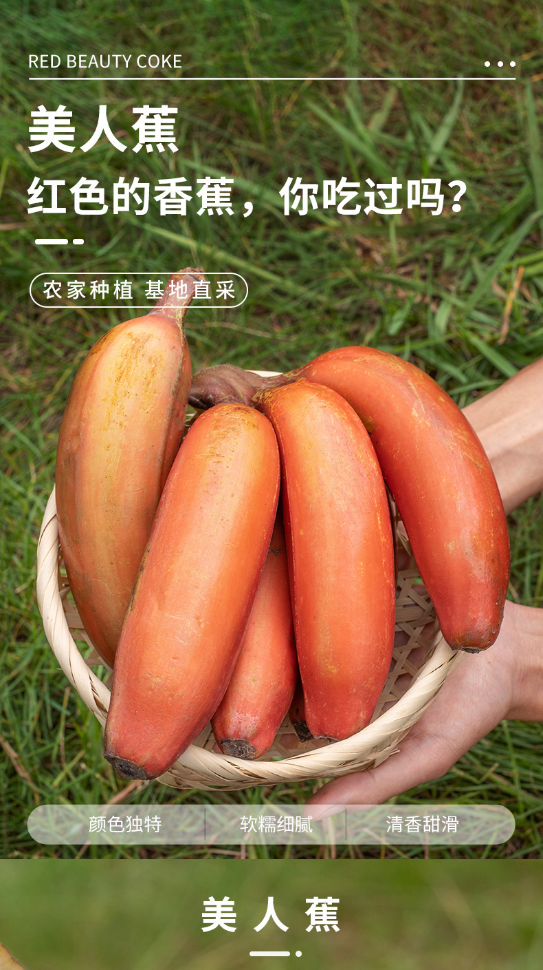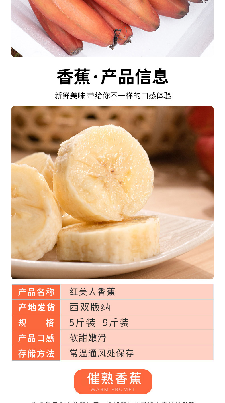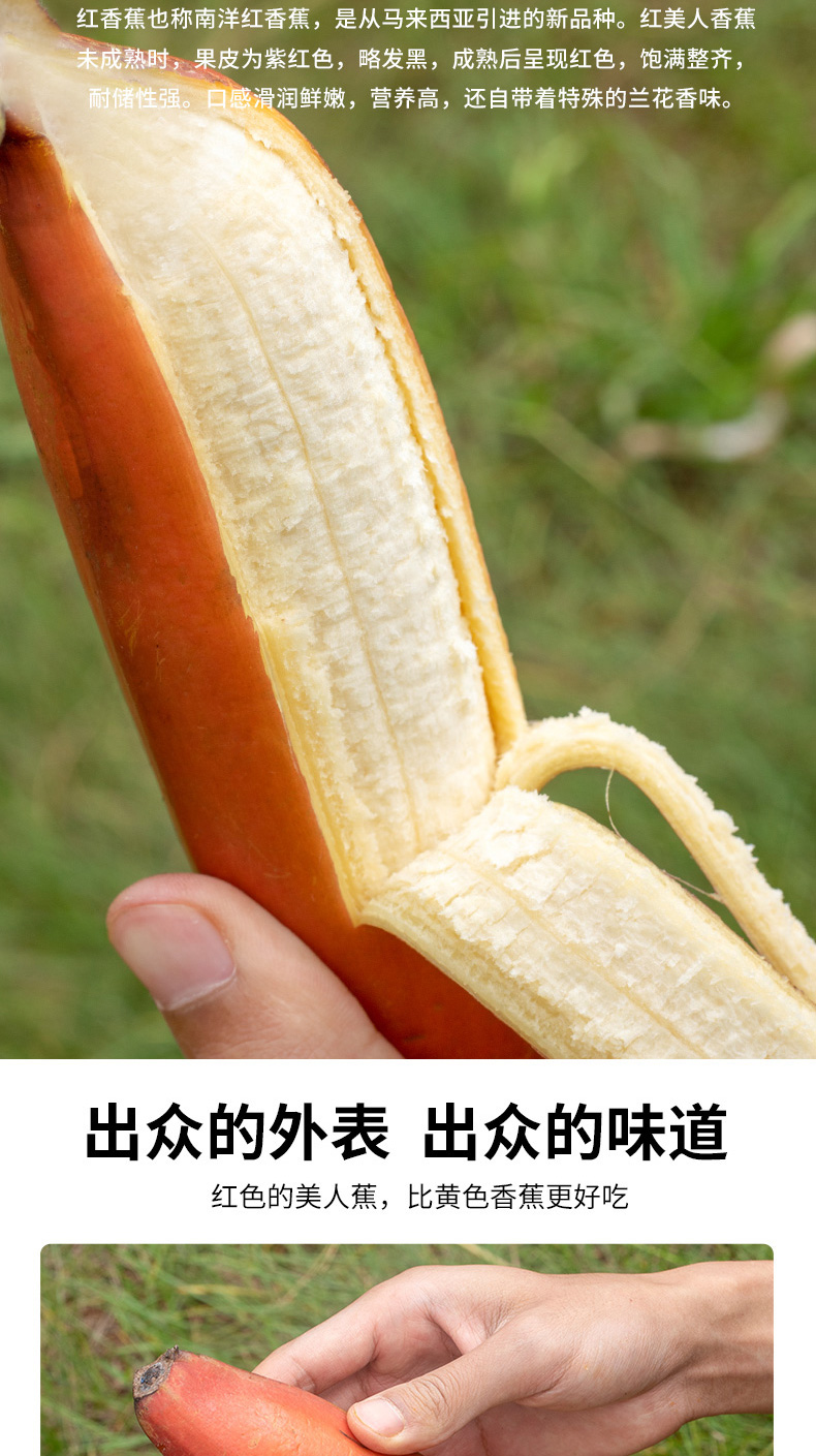 云南西双版纳红美人香蕉 自然熟 当季新鲜现摘 软甜嫩滑香甜果形细长外表红润色泽艳丽入口即化 口留余香