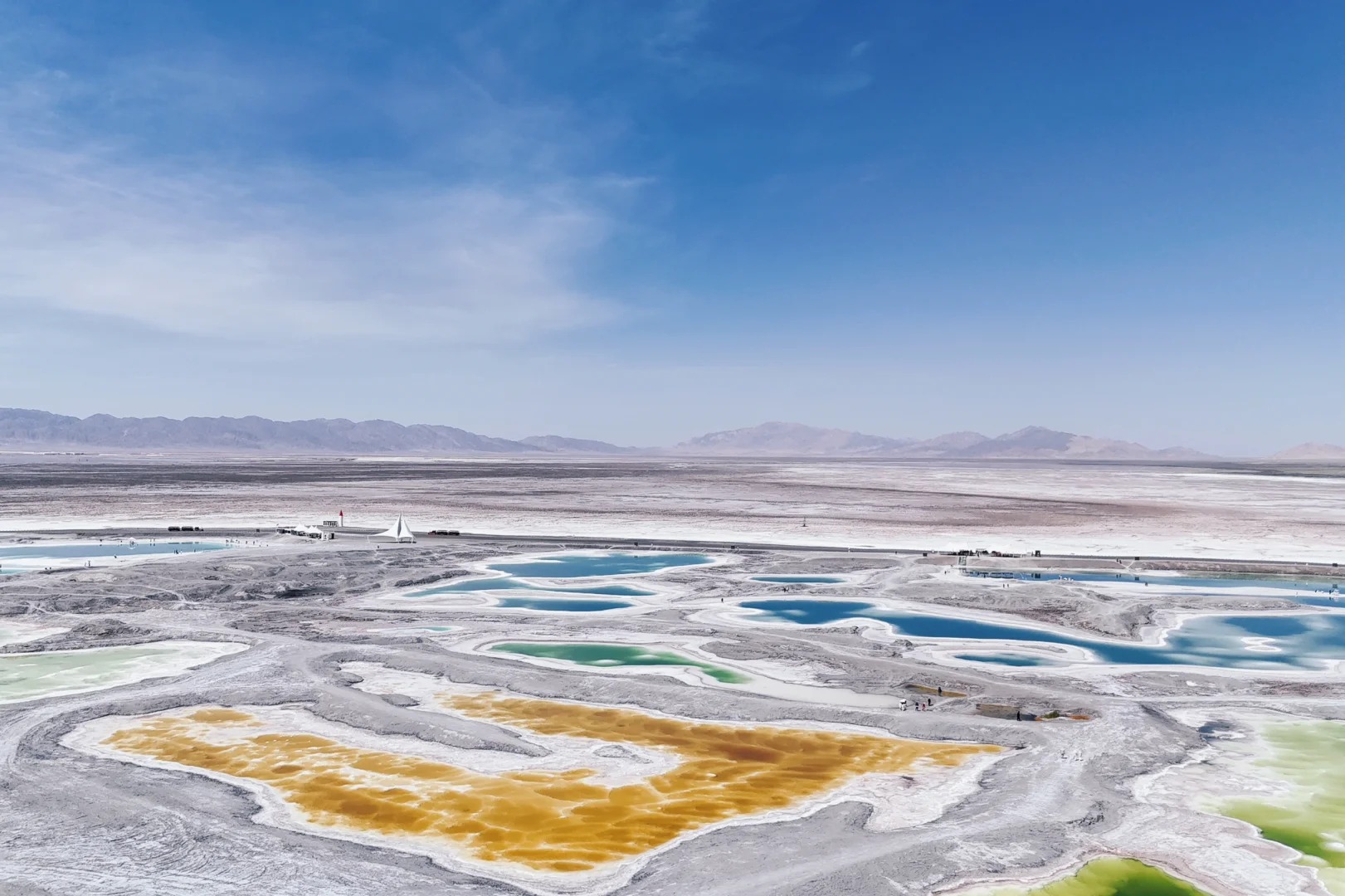 这里常年盐晶覆滩
