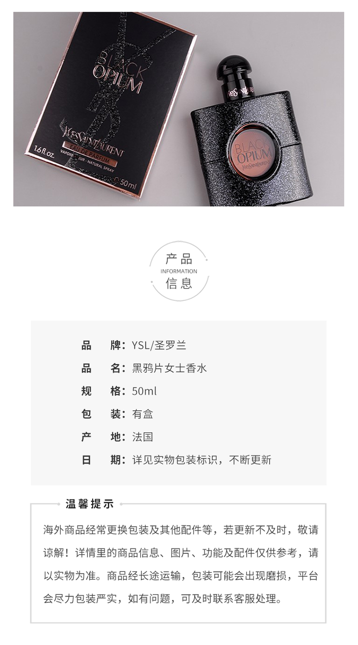 YSL 黑鸦片香水 圣罗兰 黑色鸦片经典版浓香水 浓烈性感 斩男香 送香水礼品袋【CDF】