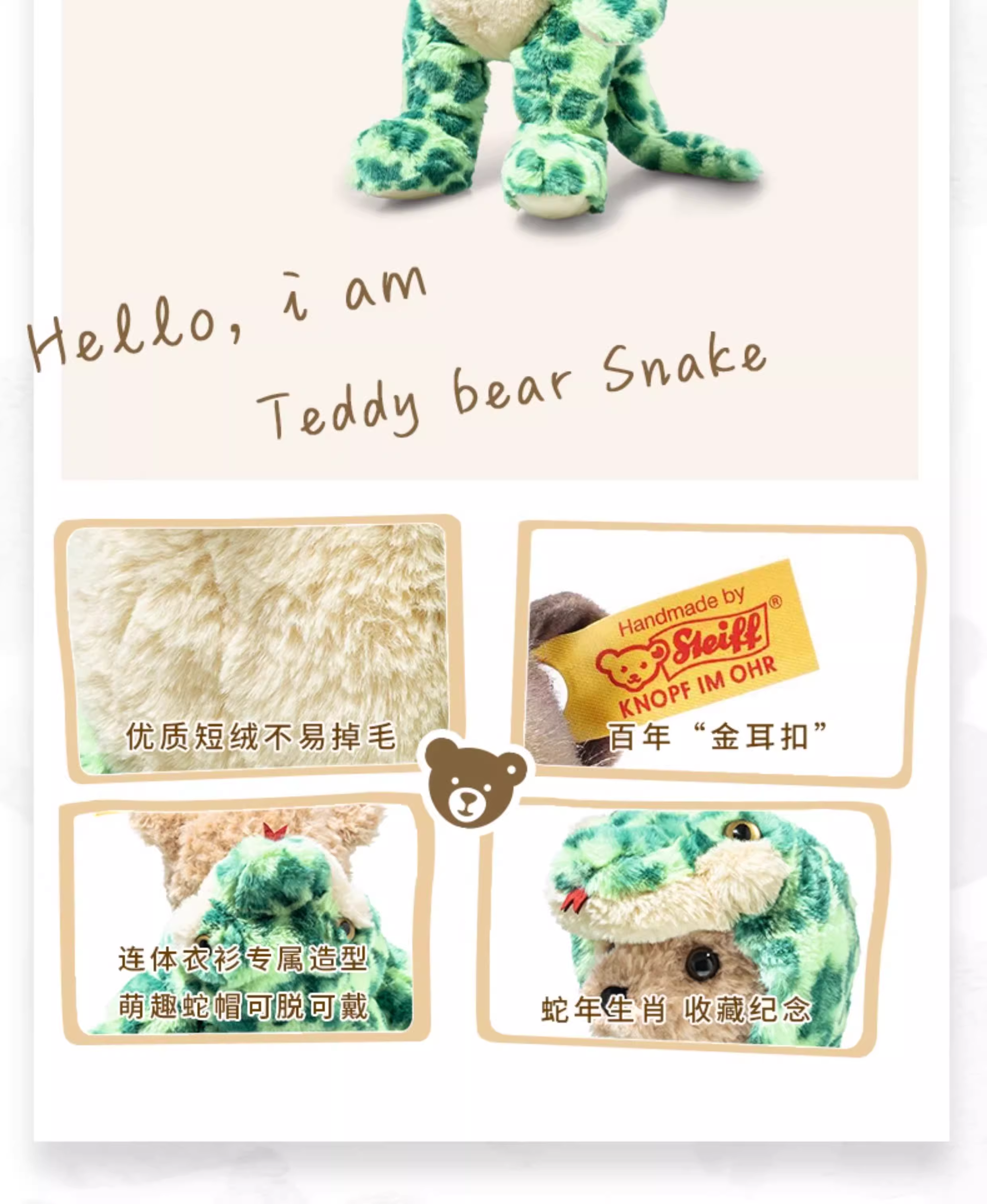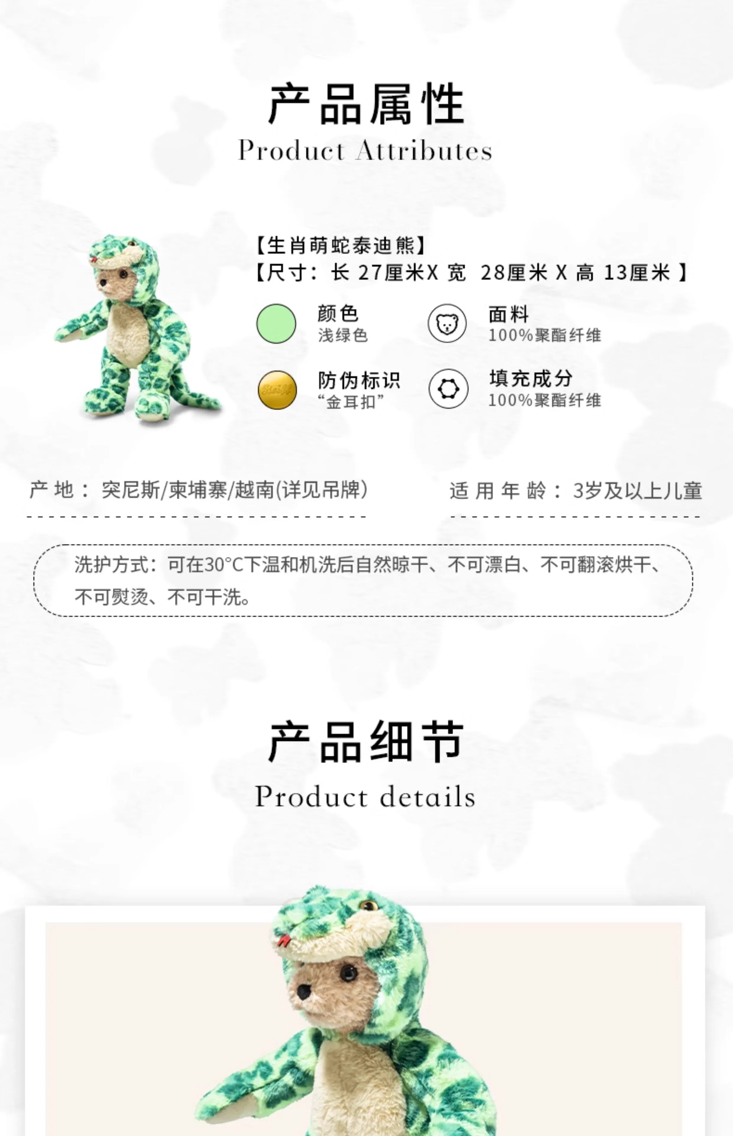 Steiff 生肖萌蛇泰迪熊(27厘米)STEC113765