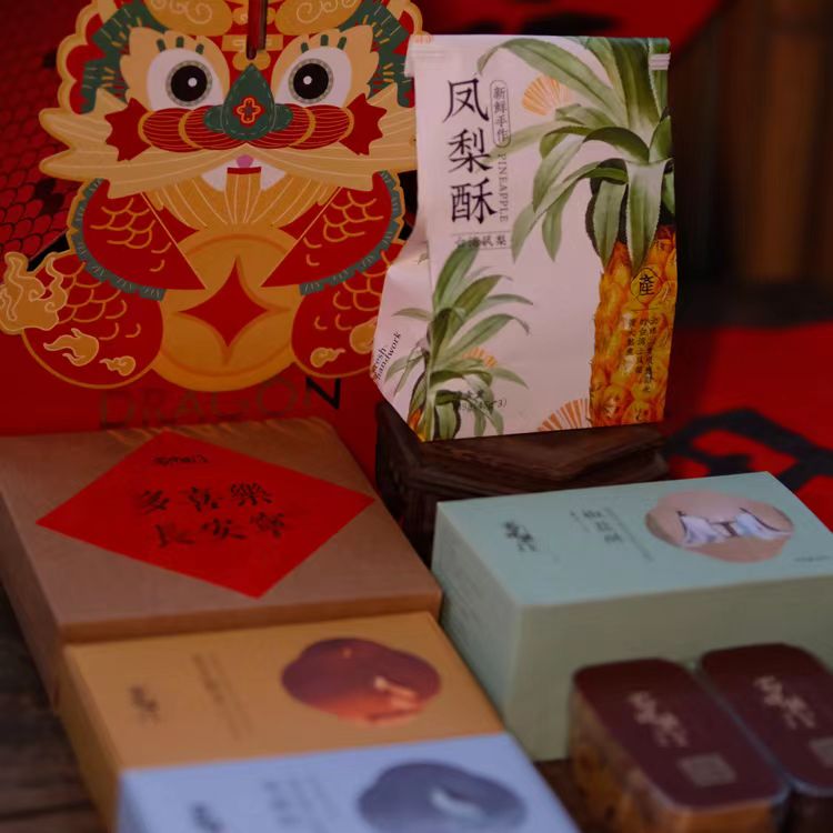 龙行大运礼盒A套装(凤梨酥1袋3枚装,火腿酥1盒4枚装,可可杏仁饼干1盒150g,蔓越莓饼干1盒150g,绿豆糕1盒4枚装,桃片糕1盒200克,芝麻糕核桃味/椒盐味各1盒200克,共2盒)