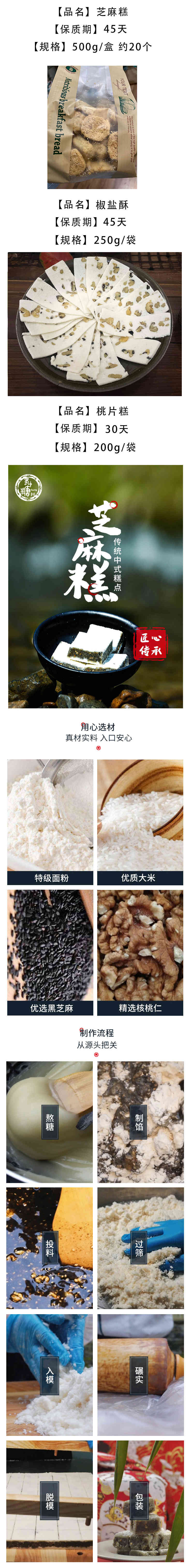 【中式糕点组合 | 芝麻糕&椒盐酥&桃片糕】甜度适中 几十道工序 纯手工制作