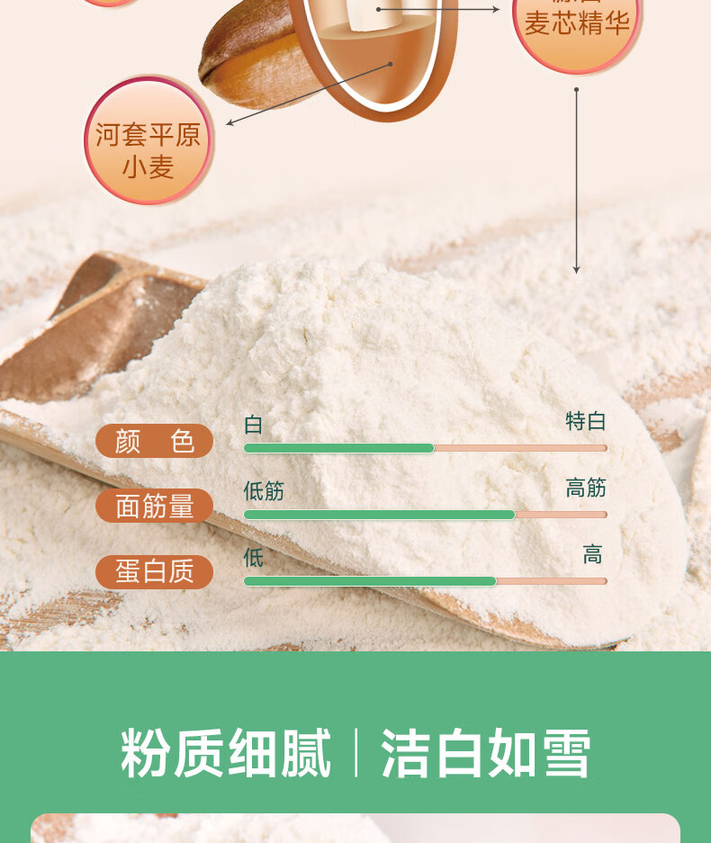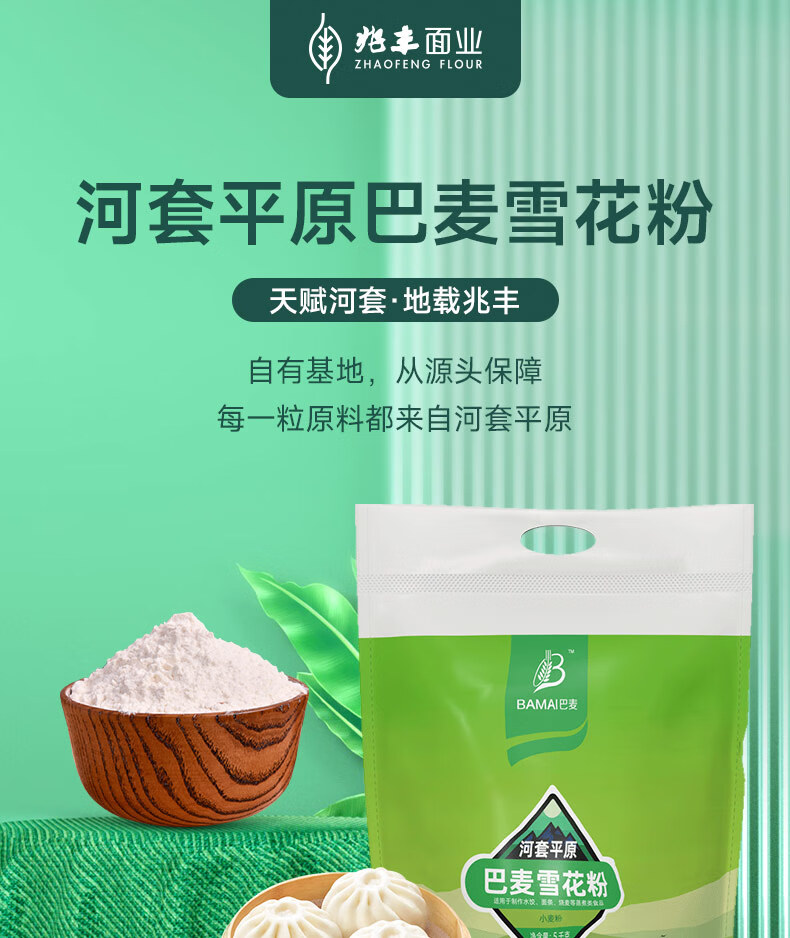兆丰内蒙河套平原雪花粉麦芯粉无钠包子馒头饺子面条烙饼面粉 雪花粉5kg(商超同款)