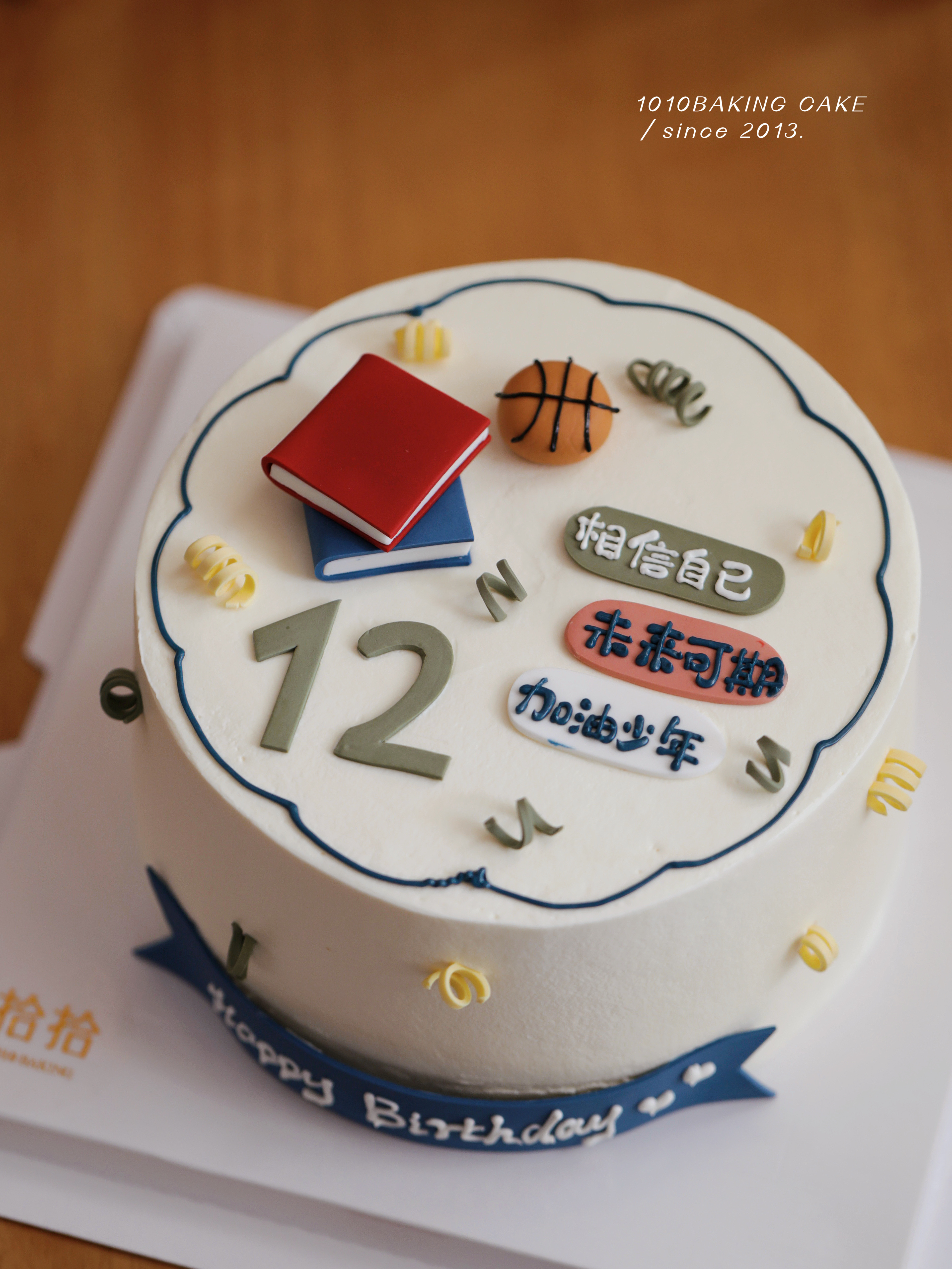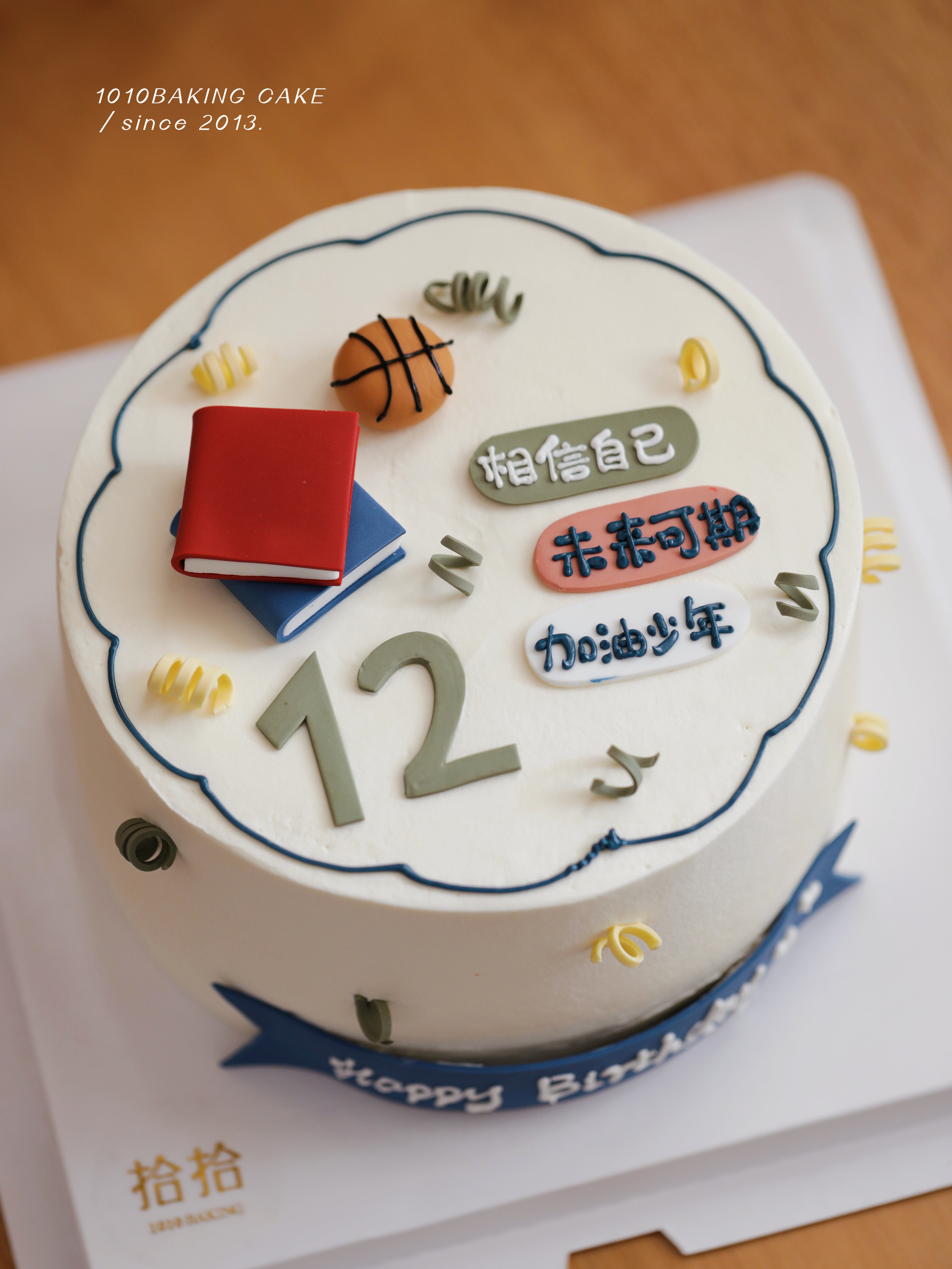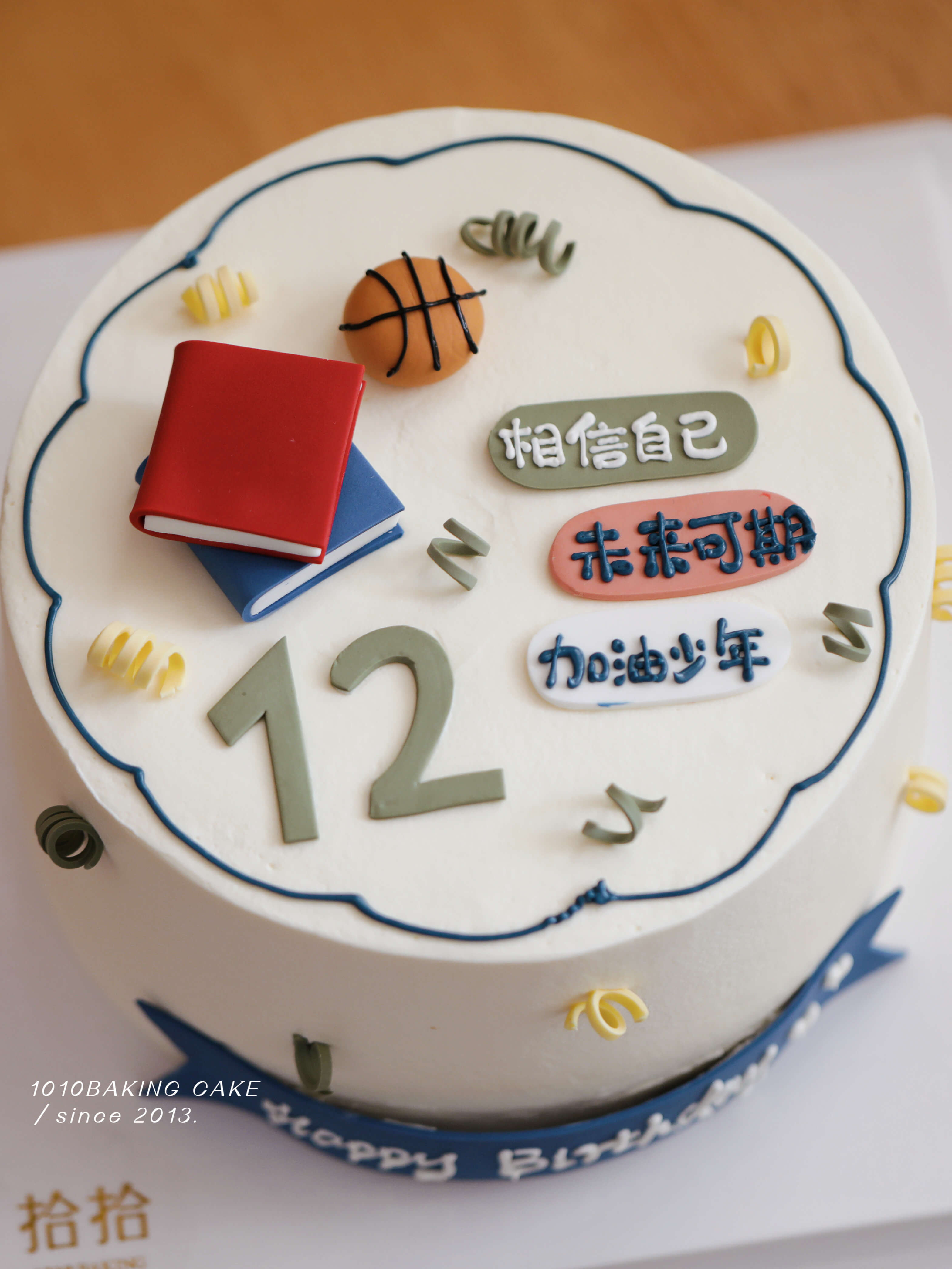 「少年加油·相信自己」岁数可改·书本学习·翻糖巧克力·100%动物奶油(附图6寸·提前3天预订)