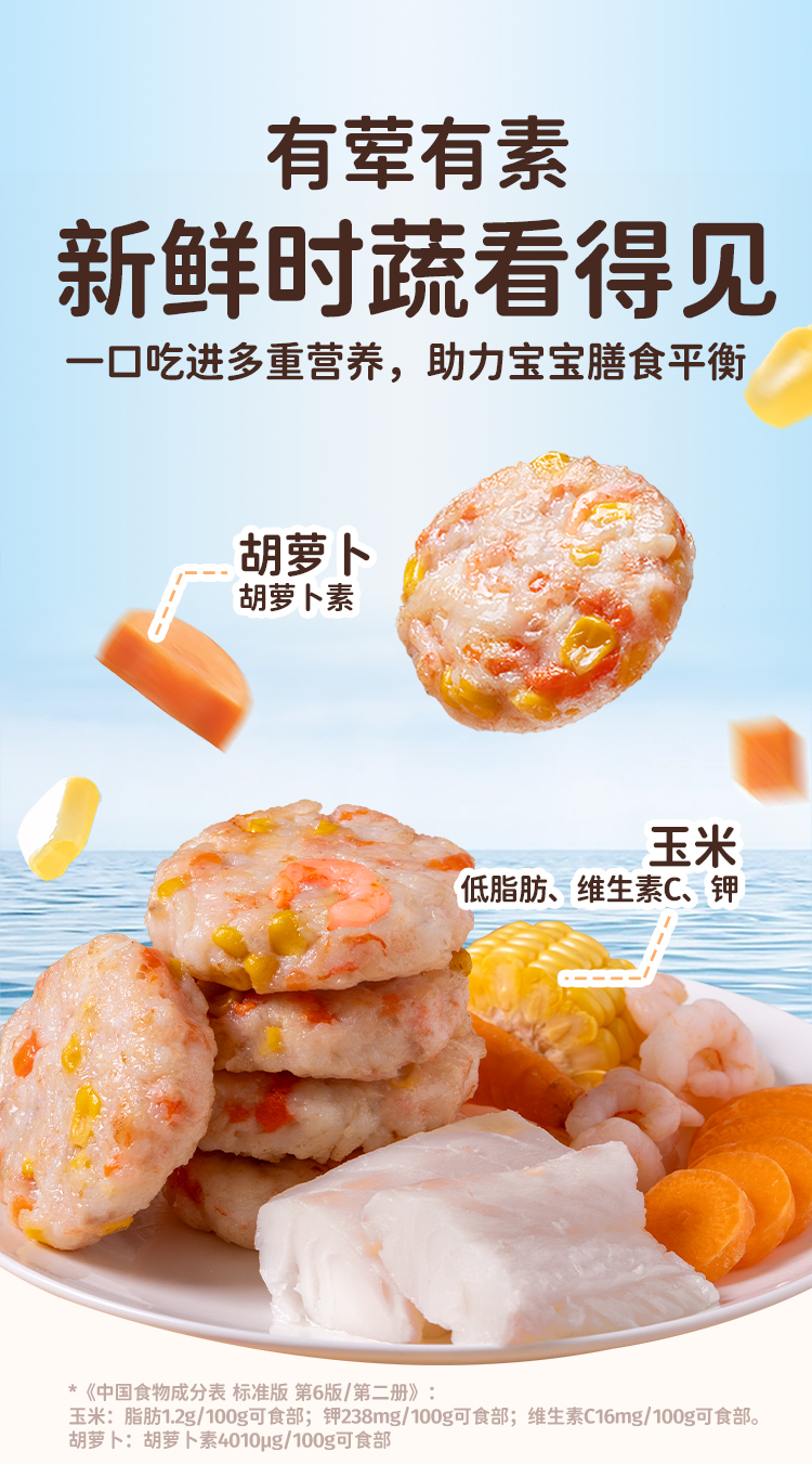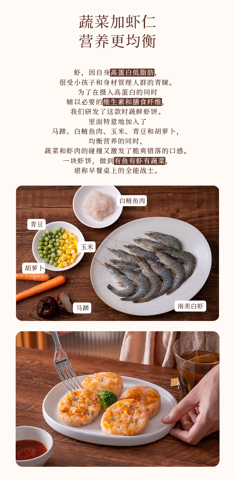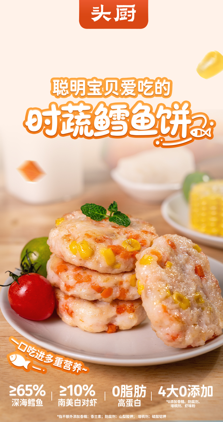 头厨|时蔬鲜虾饼 一片约5.5只南美白虾 低脂高营养 搭配丰富鲜蔬 营养均衡