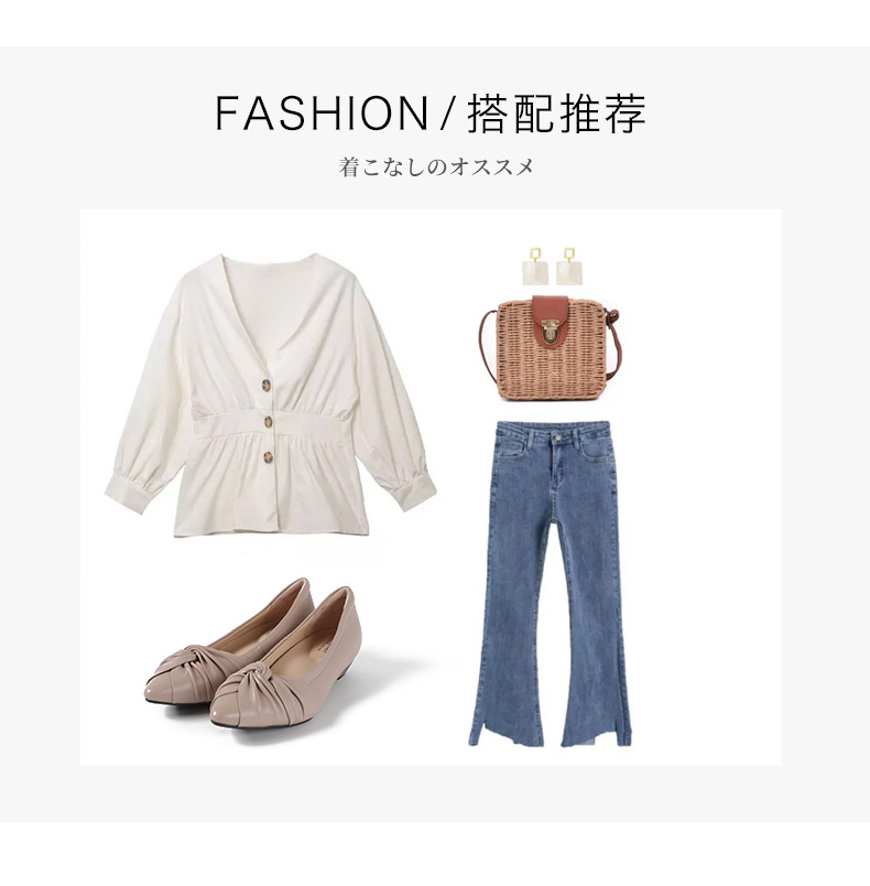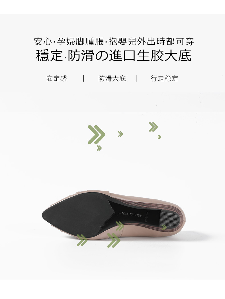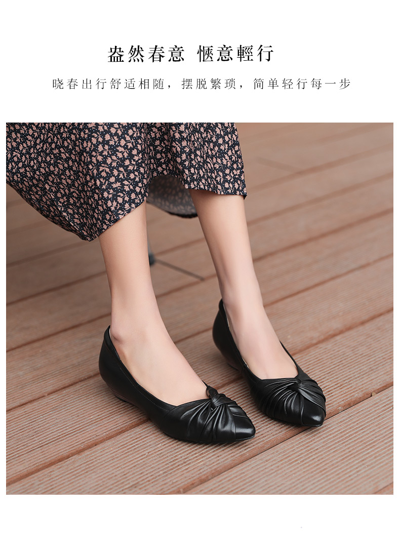 安启美奈春款尖头粗跟羊皮蝴蝶结浅口单鞋通勤高跟鞋52126