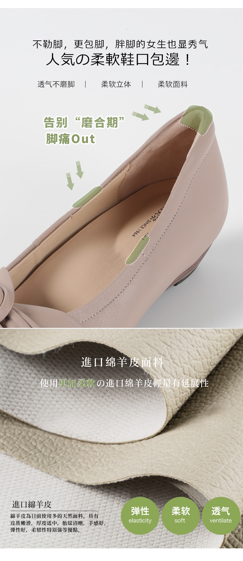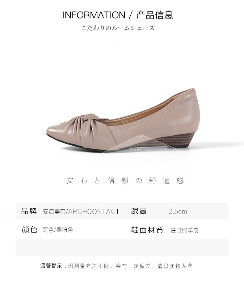 ARCHCONTACT安启美奈气垫云百搭小香风羊皮浅口内增高单鞋53023