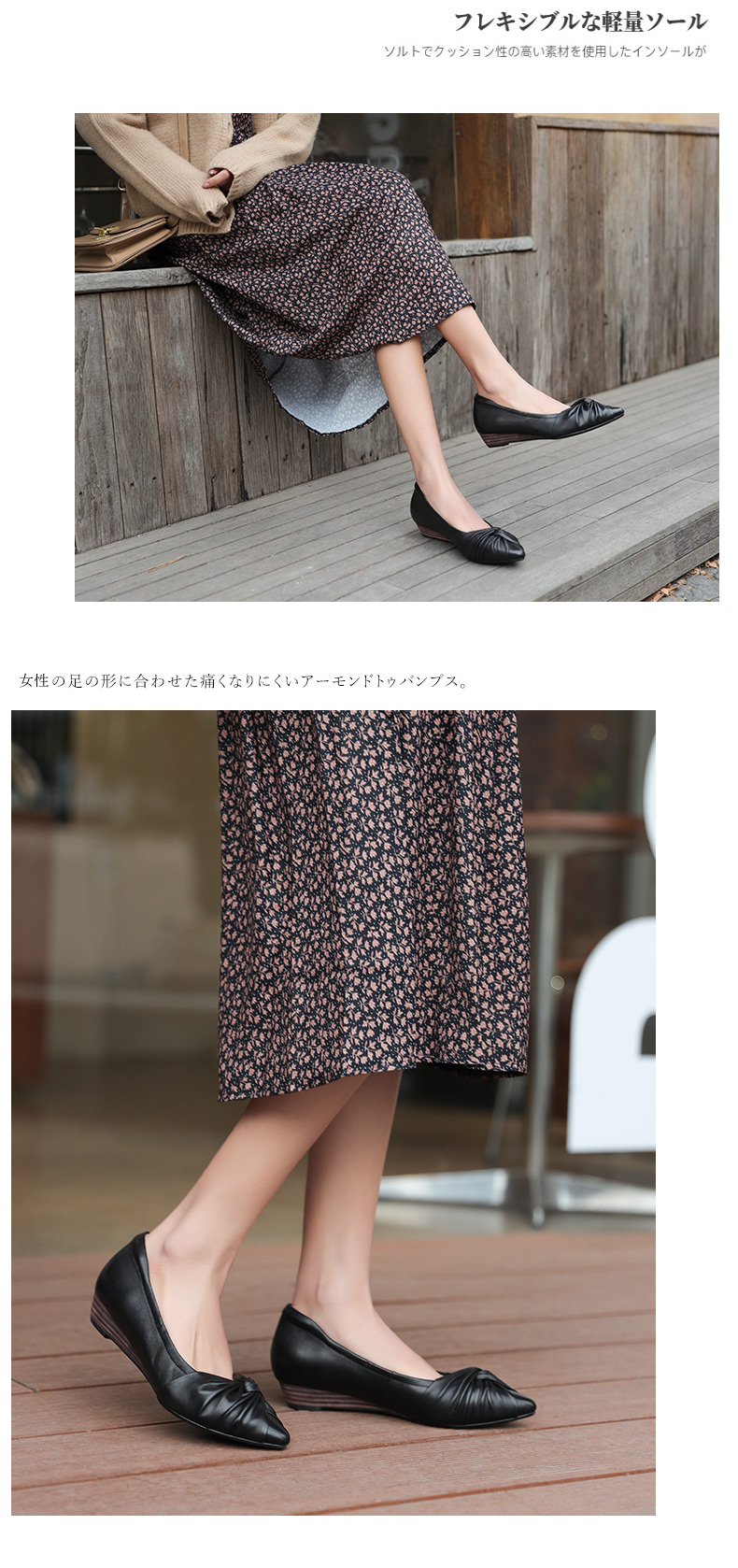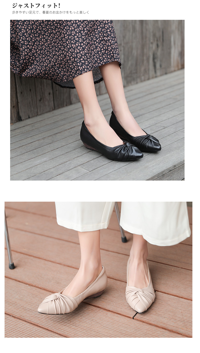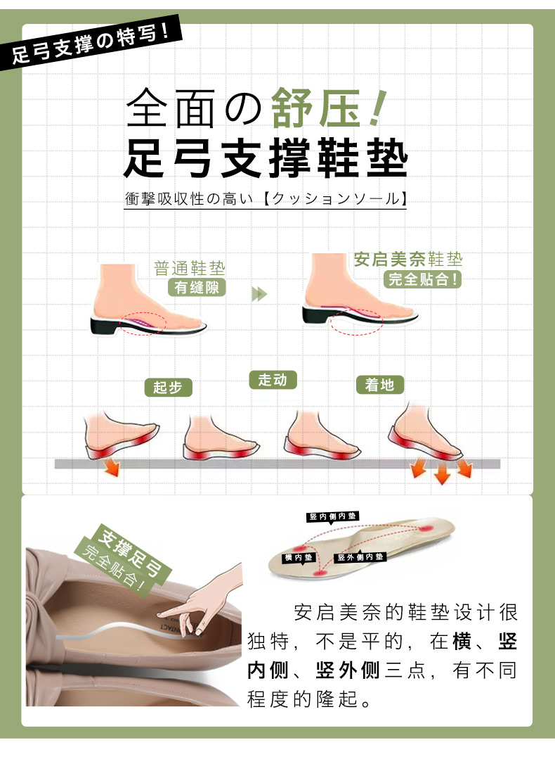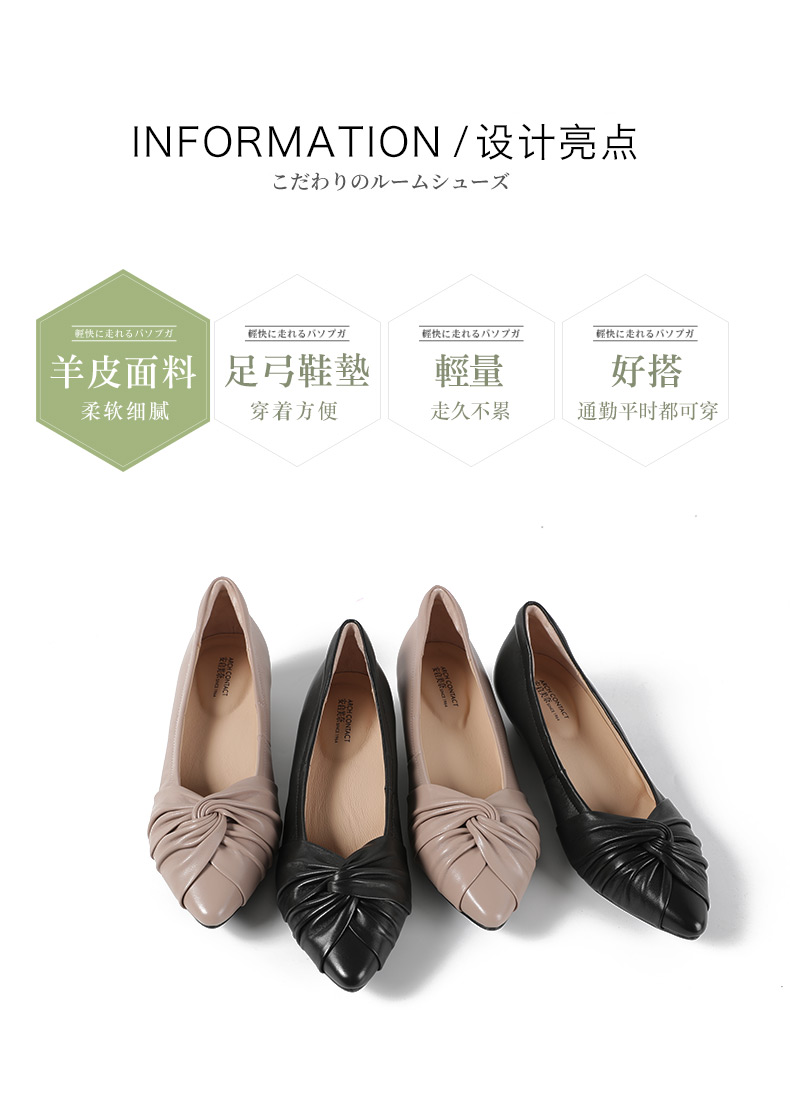 安启美奈足弓不累脚舒适单鞋女职业尖头浅口平底鞋女52727