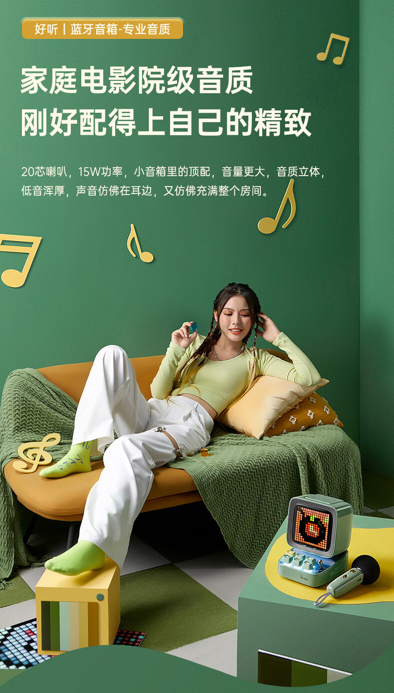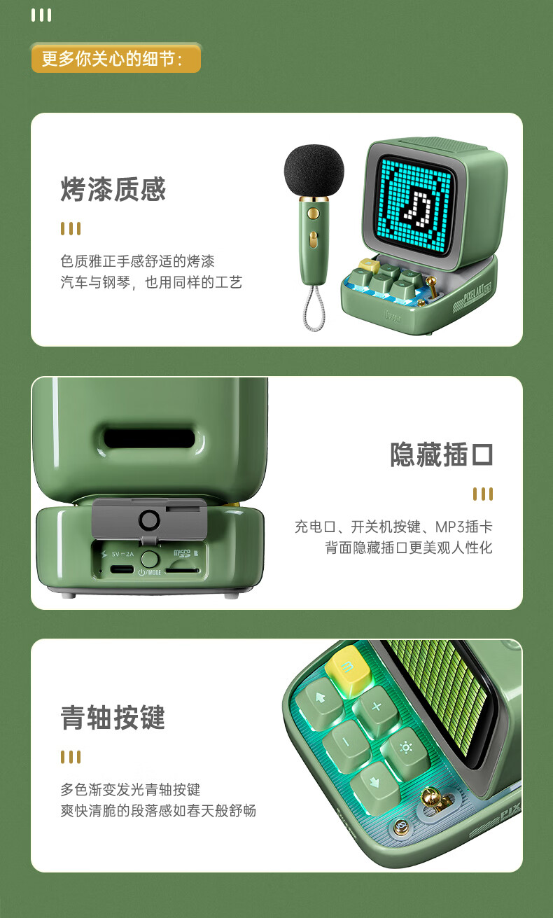 Divoom点音像素音箱蓝牙音响k歌麦克风家用户外音响便携生日礼物送礼必备