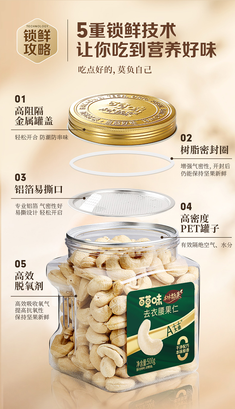 【包邮】本味甄果系列-去衣腰果仁500g(罐装) 去衣清甜 一眼可见好品质