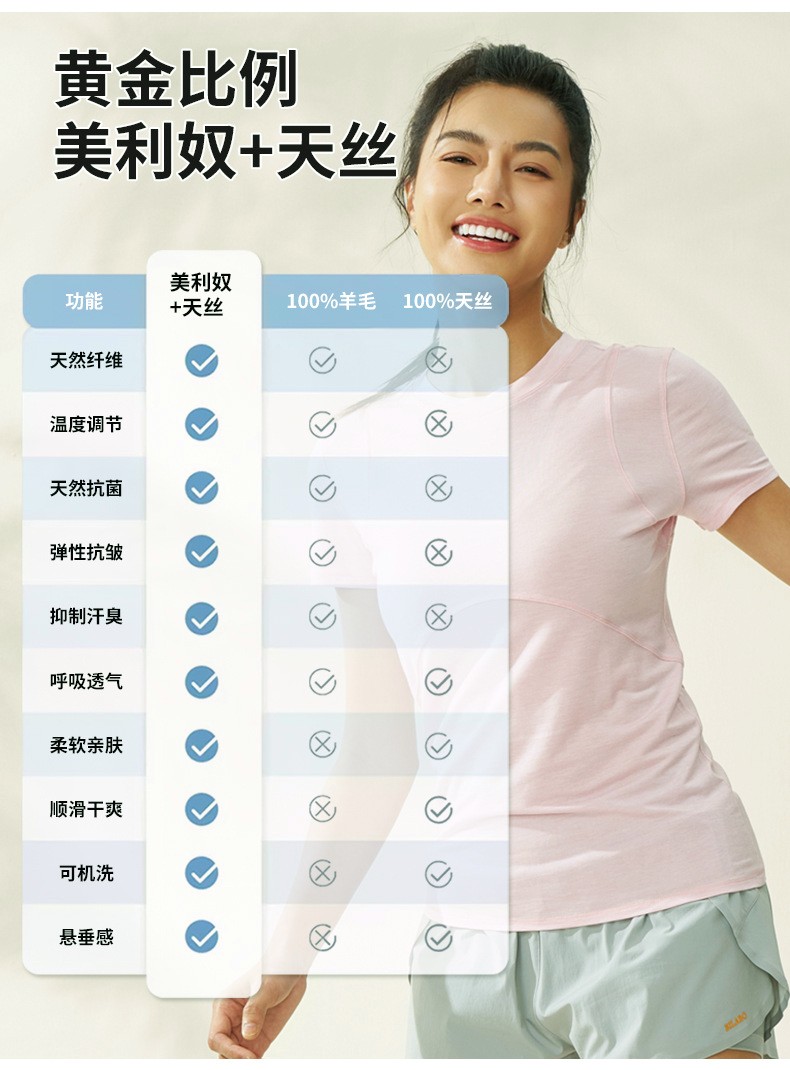 【99元到手!女士羊毛T】纳趣户外女士美丽诺羊毛速干短袖T恤莱赛尔天丝运动快干衣女款