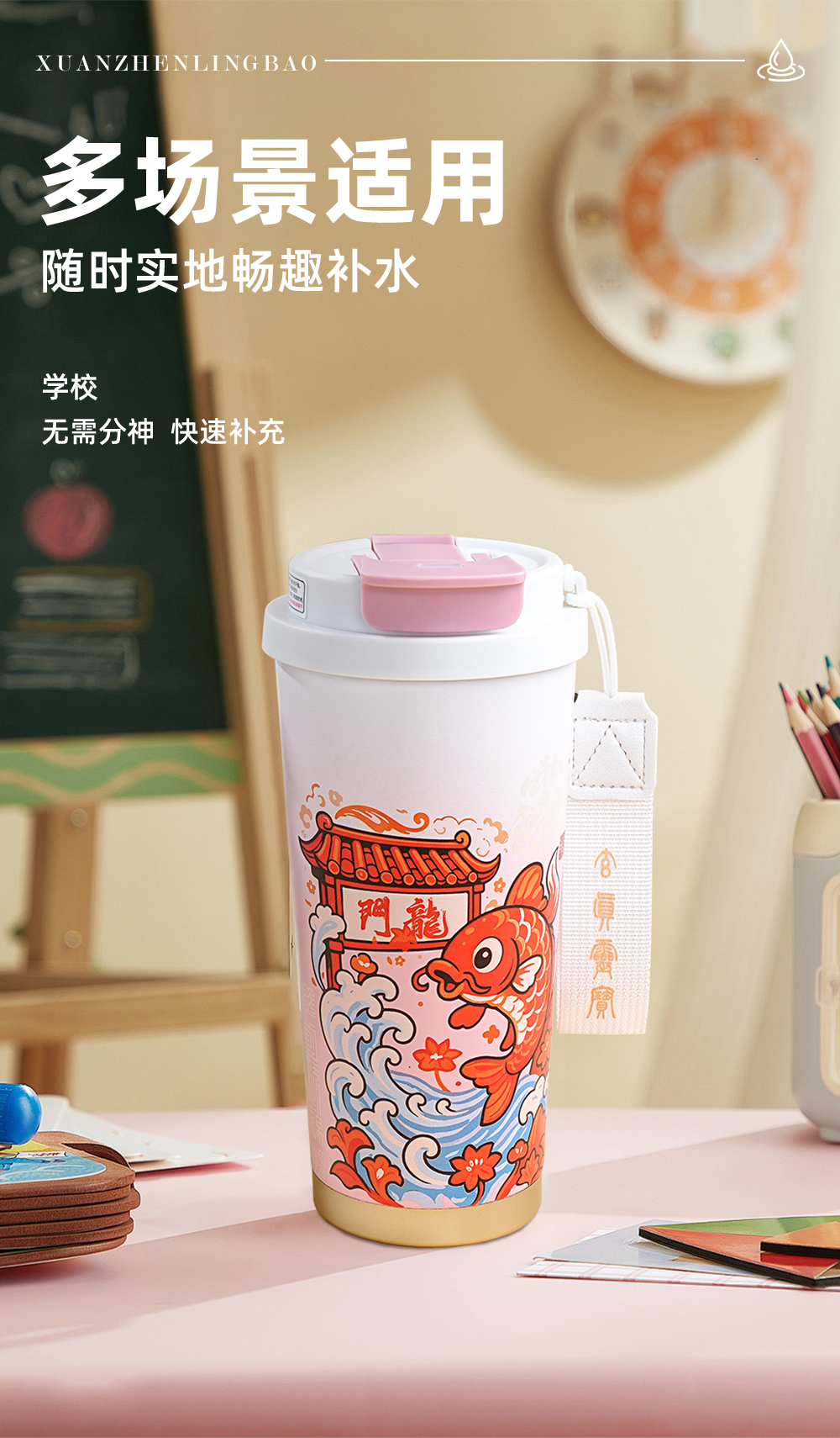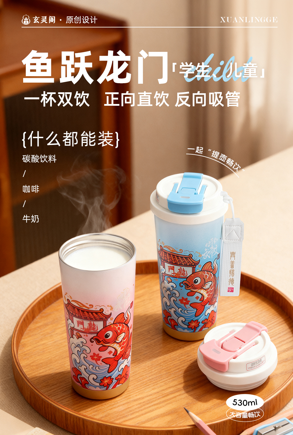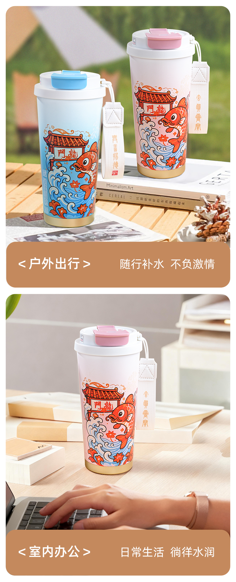 原创【鱼跃龙门】保温杯S316食品级不锈钢学生饮水杯子