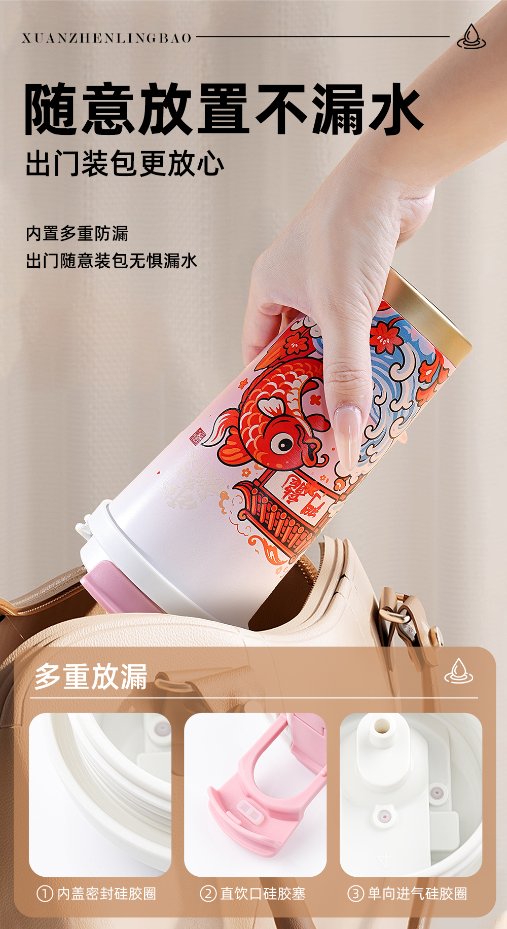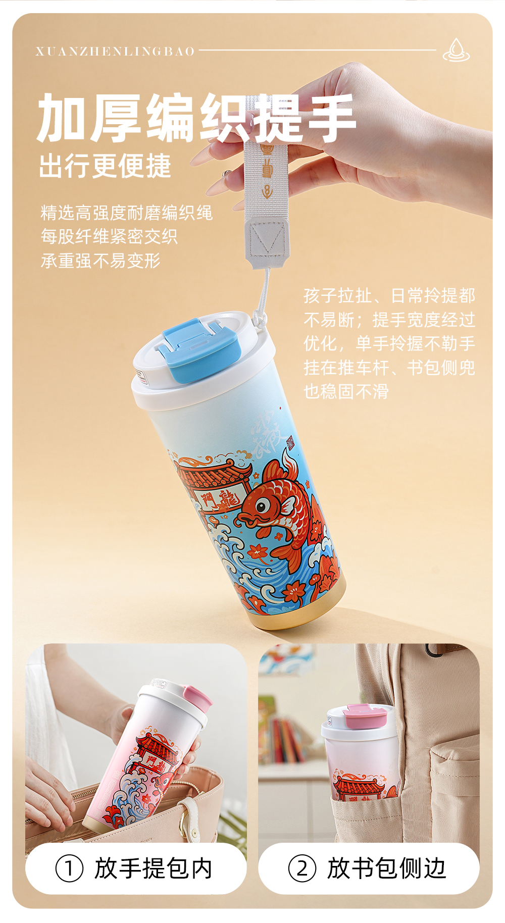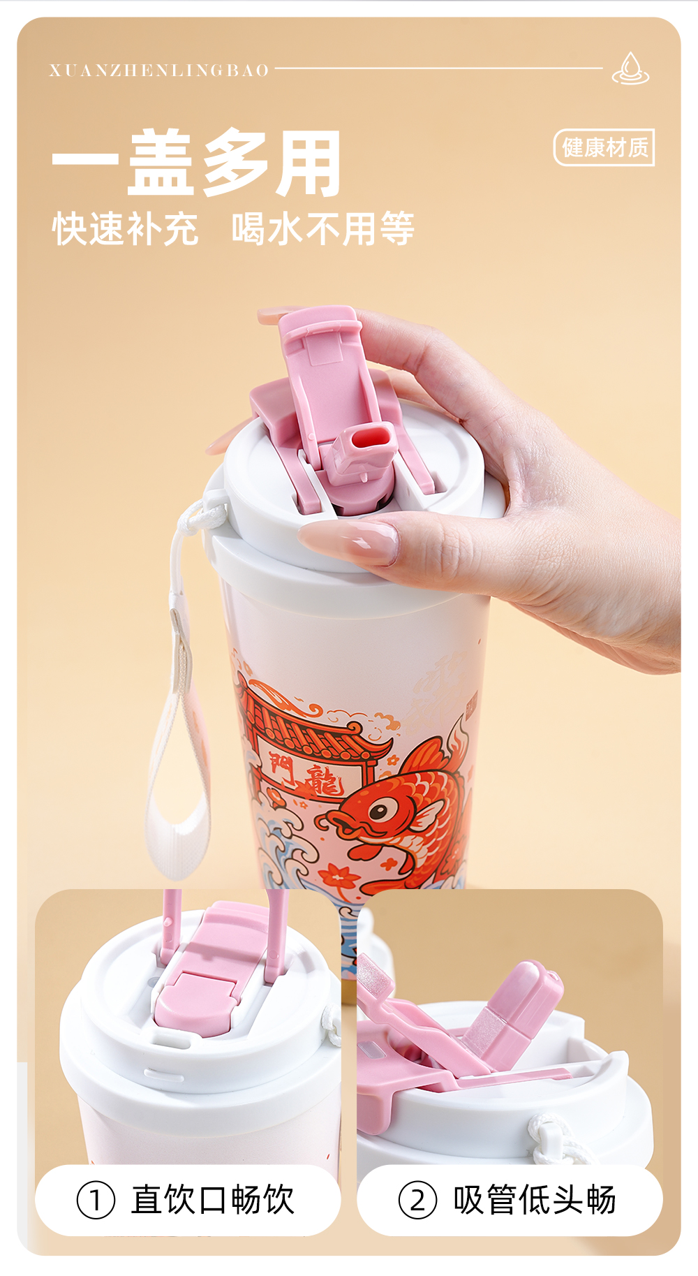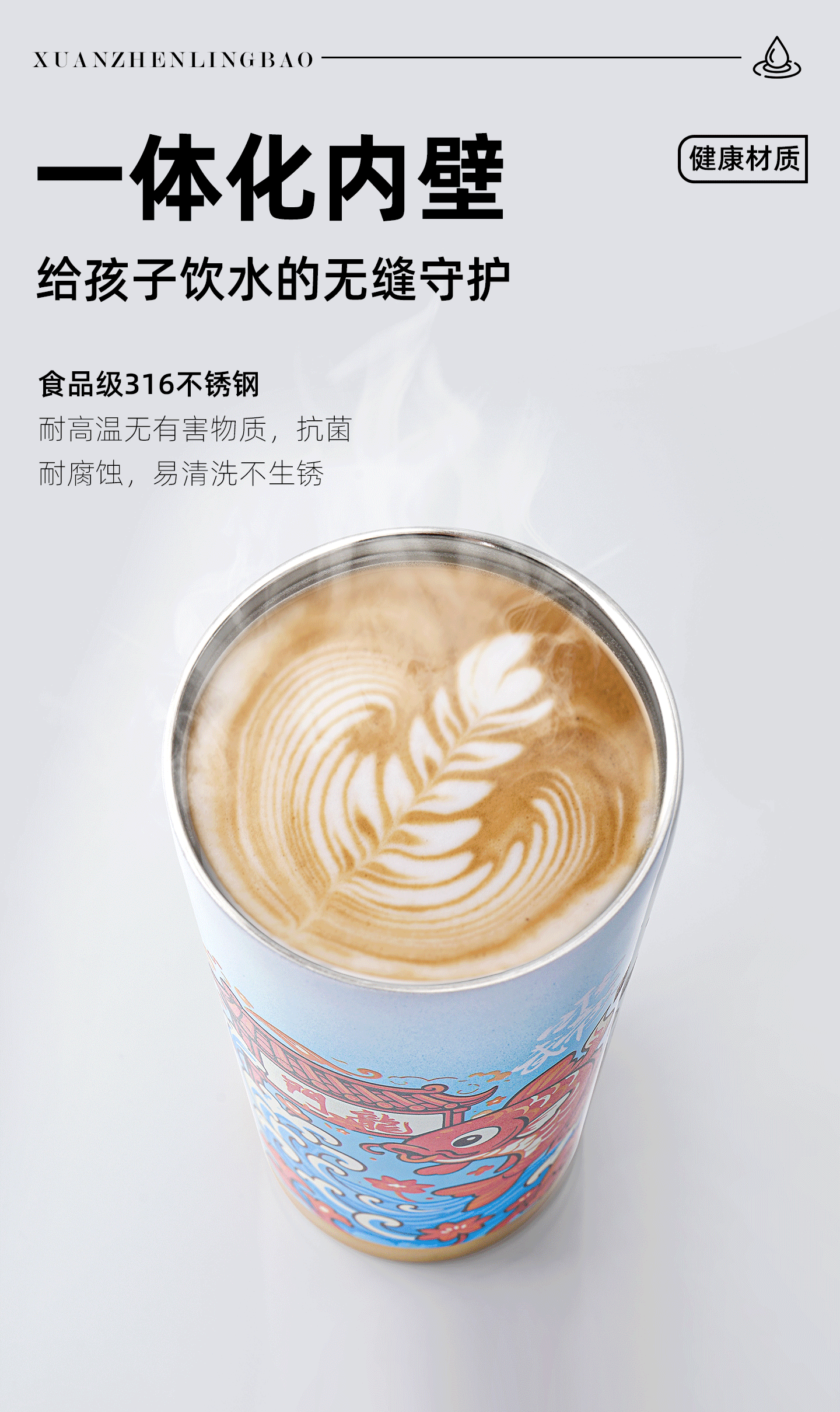 原创【鱼跃龙门】保温杯S316食品级不锈钢学生饮水杯子