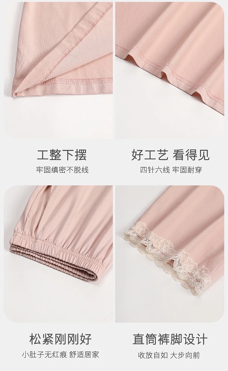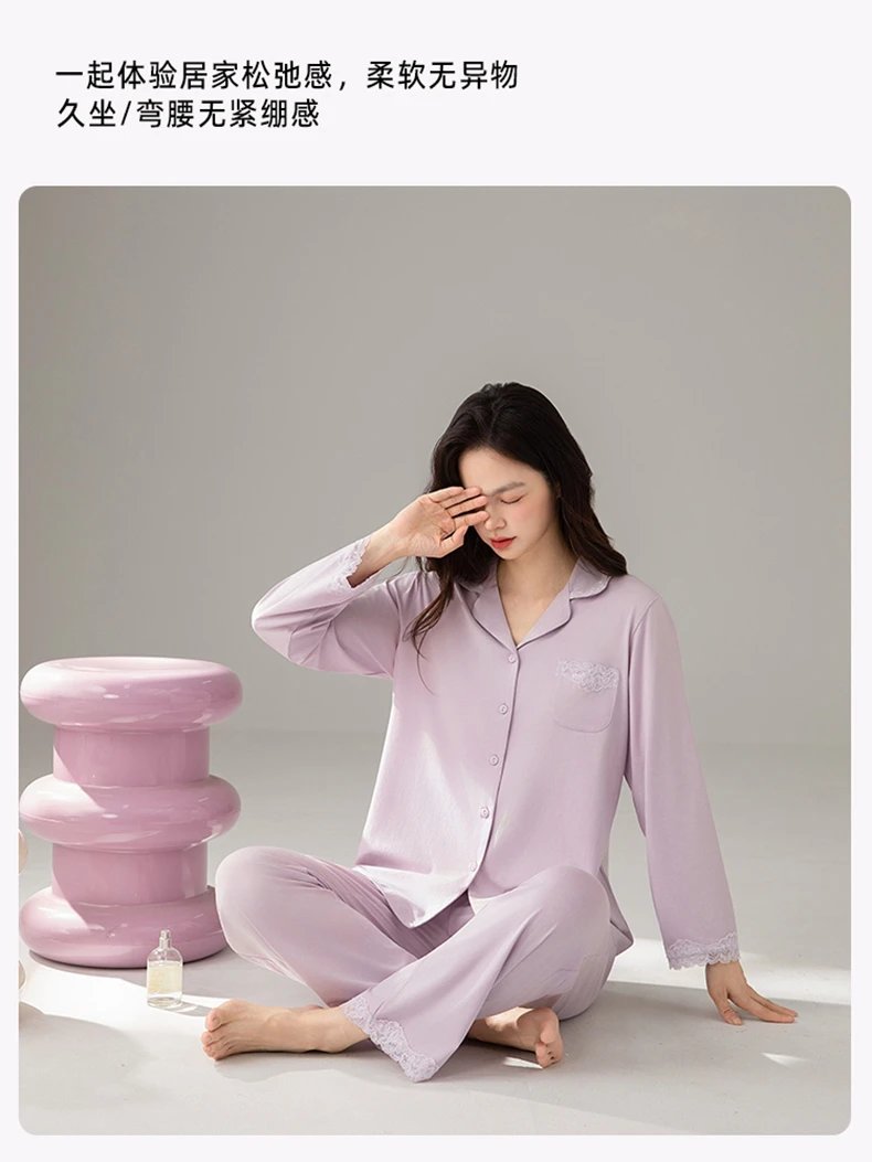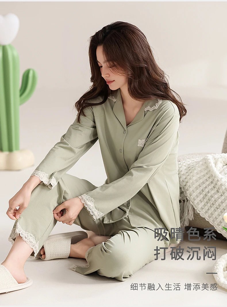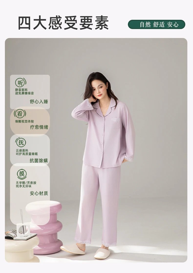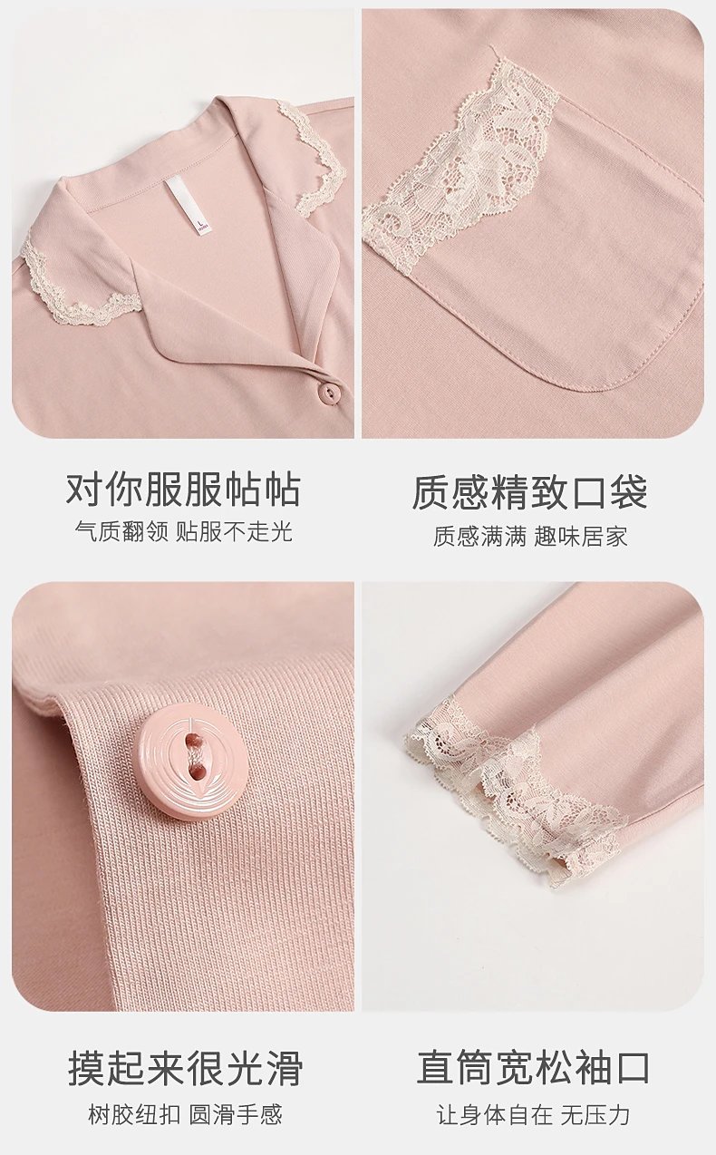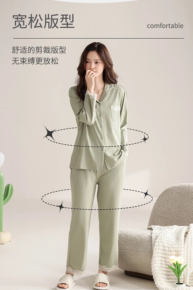 线下实体版【品质好货】 女士蕾丝软弹纯棉家居服睡衣,长袖+长裤