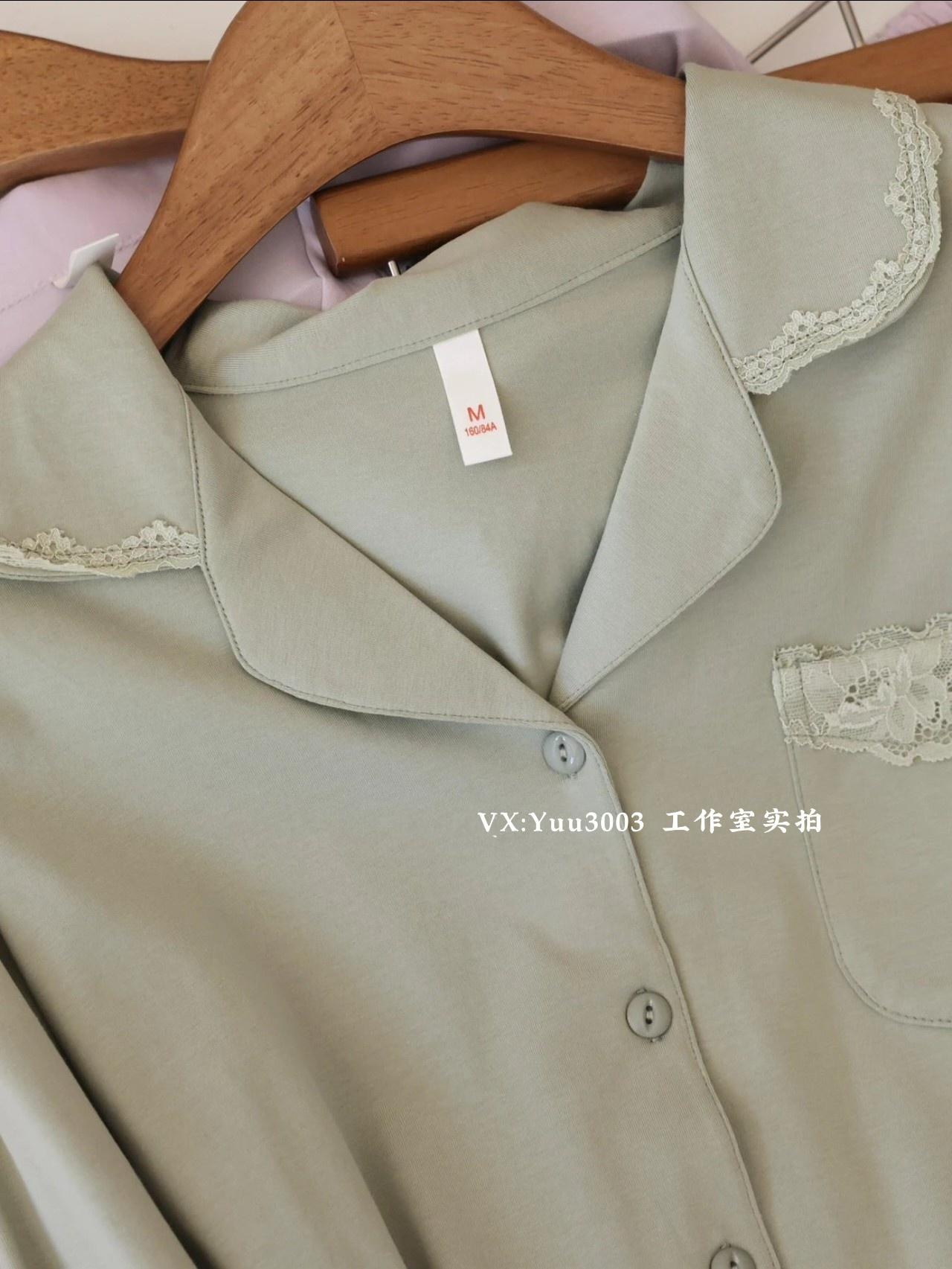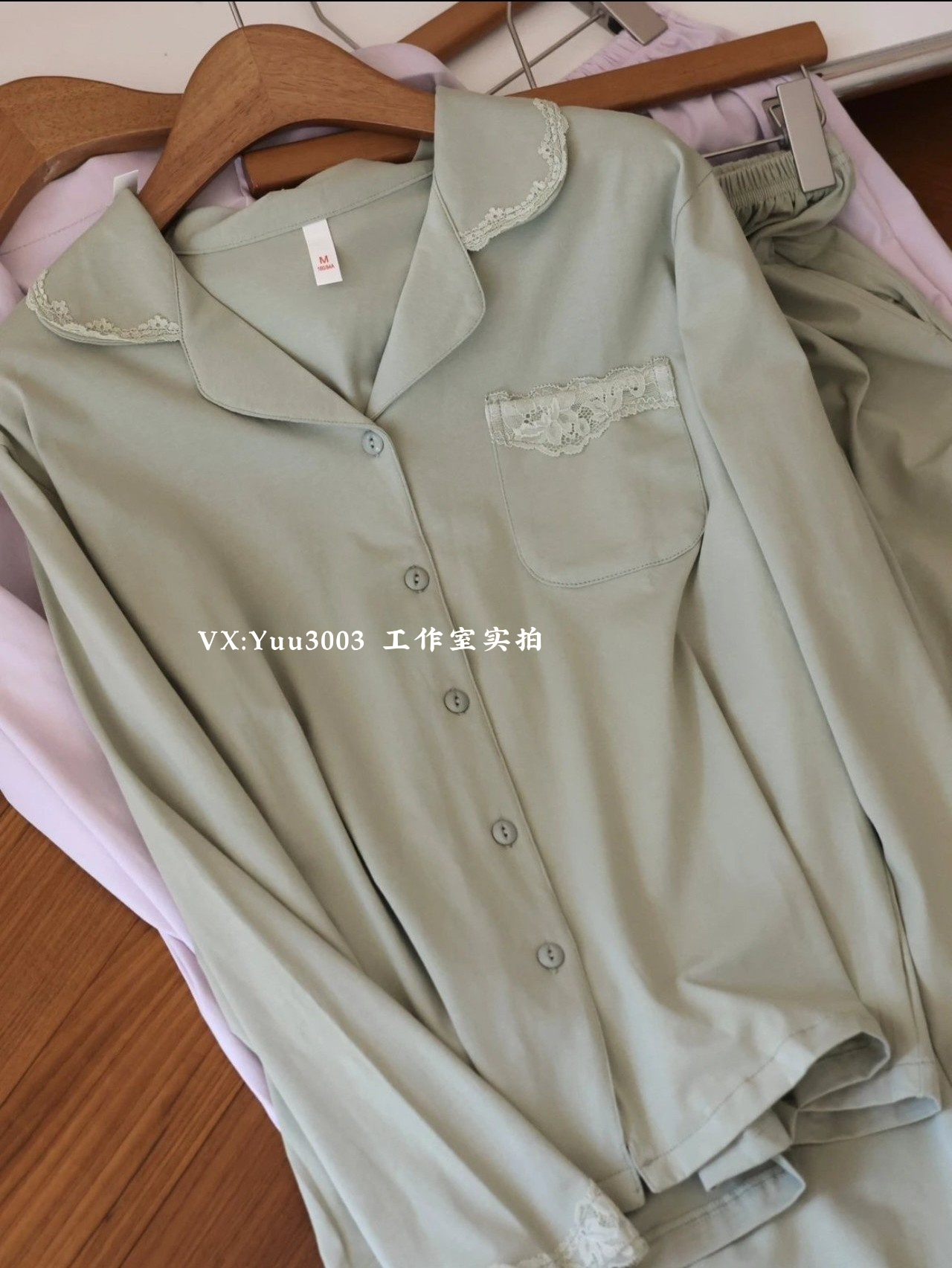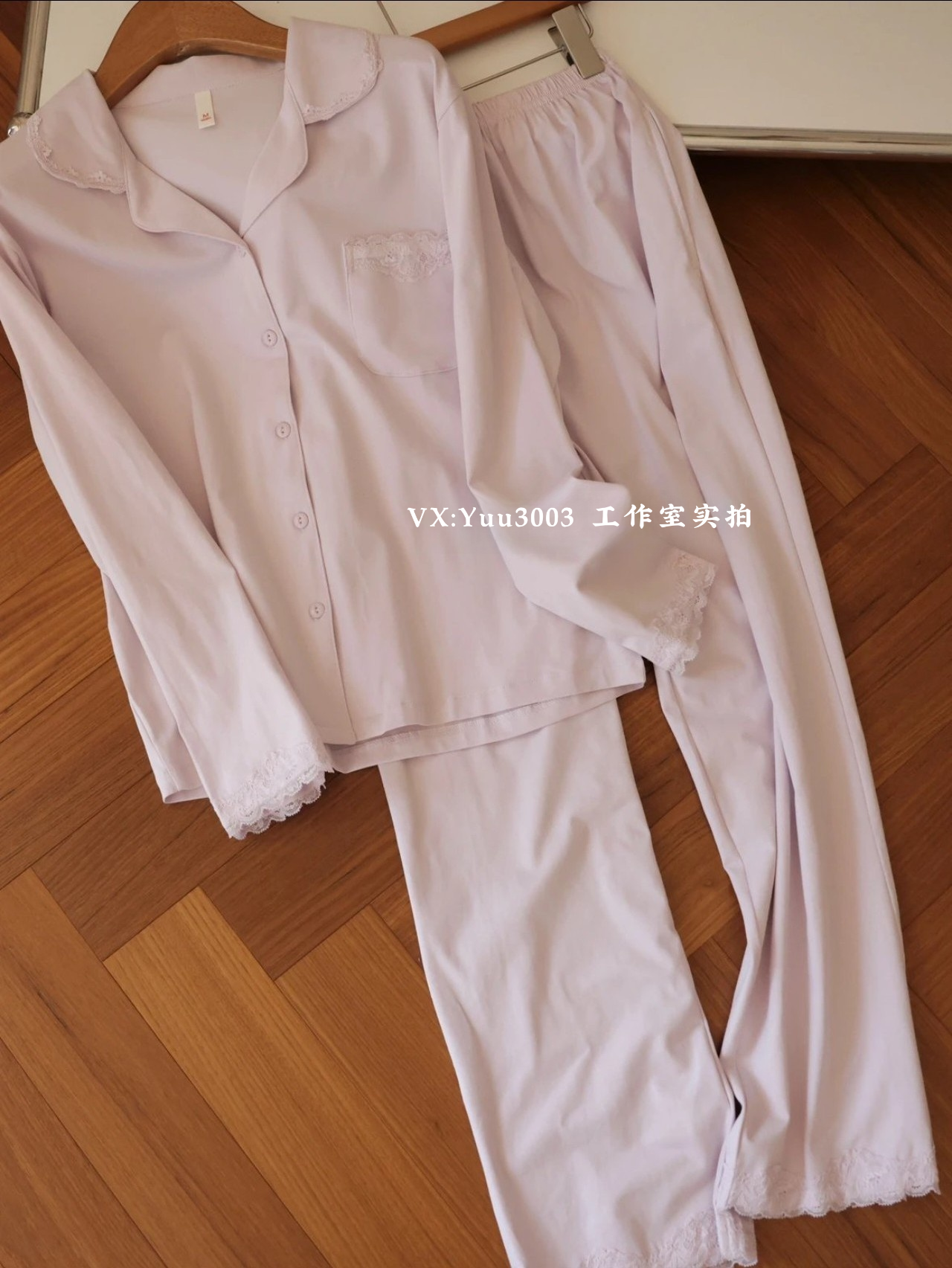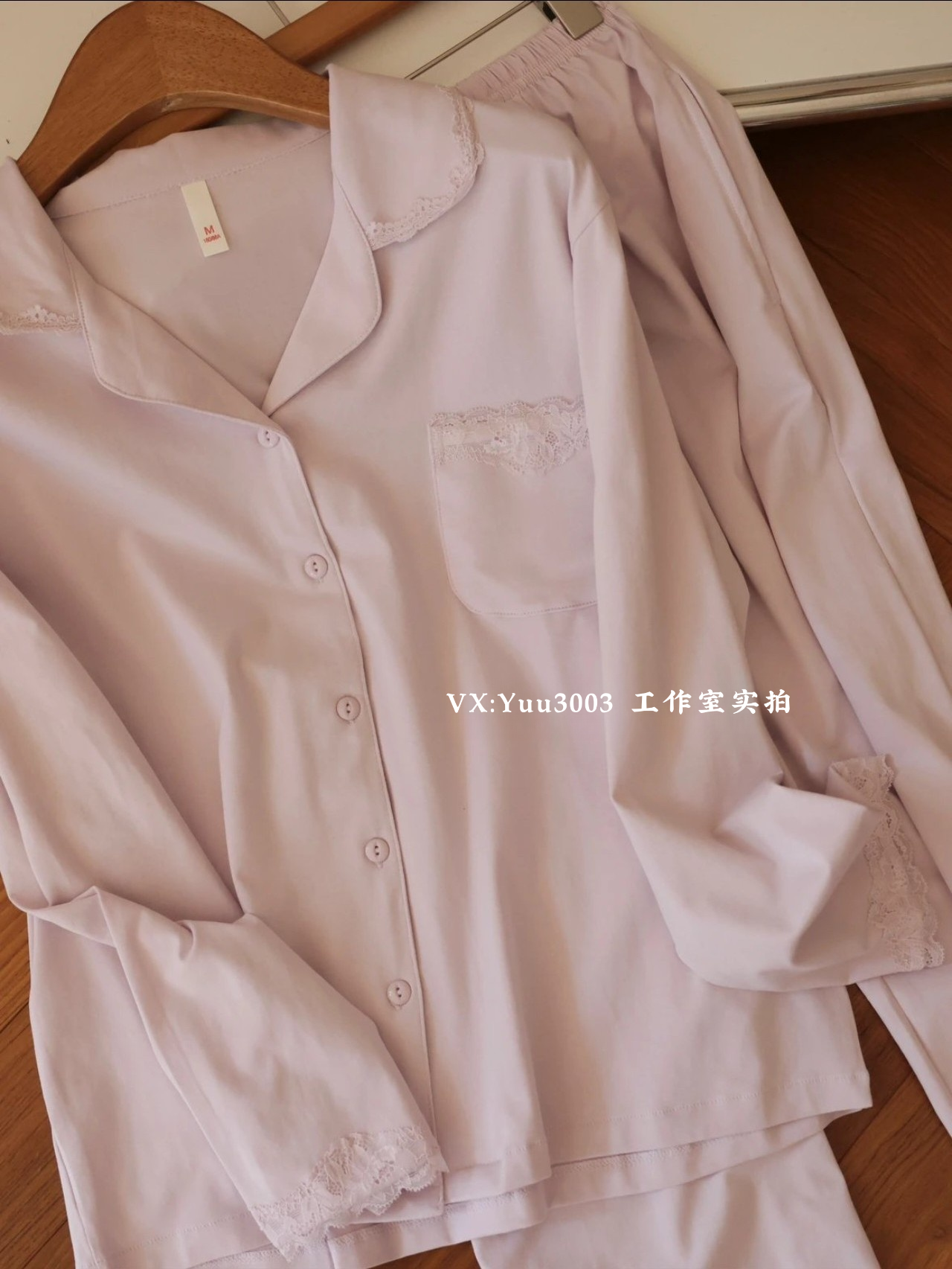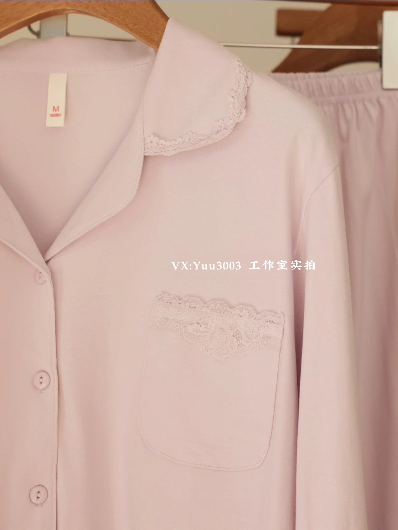 线下实体版【品质好货】 女士蕾丝软弹纯棉家居服睡衣,长袖+长裤