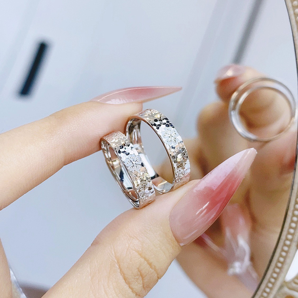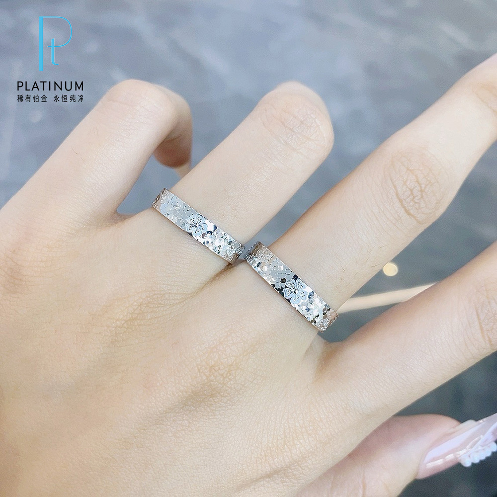 【限时8.8折】【线上铂金馆】PT950 #碎碎冰 【国际铂金协会 精品】铂金实心活口戒指碎碎冰樱花对戒情侣戒/对(BQLJ00127)预售产品下单后不退款不退货不换货不补差价)