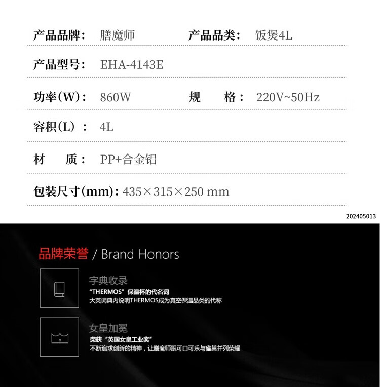 THERMOS膳魔师 EHA-4143E 智能微电脑电饭锅 奶白色860W