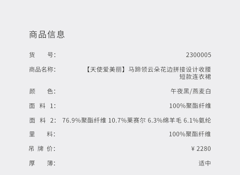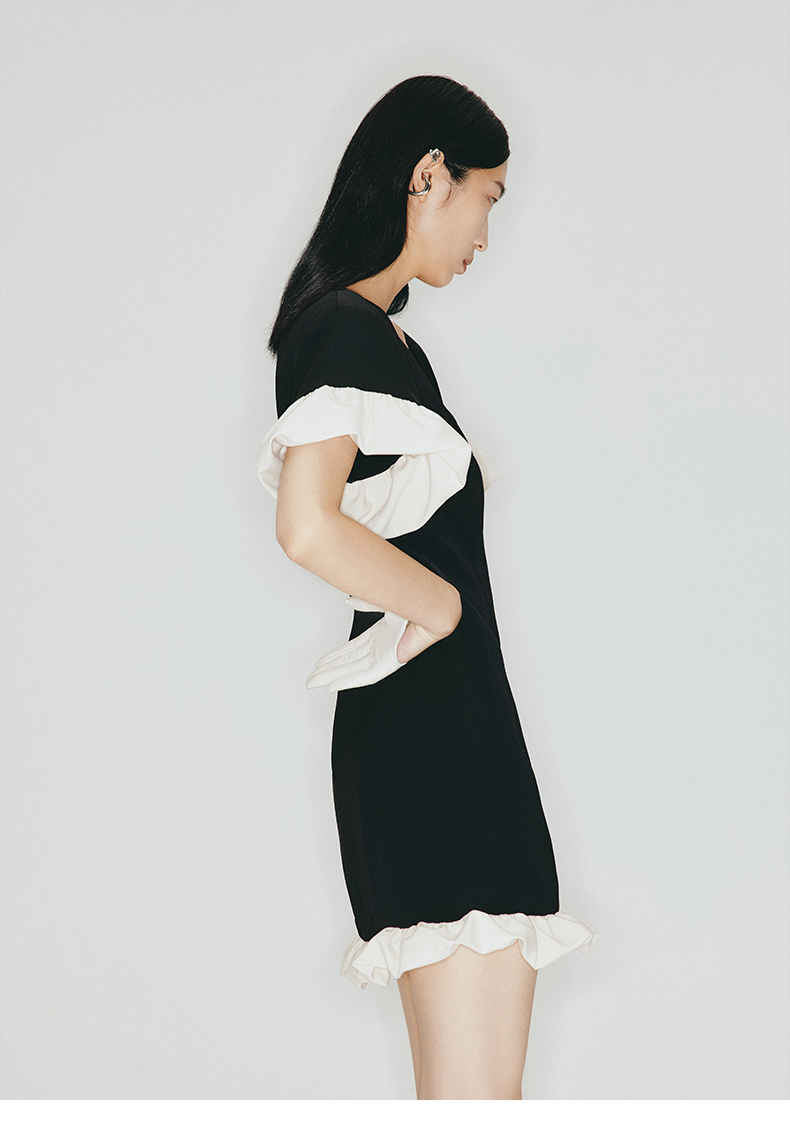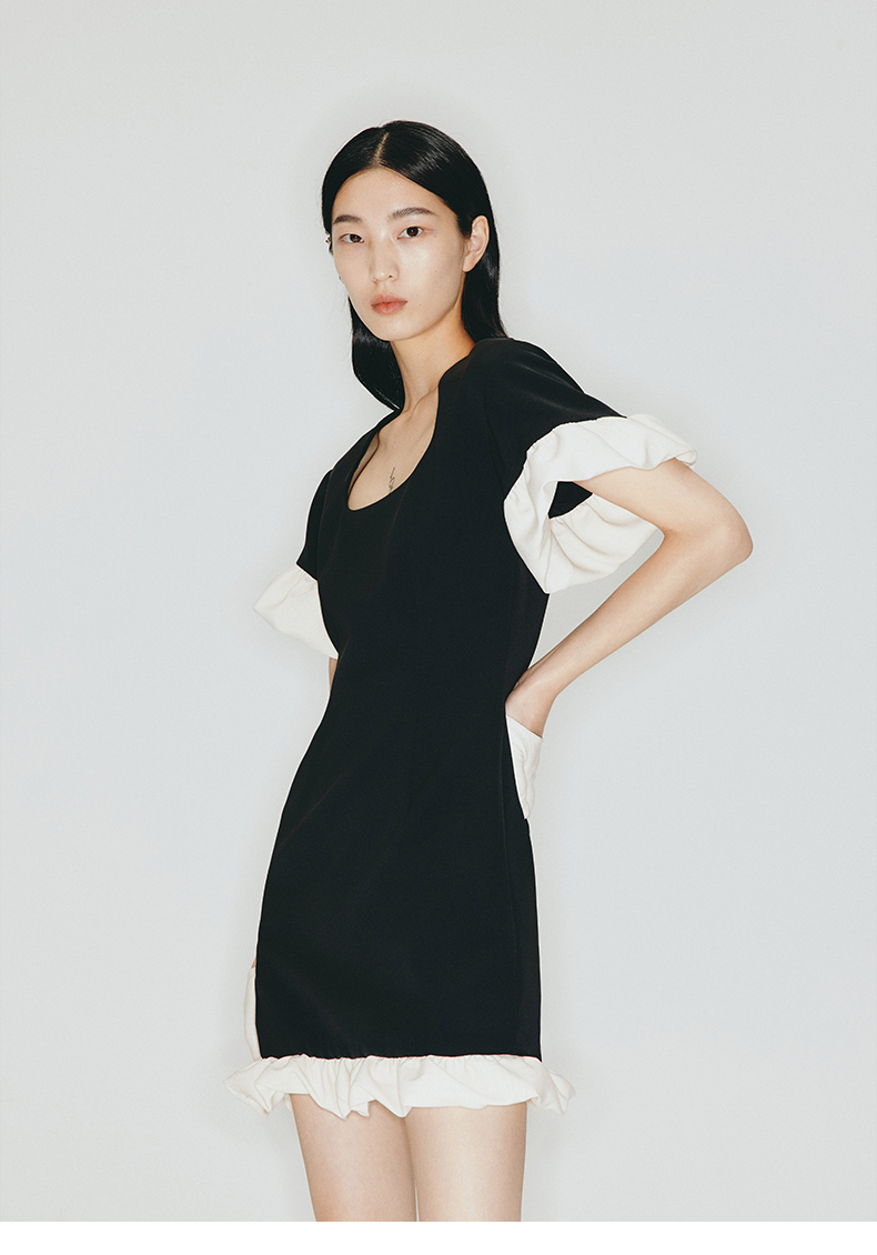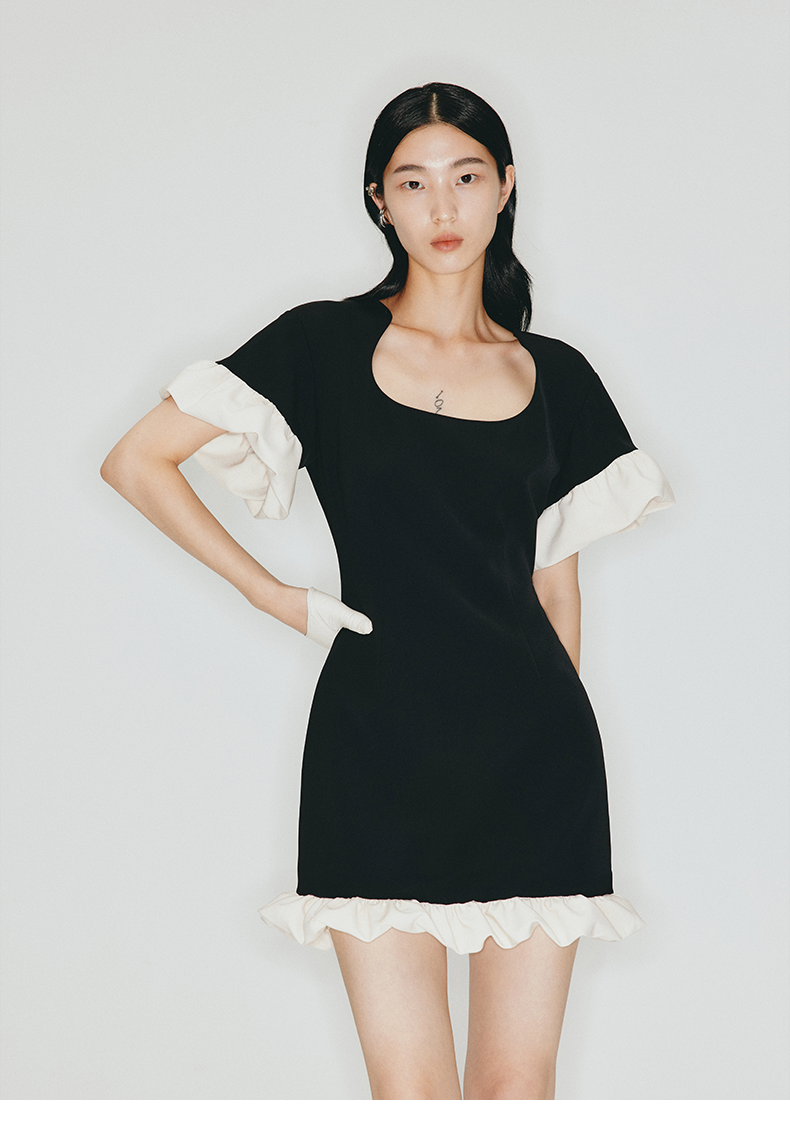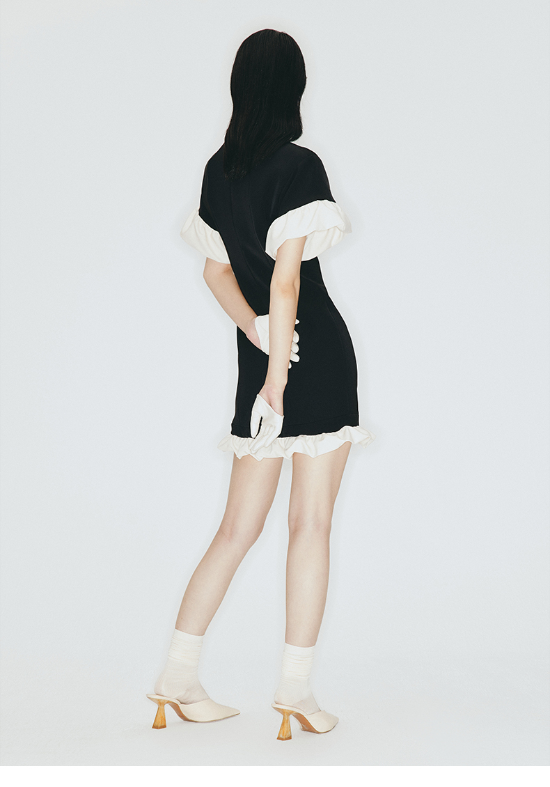 【天使爱美丽】马蹄领云朵花边拼接设计收腰短款连衣裙2300005