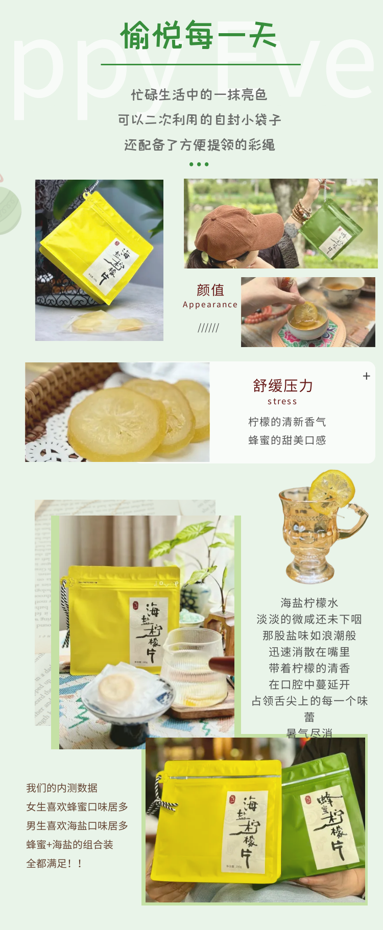 【规格】180g/袋(约25个独立小袋)【产品分类】果脯类【产地】福建福州【配料】 蜂蜜味:柠檬、白砂糖、蜂蜜、食用葡萄糖 海盐味:柠檬、白砂糖、食用葡萄糖、海盐【保质期】6个月【贮存条件】常温保存,请存放在阴凉干燥处【食用方法】开袋即食,或泡水饮用【快递公司】普通快递【发货区域及运费】新疆、西藏、港澳台不发货,内蒙、青海、甘肃、宁夏+6元,上海+1元,北京+2元 ,其他区域包邮