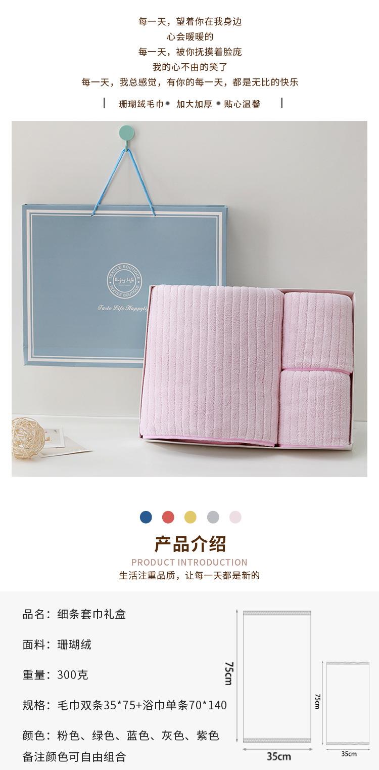 珊瑚绒毛巾浴巾三件套礼盒套装结婚家用公司活动毛巾回礼伴手礼