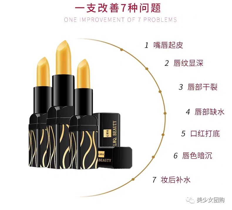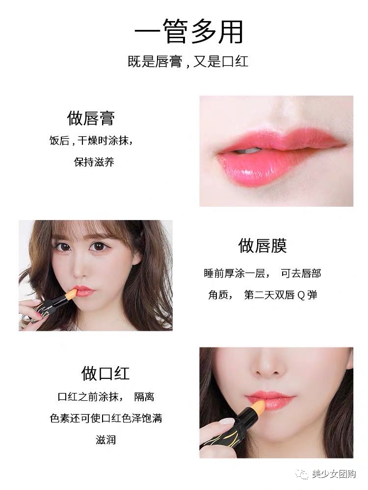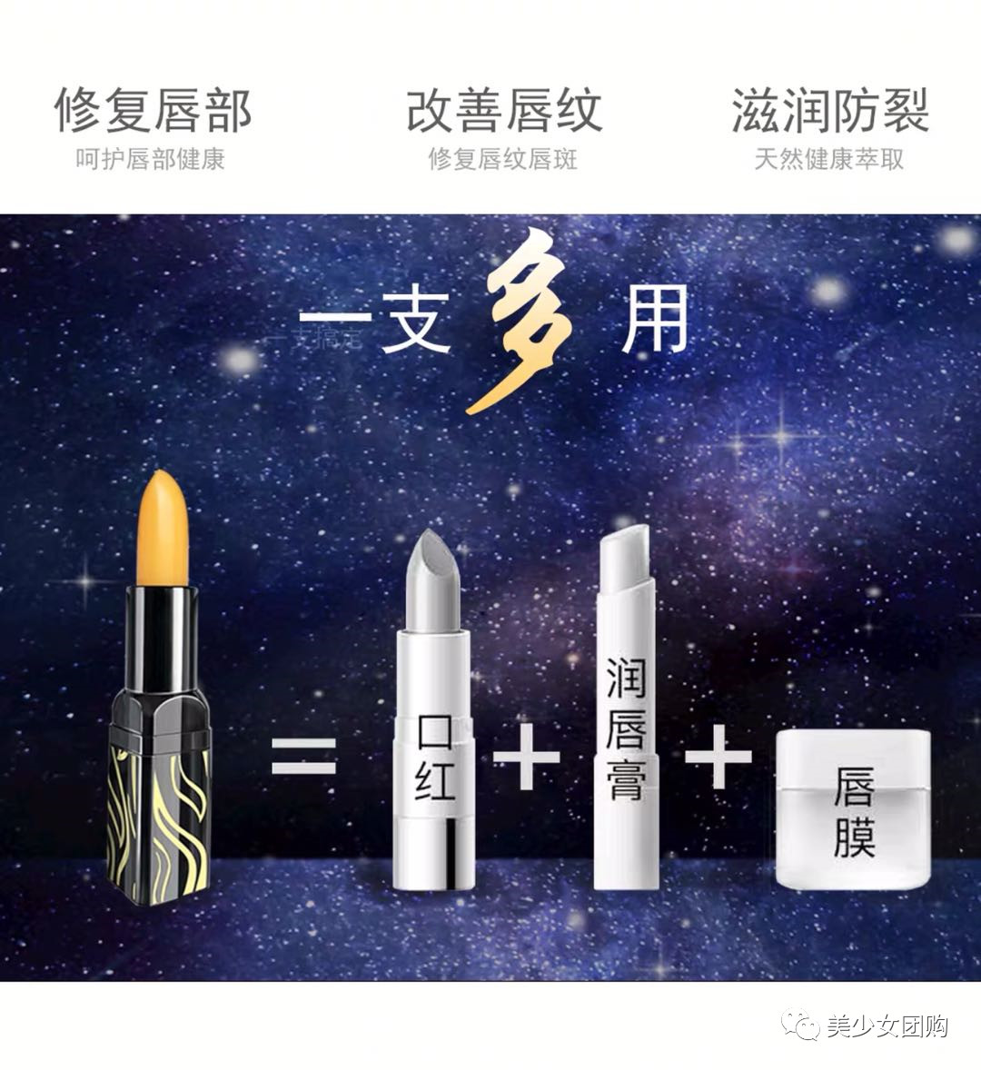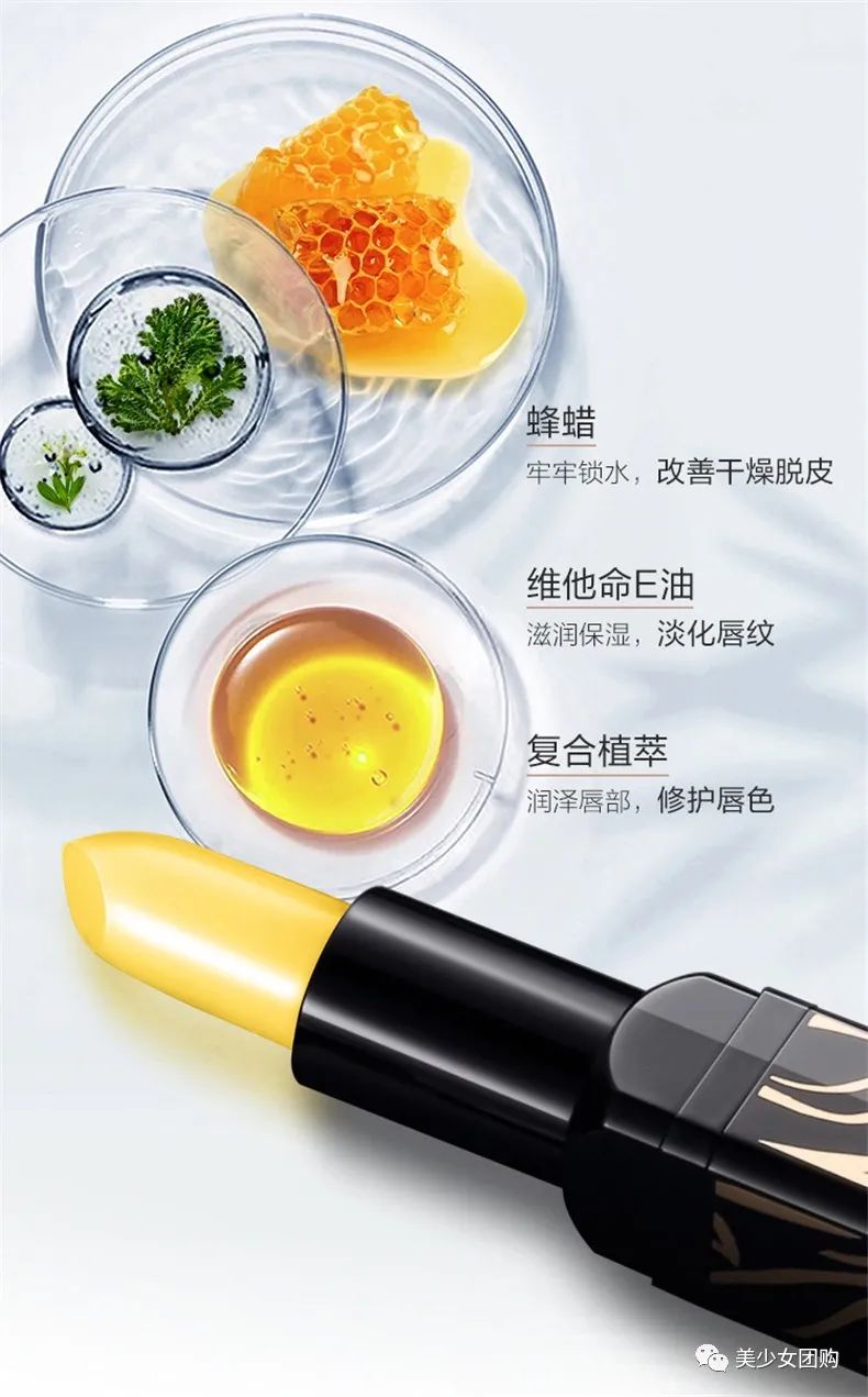 产品卖点:千人千色,滋润+口红+修护三效合一,小孩孕妇都可以使用的一款天然唇膏,“润”就一个字,饱满双唇,无惧干燥,可提亮气色的口红,能陪伴入眠的唇膜,养护润唇,根据唇部温度而变化颜色,可以代替口红,根据人体酸碱度变色:遇酸则红,遇碱则粉,补水+保湿+滋养+修护+变色,被称为千人千色,不沾杯,不掉色,修复保养抗衰,可以迅速提升气色!