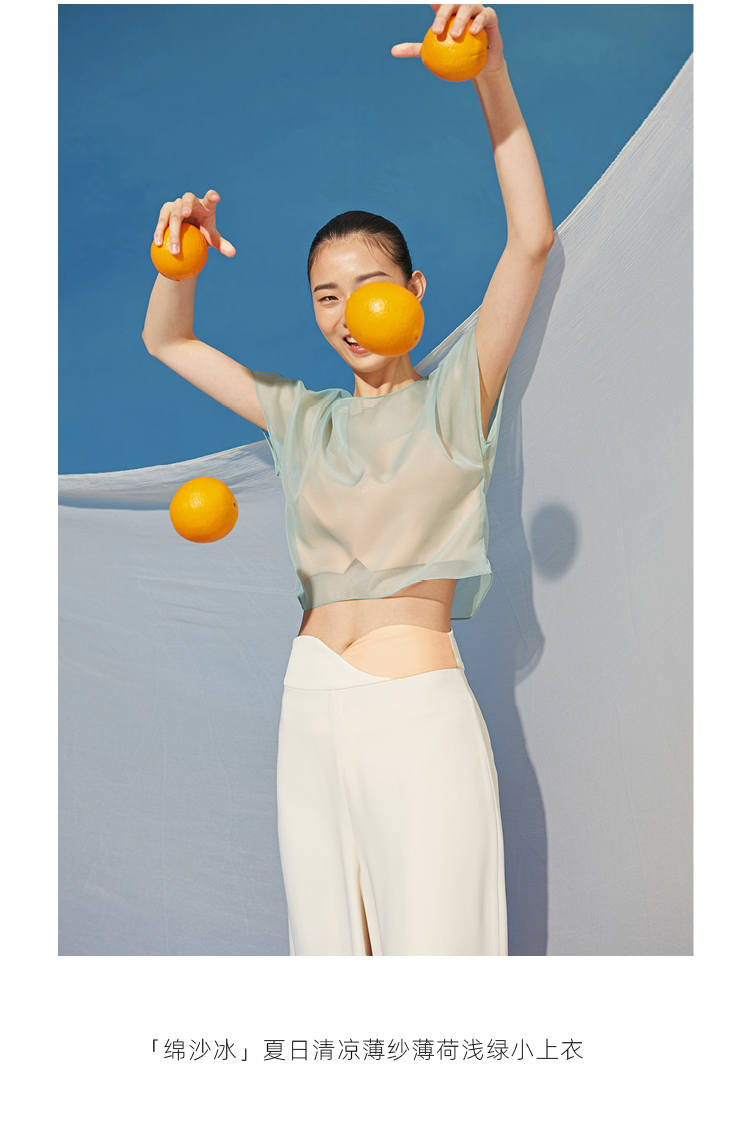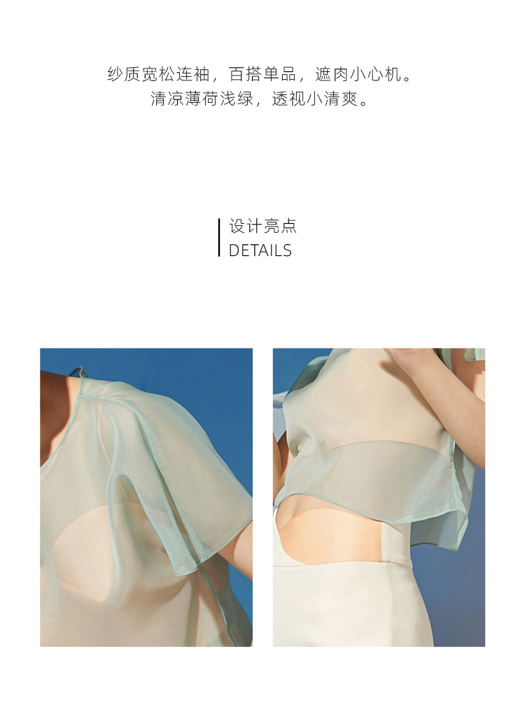 【绵沙冰】夏日防晒薄纱薄荷浅绿遮肉小上衣/00193
