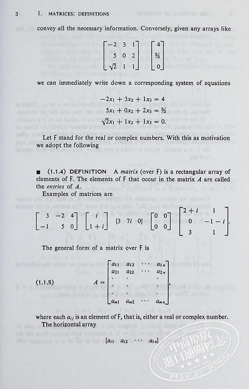 This well-known and highly regarded text makes the subject accessible to undergraduates with little mathematical experience. Written mainly for students in physics, engineering, economics, and other fields outside mathematics, the book gives the theory of matrices and applications to systems of linear equations, as well as many related topics such as determinants, eigenvalues, and differential equations.